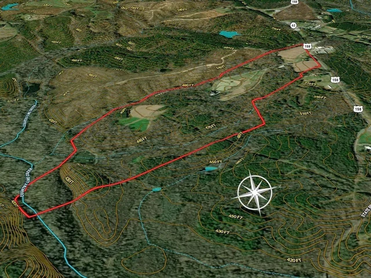Wildlife and Hunting: The property attracts and holds a healthy population of small game, deer, turkey, and other animals; including the occasional bear! There are nine managed food plot areas that total approximately 10.46-acres, and are seasonally planted with clover, mixed greens, sunflowers, and corn. Five box blinds are strategically placed, with access via the approximately 2-miles of roads & trails that allow easy entry without disturbing wildlife. A dove field, complete with a faux powerline, seasonally planted with either millet, corn, and sunflowers offers excellent hunting opportunities. The large walk-in industrial cooler in the lodge provides ample space for refrigerating any wild game harvests and other food, streamlining game processing. As a unique bonus, the property borders the adjacent R. Wayne Bailey-Caswell Game Land along its southern most boundary. This game land adds a few thousand acres of additional hunting opportunities while providing habitat for area wildlife, including whitetail deer and turkey. Finally, the property has several acres of creek bottom that is a sanctuary for all types of wildlife and includes 570ft of frontage along the Country Line Creek.