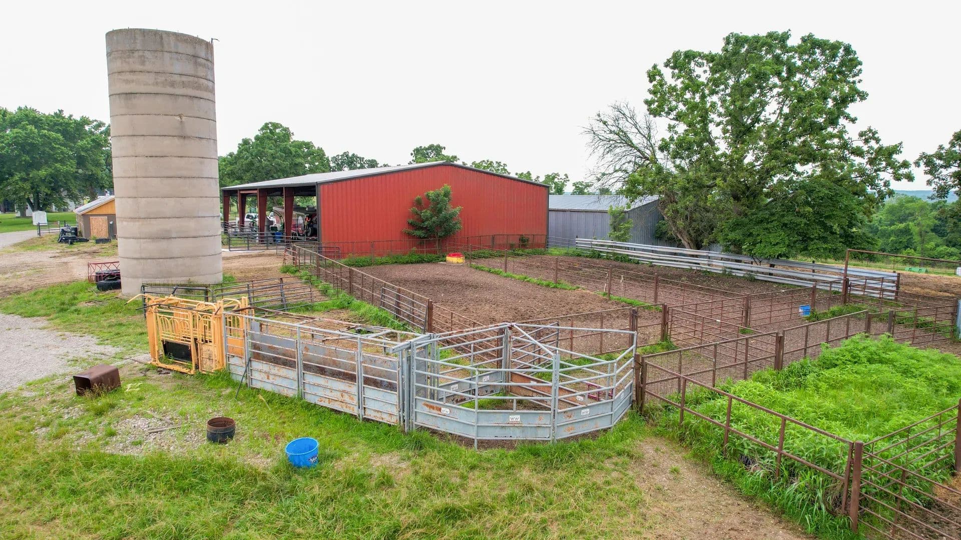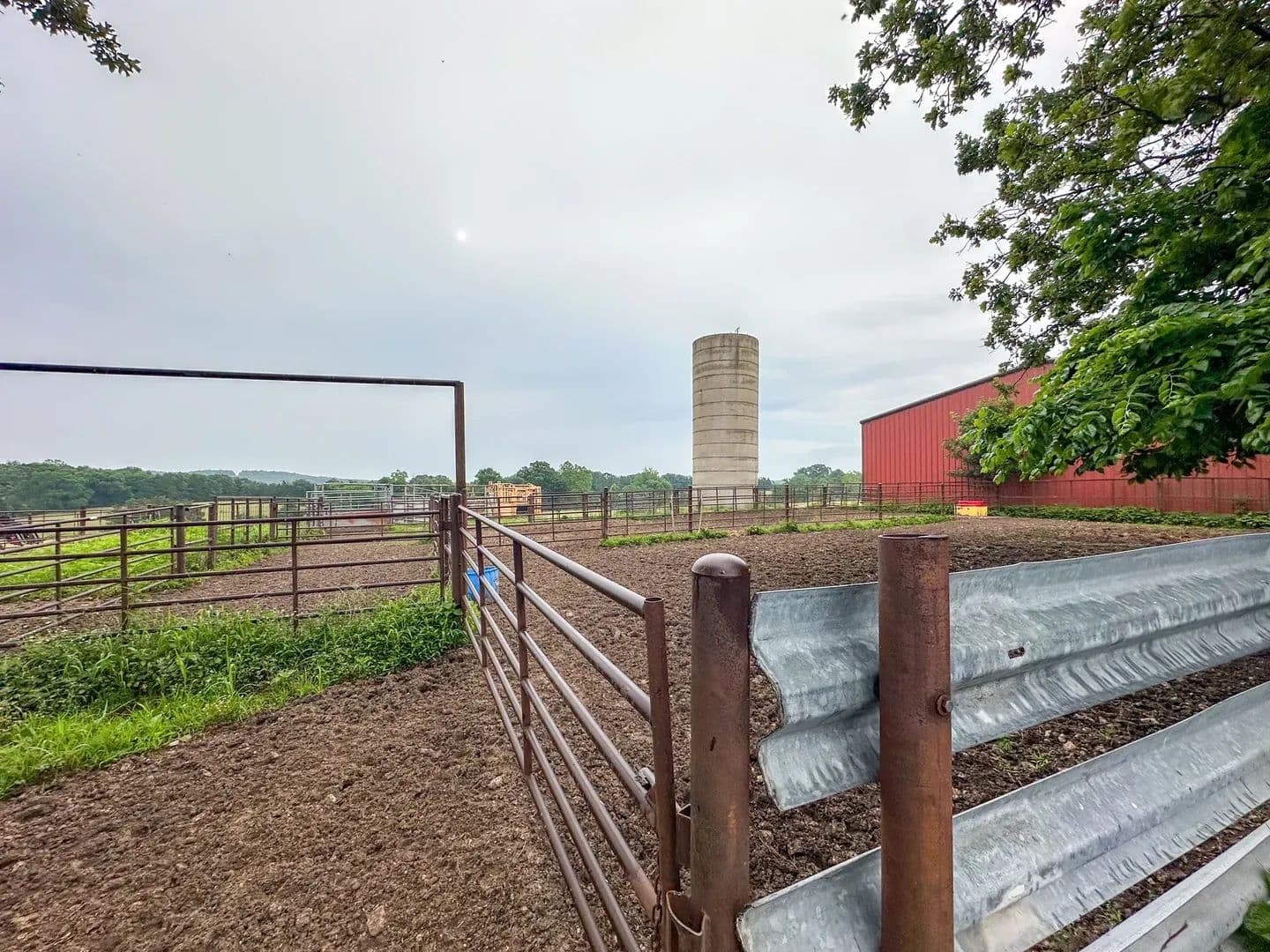 The farm is thoughtfully fenced and cross-fenced for rotational grazing, with sturdy pipe corners, 5-strand barbed wire, and high-quality gates throughout. Pastures are fertilized and sprayed regularly, supporting healthy livestock and strong hay yields.