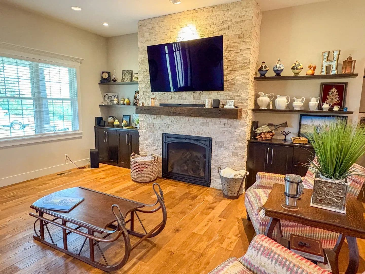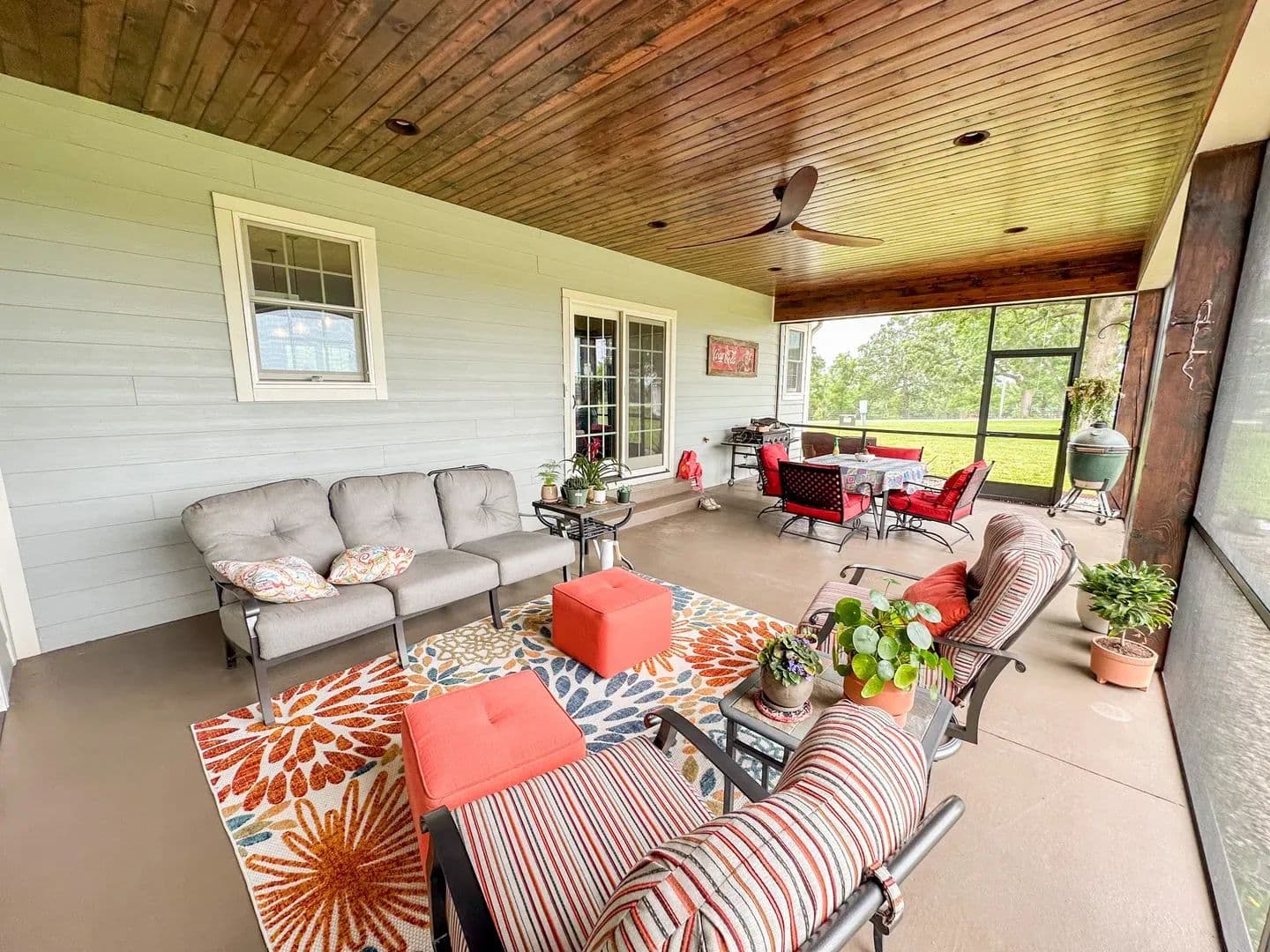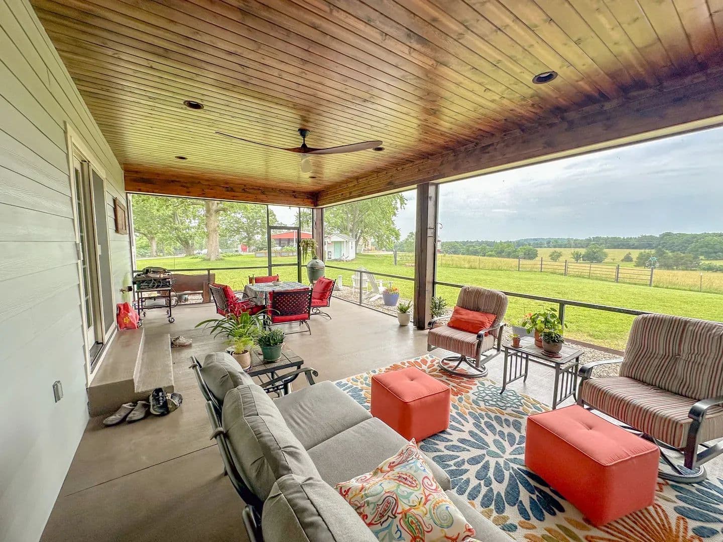 Improvements The main home, built in 2020, sits on a rise with views across the farm and river valley. It includes 4 bedrooms and 3.5 bathrooms, with 10-foot ceilings, hardwood floors, and Anderson windows throughout. The kitchen has alder wood cabinets, quartz countertops, a gas cooktop, an ice maker, and a large walk-in pantry. The primary suite features a 6-foot tiled shower with three shower heads and an on-demand gas water heater. The home is built with 2×6 exterior walls, full spray foam insulation, a ¾” subfloor, and Hardy siding. A Lennox gas furnace, water softener, and Starlink Internet provide essential utilities. The attached garage is oversized with an additional small door for UTV access. A climate-controlled gun room and garage offer secure storage, and a screened-in porch extends the living space outdoors.