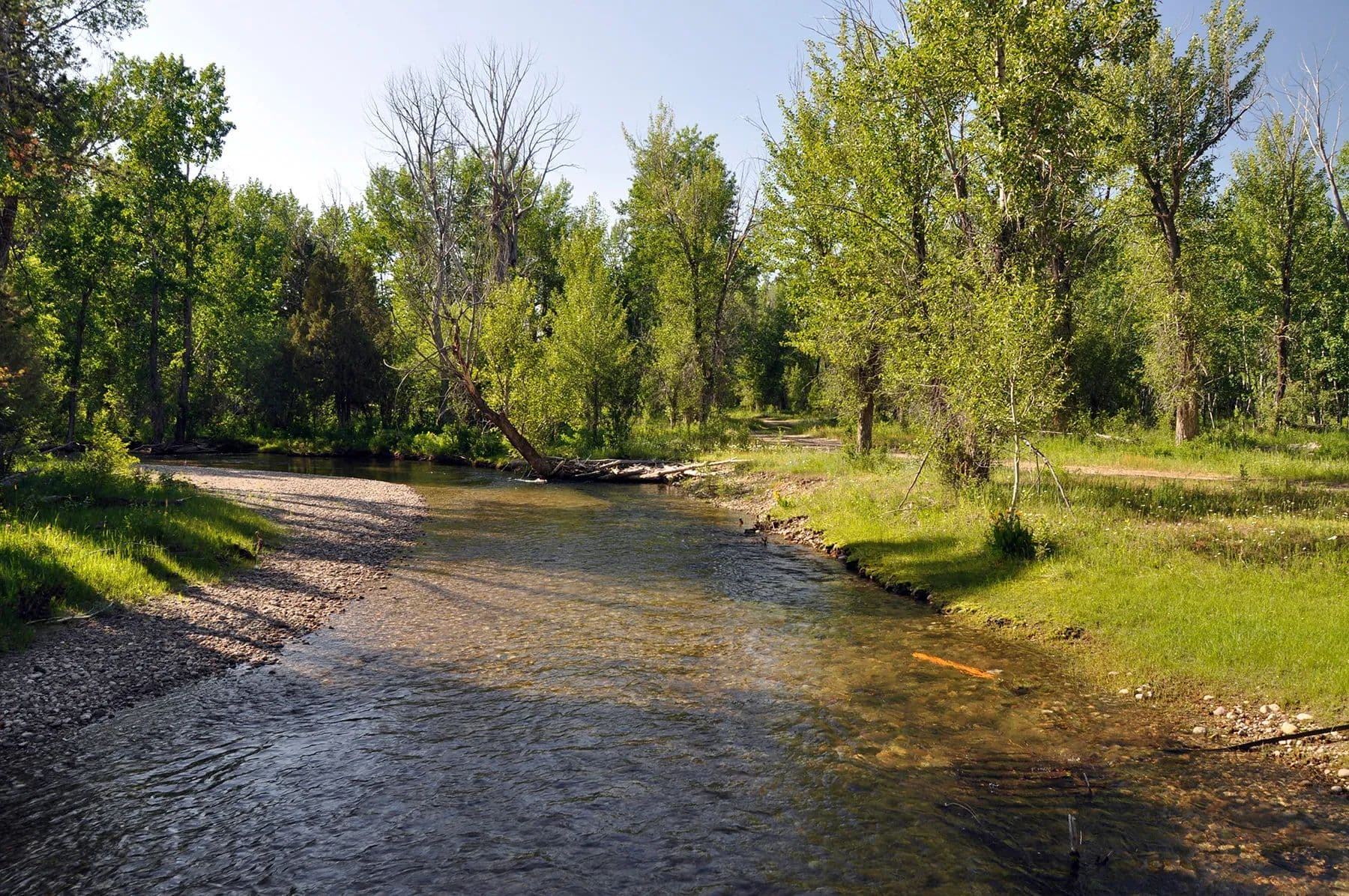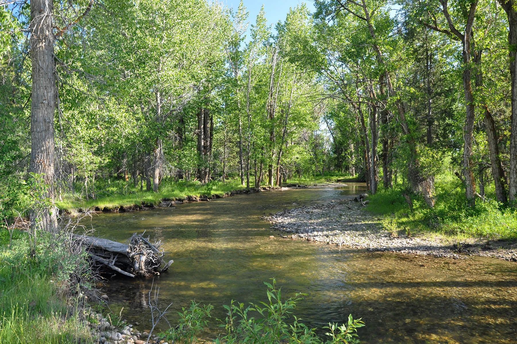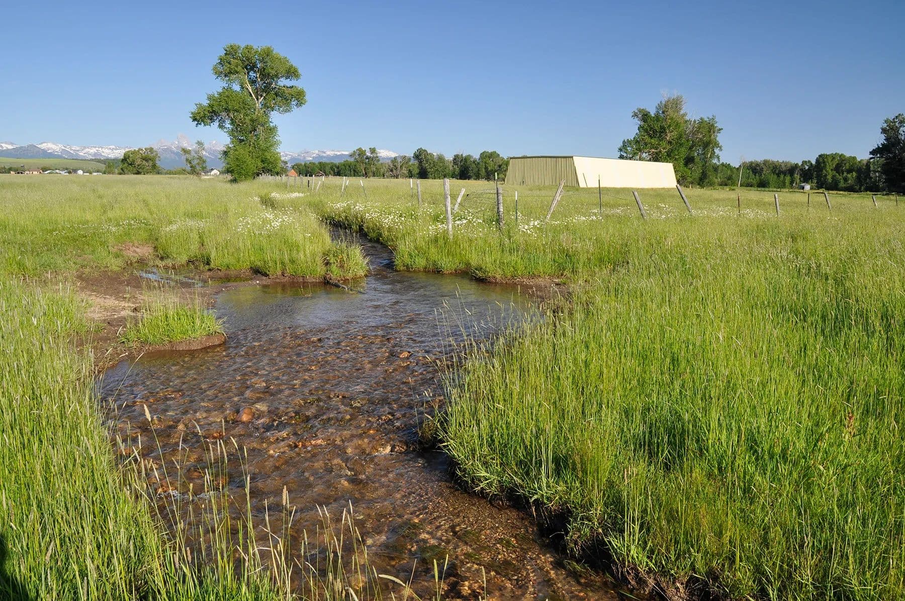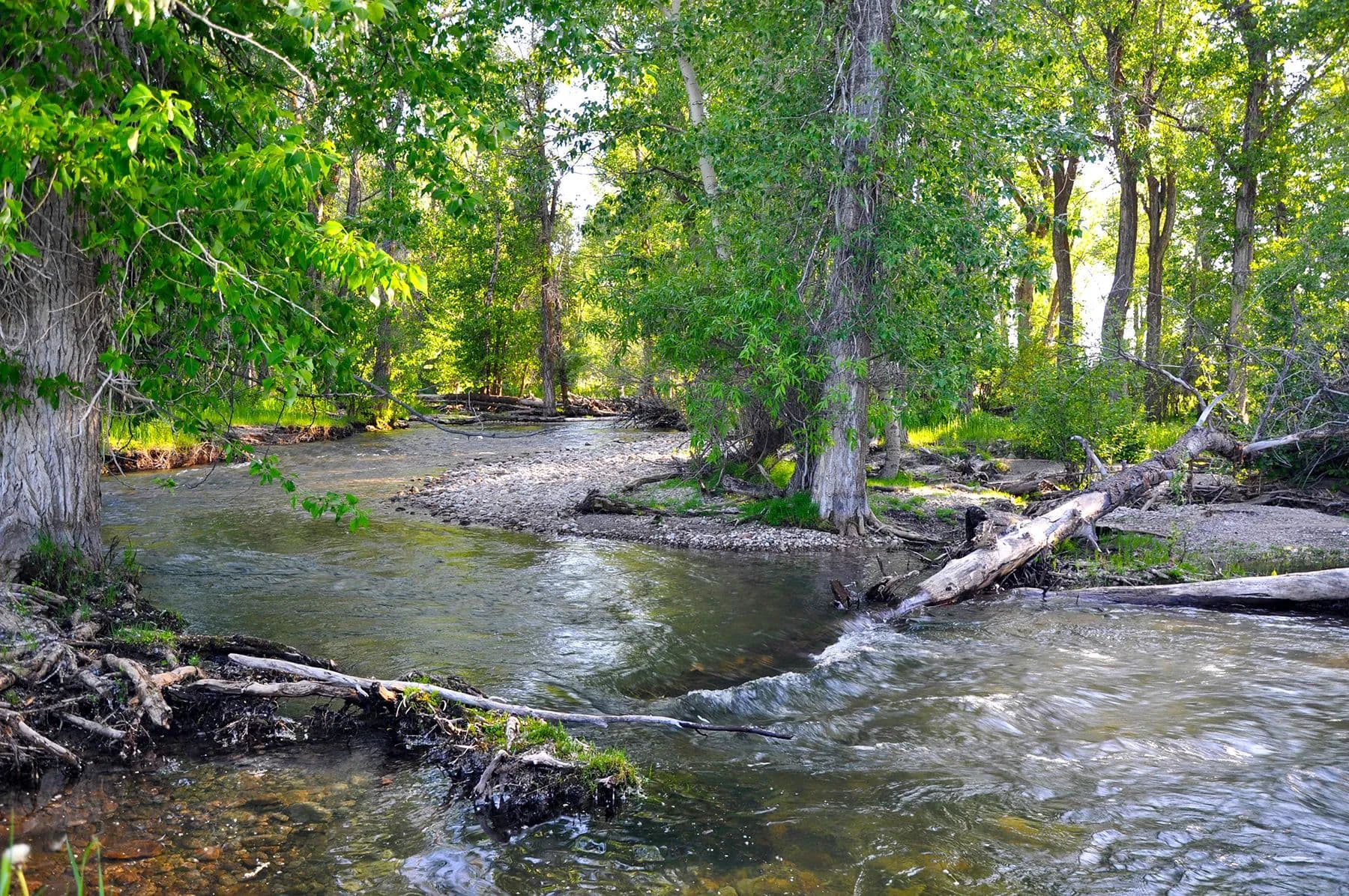 Although historically run as a seasonal cattle operation, the ranch provides exceptional habitat and forage for area deer and elk populations, which utilize the Badger Creek drainage as they make their way to their winter range. Deer and moose can be found on the ranch throughout the year. The abundance of cultivated farmlands adjacent to the ranch will also attract native sharp-tailed grouse, as well as Hungarian partridge. While Badger Creek is seasonal on the ranch, the Teton River is located just minutes away. A true recreational gem, the Teton is a freestone river originating at the south end of Teton Valley, made up primarily of spring creeks at its source while picking up various mountain streams along its course as it makes its way west to its confluence with the world-famous Henry’s Fork River.