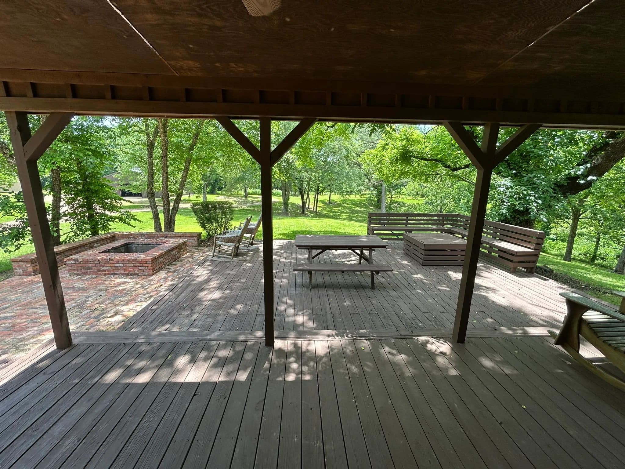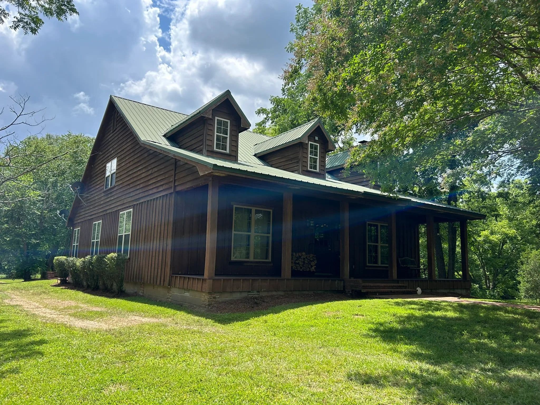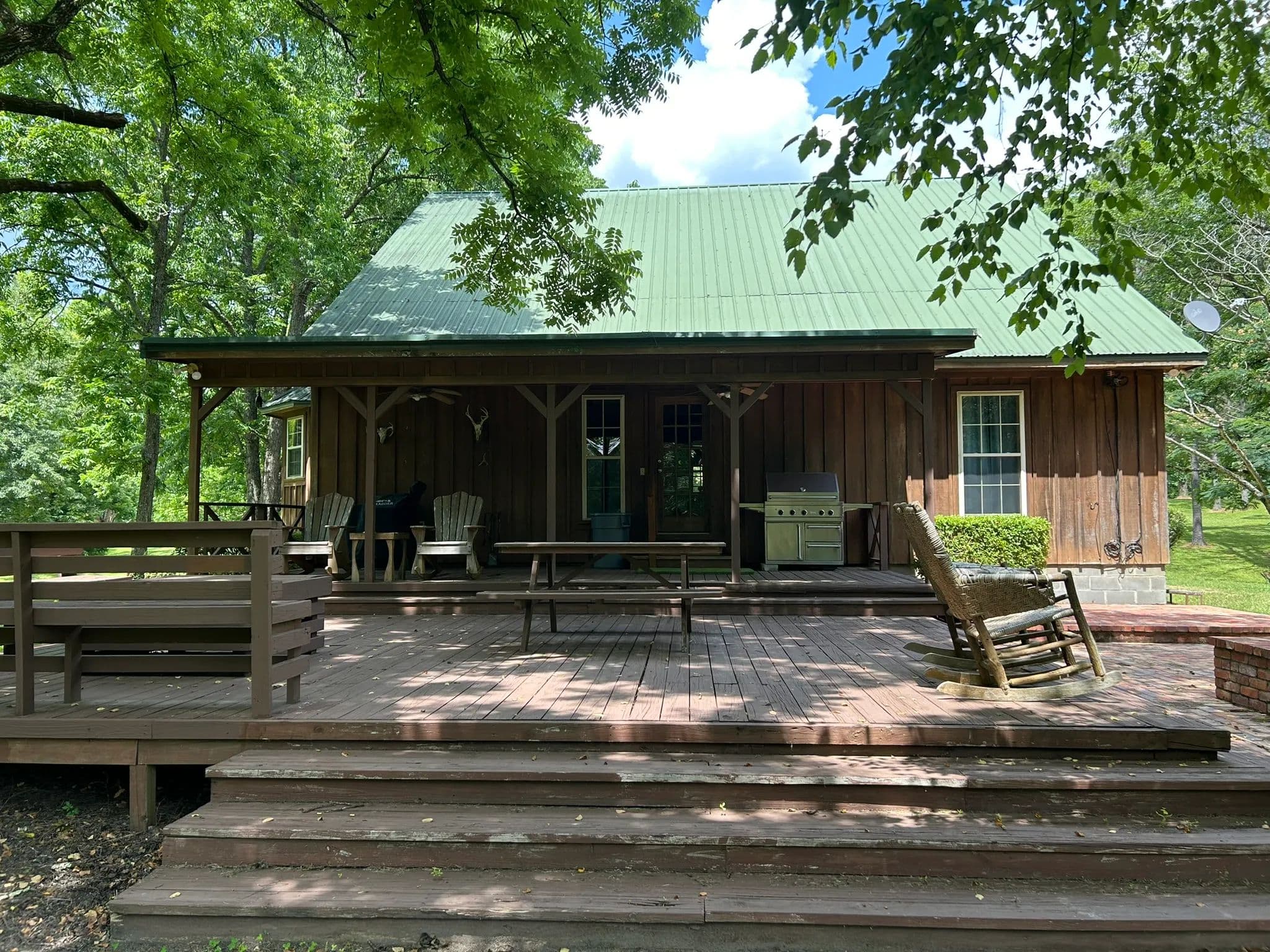 As you enter, you'll be welcomed by a stunning quarter-mile drive through rolling pastures and towering timber, passing three ponds on the way to your very own lodge. There, you’ll find a beautiful 2,100 sq. ft., 3-bedroom, 2-bathroom home featuring a professional kitchen, living room, family room with wood-burning fireplace, laundry room, covered front porch, and a large deck with a built-in firepit.