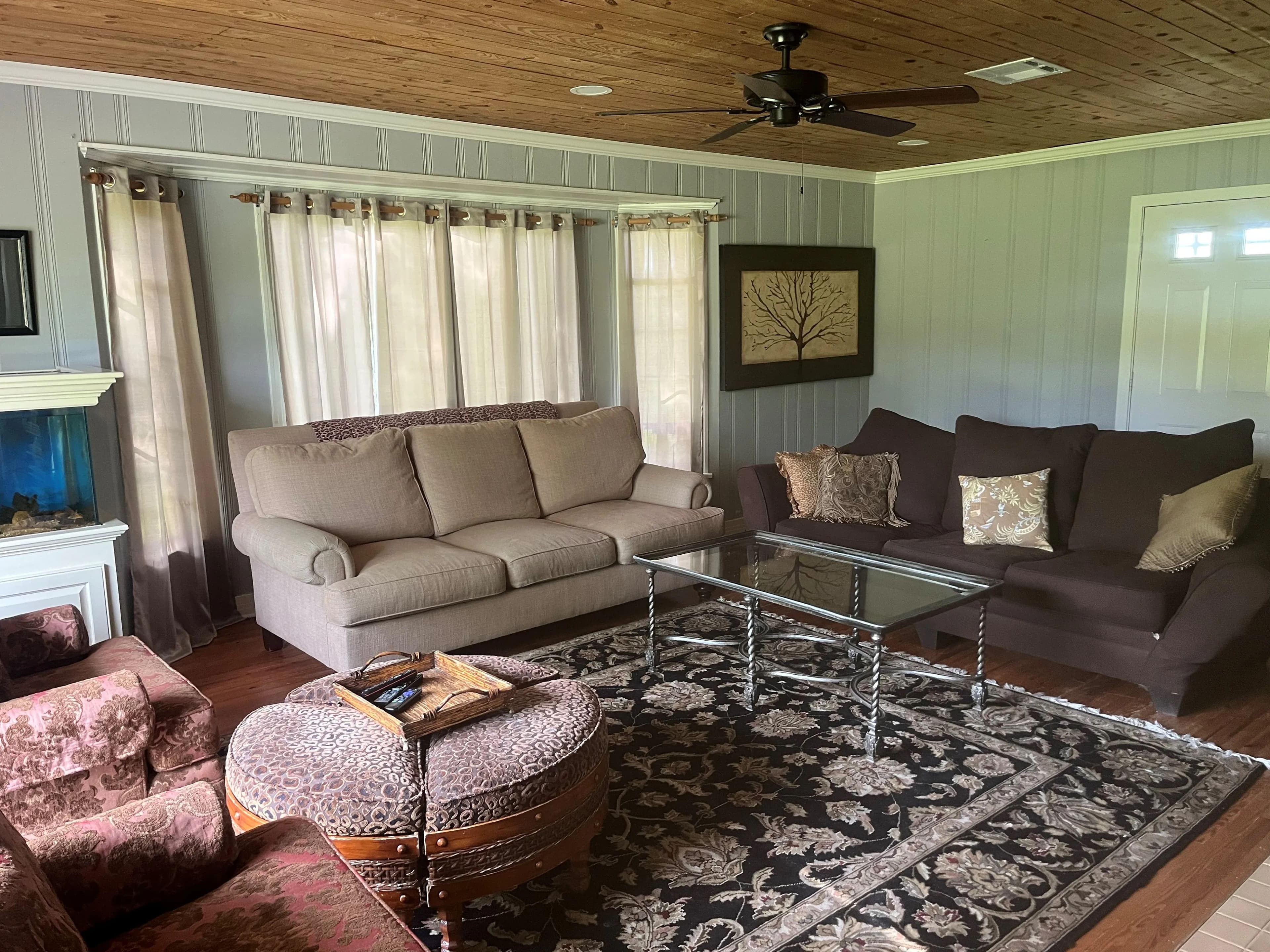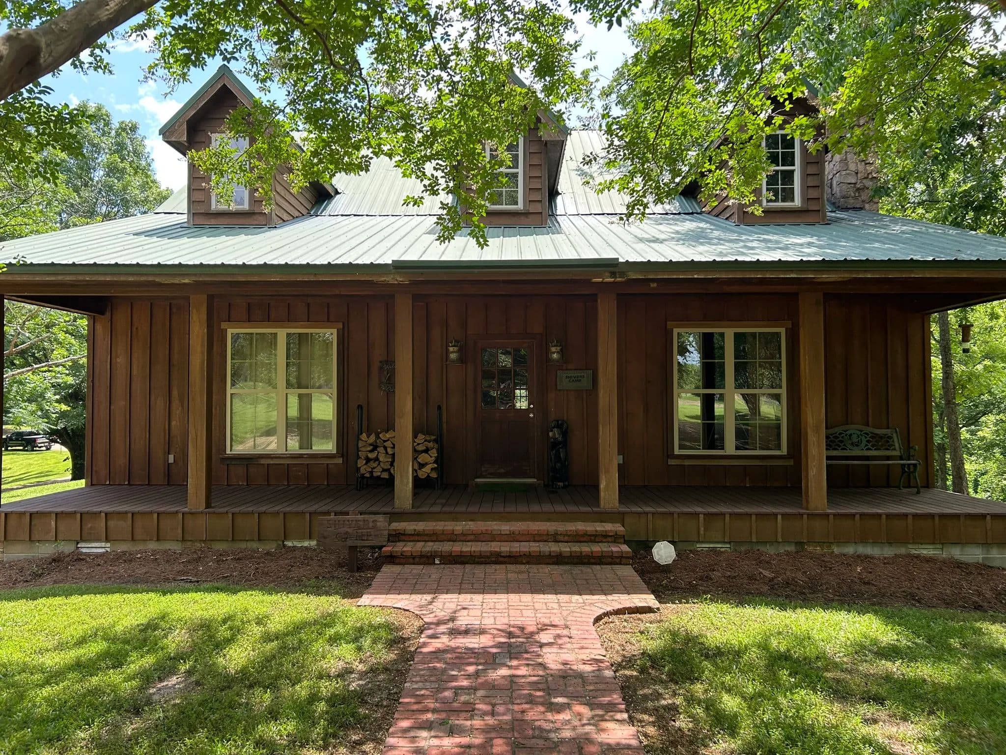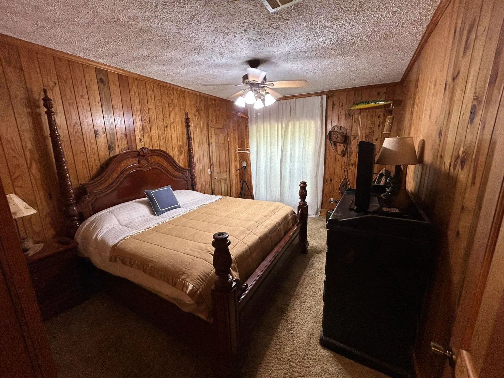 As you enter, you'll be welcomed by a stunning quarter-mile drive through rolling pastures and towering timber, passing three ponds on the way to your very own lodge. There, you’ll find a beautiful 2,100 sq. ft., 3-bedroom, 2-bathroom home featuring a professional kitchen, living room, family room with wood-burning fireplace, laundry room, covered front porch, and a large deck with a built-in firepit.