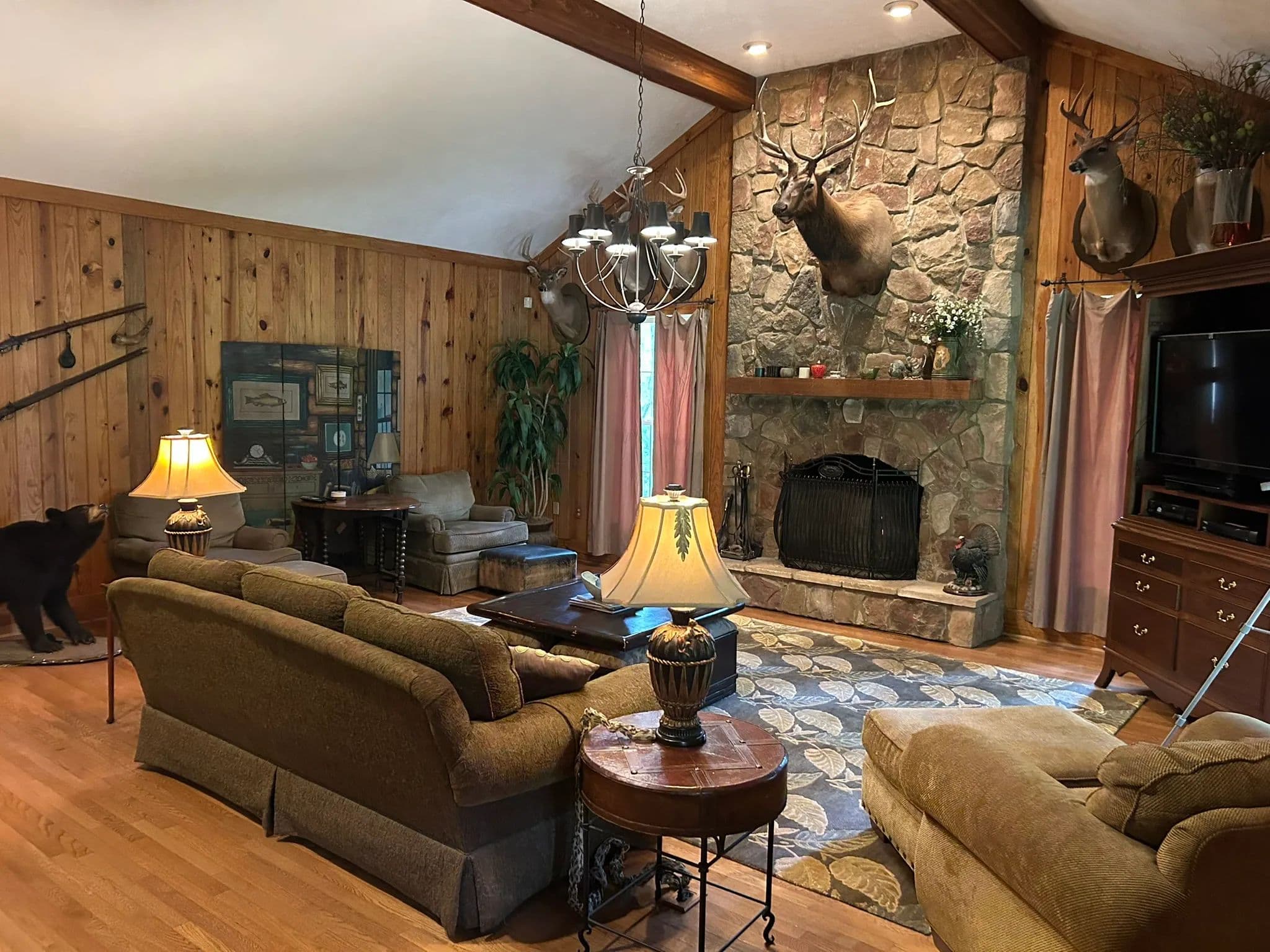 Behind the lodge is a 75’ x 75’ insulated barn/workshop and man cave, complete with an outdoor kitchen, automated skinning rack with drains, and plenty of storage for your ATVs. Also on the property is a recently updated 2,900 sq. ft., 3-bedroom, 2-bathroom home for a caretaker.