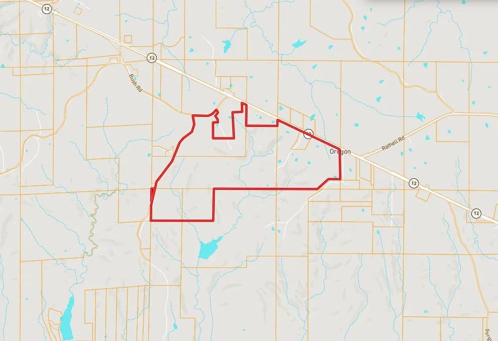 The land itself is incredible, featuring 10 large, established food plots with shooting houses, all connected by an outstanding internal road system with culverts and bridges for full access. Two beautiful creeks run through the property, providing all the washed gravel you could ever need. Summer food plots are planted and thriving, attracting deer, while fruit trees have been strategically planted around high-traffic feeding areas. Over the past 20+ years, more than 5,000 sawtooth oak trees have also been planted. This tract has 400± acres of mature timber with 80% of it being hardwood. There are also approximately 75± acres of beautiful rolling fields and pastures that produce 100, 5ft round hay bales per cutting. This would make outstanding pastures if you wanted to add cattle or horses.