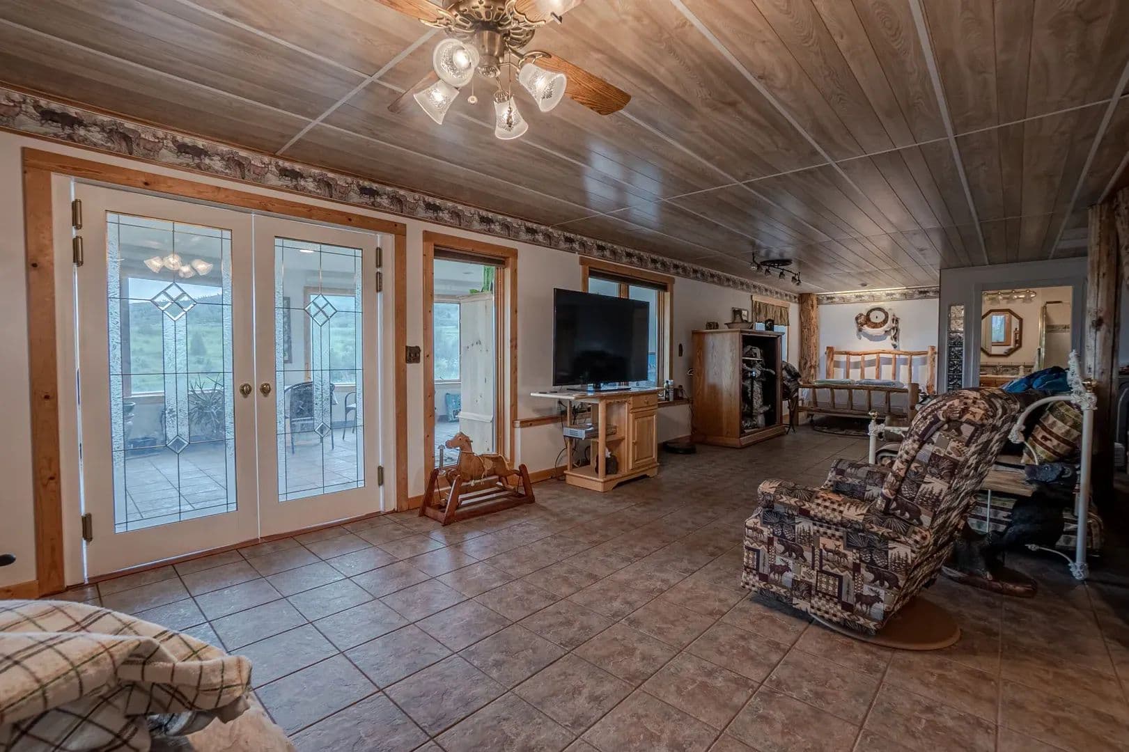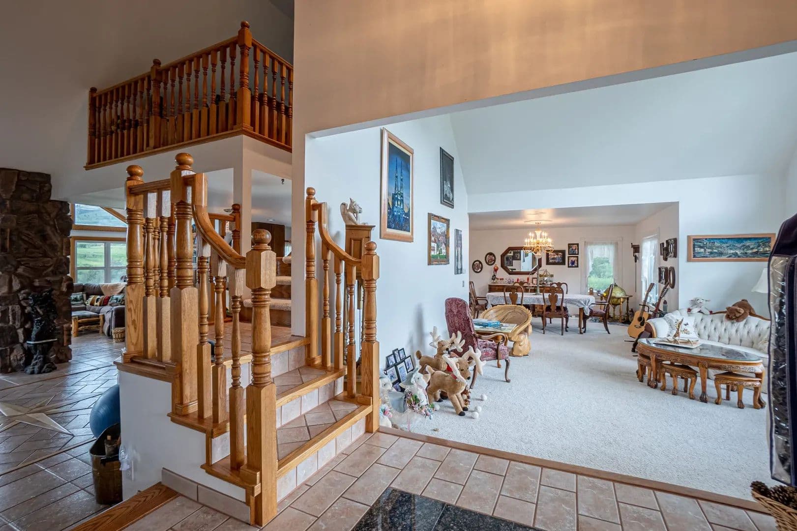 Improvements The property includes a nice, well kept two story home with a partially finished basement totaling 2568 finished square feet. There is also an 1152 square foot shop with a covered RV parking area on the side, as well as an old nostalgic 3600 square foot barn/mill building.