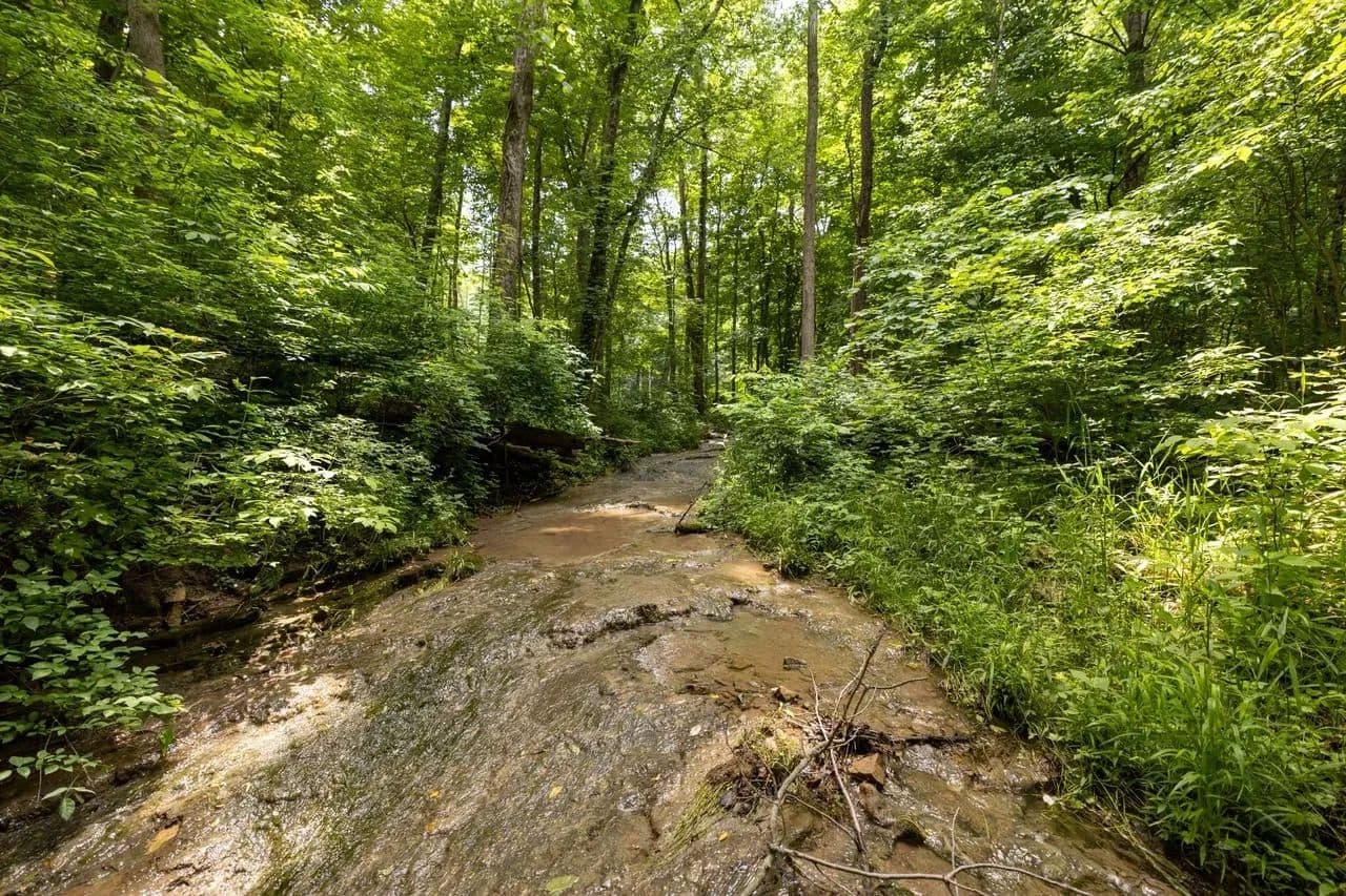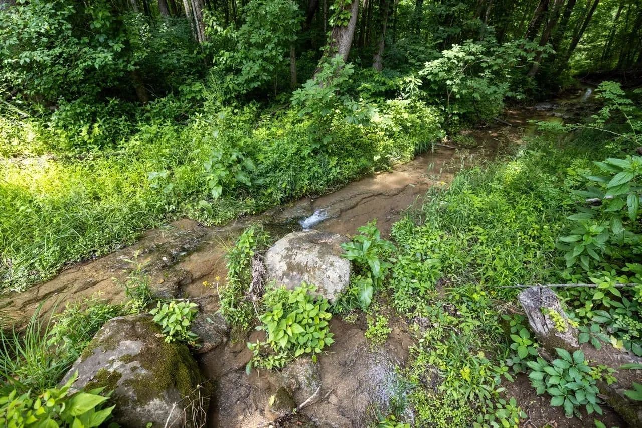 Multiple natural springs provide year-round water, including one that feeds a small wetland area, not far behind the barn—ideal for developing a stocked pond. A crystal-clear rock-bed creek flows at the back of the property, complete with small waterfalls and a cleared site perfect for a future cabin overlooking this tranquil setting.