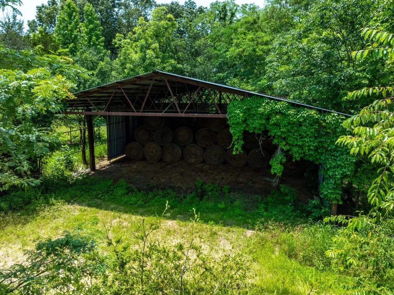 In addition to the home, the property features some exceptional outbuildings, including a large farm maintenance shop with a bridge crane—perfect for working on tractors, hay equipment, or welding projects—and a hay barn with ample space for storage.