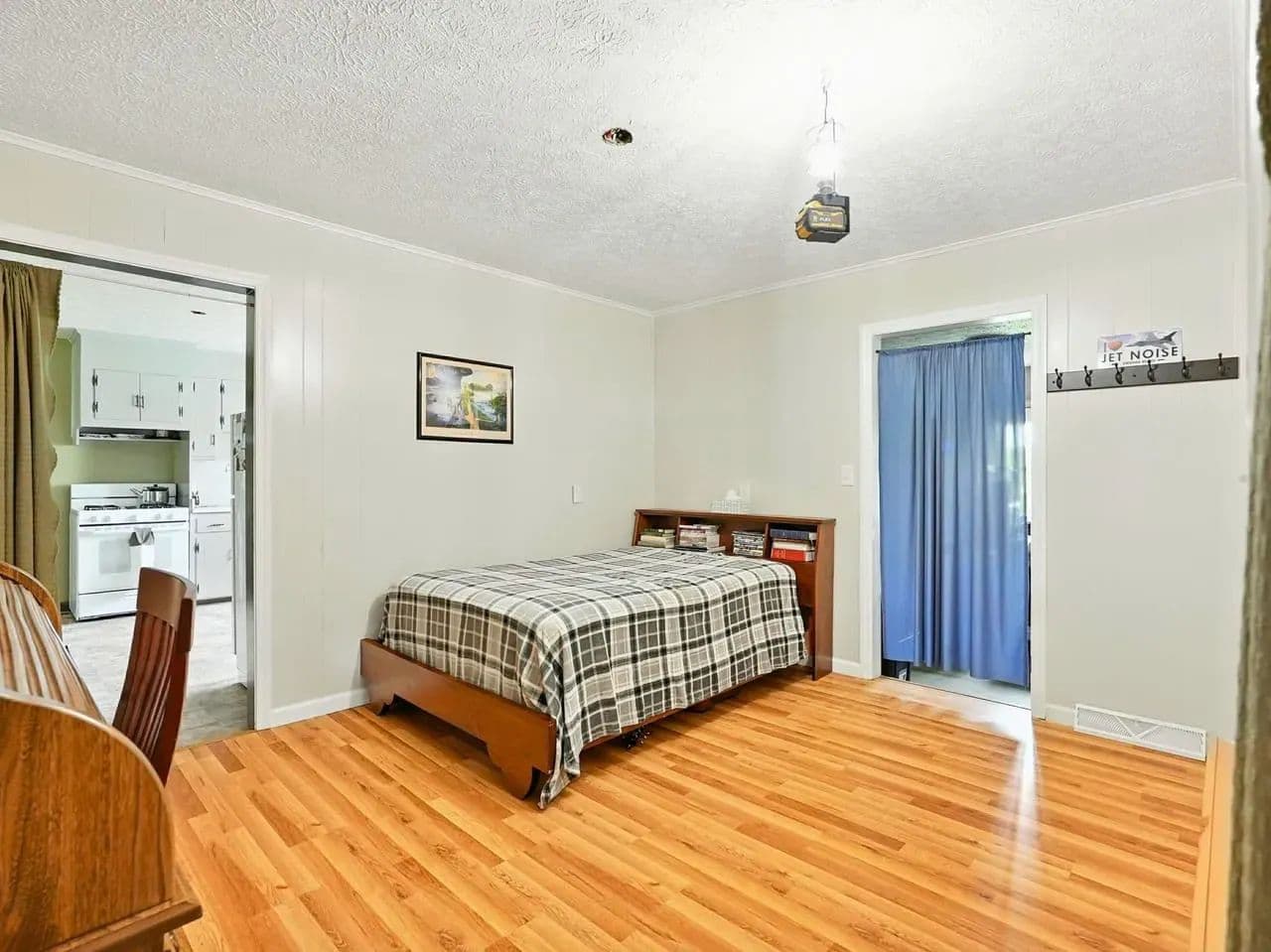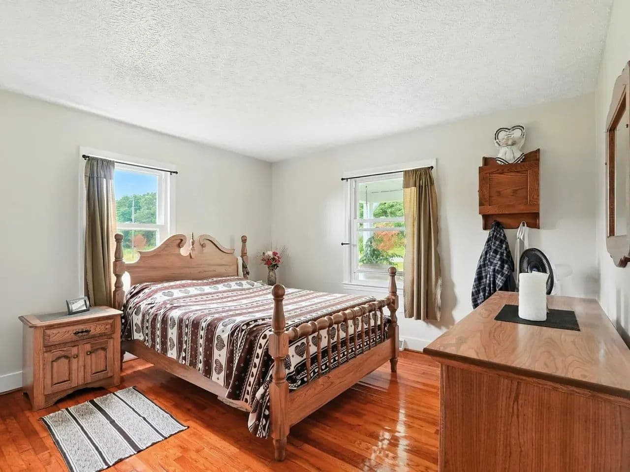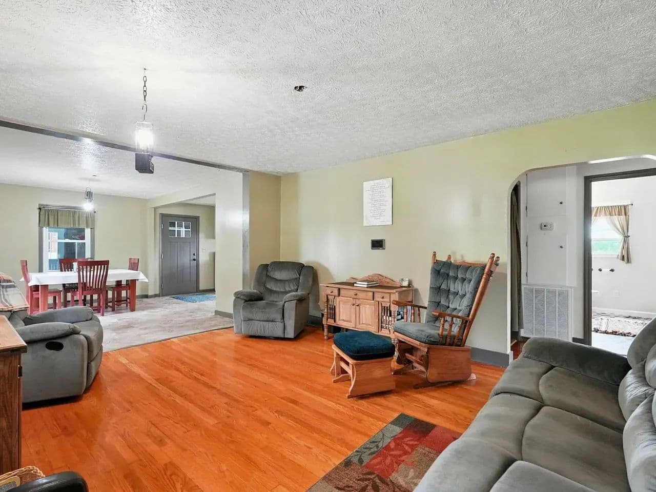 Inside, you'll find gleaming hardwood floors throughout and an inviting open floorplan that connects the kitchen, dining area, and living room - ideal for both everyday living and entertaining. Step outside onto the country-style front porch where you can unwind in the swing or enjoy an evening of grilling while taking in the tranquil surroundings.