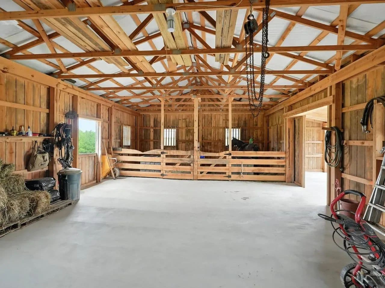 Equestrian enthusiasts and hobby farmers will appreciate the newer 24x40-foot barn complete with concrete floors, two horse stalls, and a 10-foot lean-to offering extra storage space for equipment or parking. The land includes a well-maintained trail system perfect for horseback riding, nature walks, or ATV adventures through a beautiful stand of young pine trees - there's even a nice creek meandering through the woods to enjoy on a warm summer day. Two additional sheds on the property offer ideal space for storing lawn equipment, gardening tools, or could even be converted into a workshop or detached office.