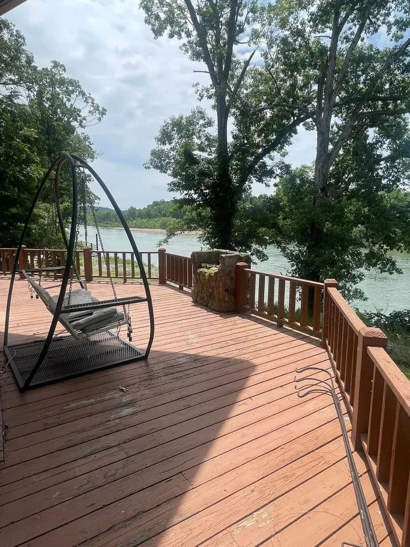 MILLION DOLLAR VIEW!!!!!!!!!! Probably the prettiest view of Current River!!!! This river home is at the end of the lane. Home features decks all around where you can relax and listen to the water flowing. Home has 2 bedrooms, 2 bathrooms, open floor plan kitchen, dining room, and living room. Living room has huge vaulted ceilings and floor to ceilings windows that display a picture perfect view of the river. Upstairs is a loft with the same view. There is another room that was used for an office but could be used as a third bedroom if needed. There is a 2 car garage and all appliances stay with home and there are 2 heat and air units. This is a must see if you are looking for a great neighborhood of people to enjoy this life.