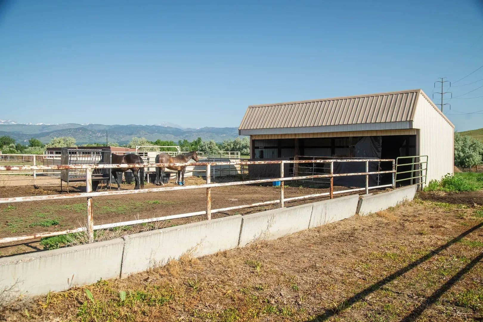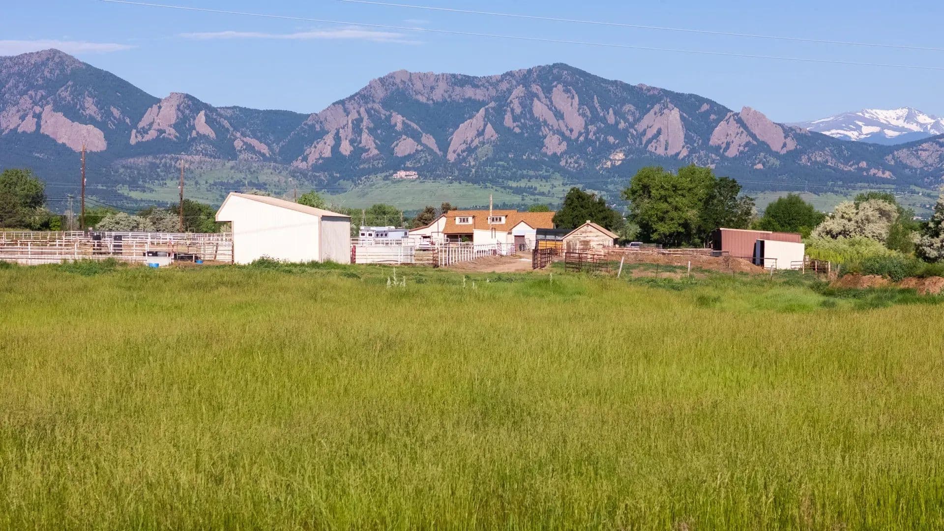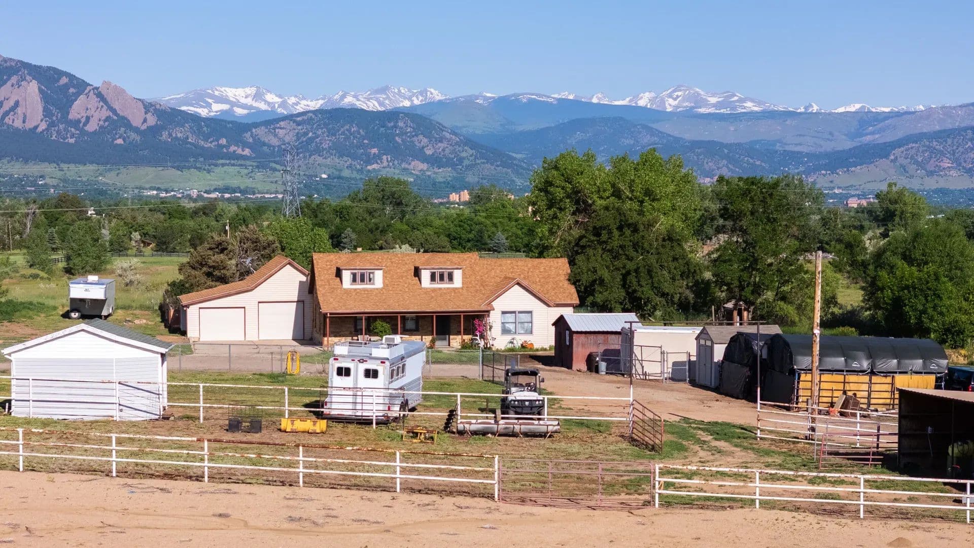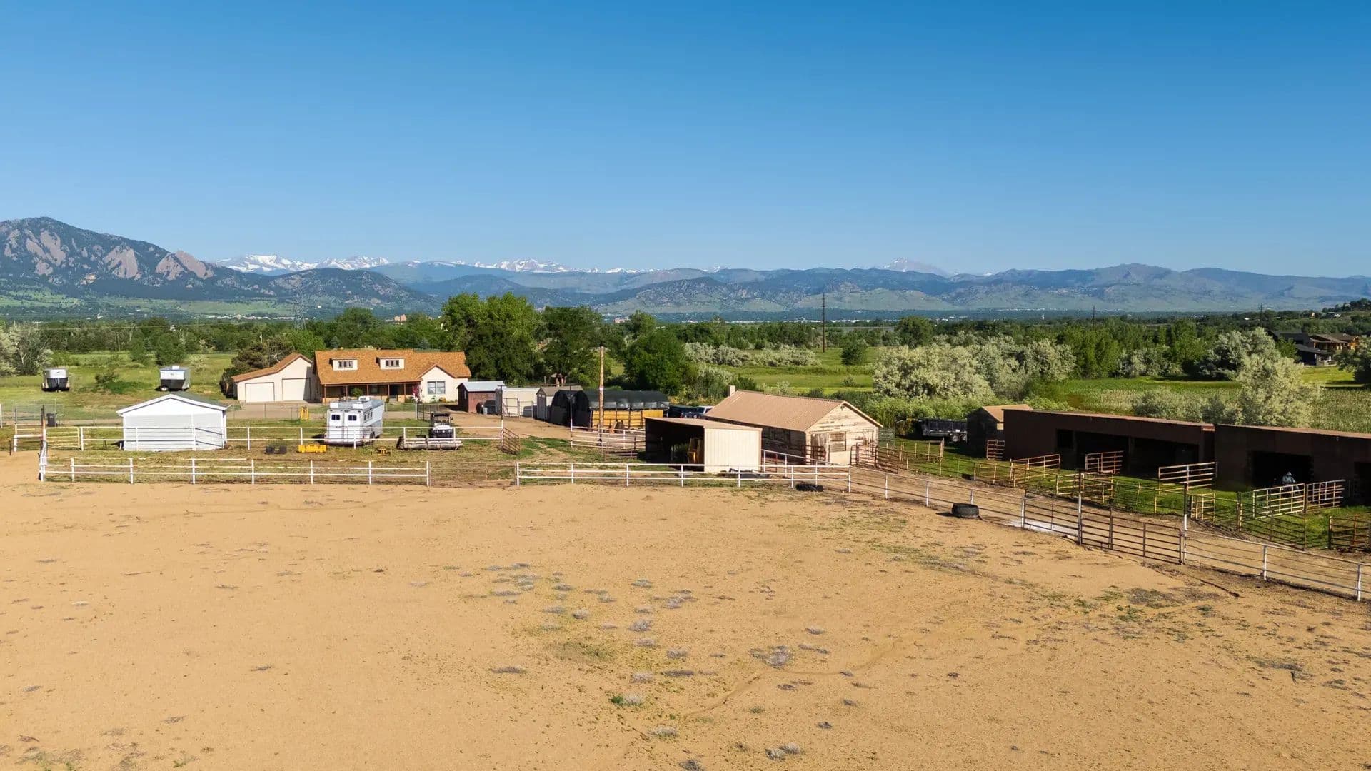 Welcome to an exceptional 17-acre equestrian paradise nestled in the heart of Boulder County, offering breathtaking, scenic views of the iconic Flatirons. This is a rare opportunity to embrace a lifestyle where unparalleled natural beauty meets opportunity for horse and land enthusiasts, all just 10 min from Downtown Boulder and the charming community of Louisville. Land This expansive property is a haven for horse enthusiasts. Enjoy your own private riding/roping arena and a good-sized round pen, ready for training and enjoyment. Thoughtfully planned infrastructure includes dedicated tack sheds, ample hay storage, and equipment sheds, ensuring everything has its place. Lush pastureland offers excellent turnout for your horses, naturally irrigated by a year-round spring water that runs through the property – a truly unique and valuable feature. Imagine spending your days riding and training with the majestic Flatirons as your backdrop.