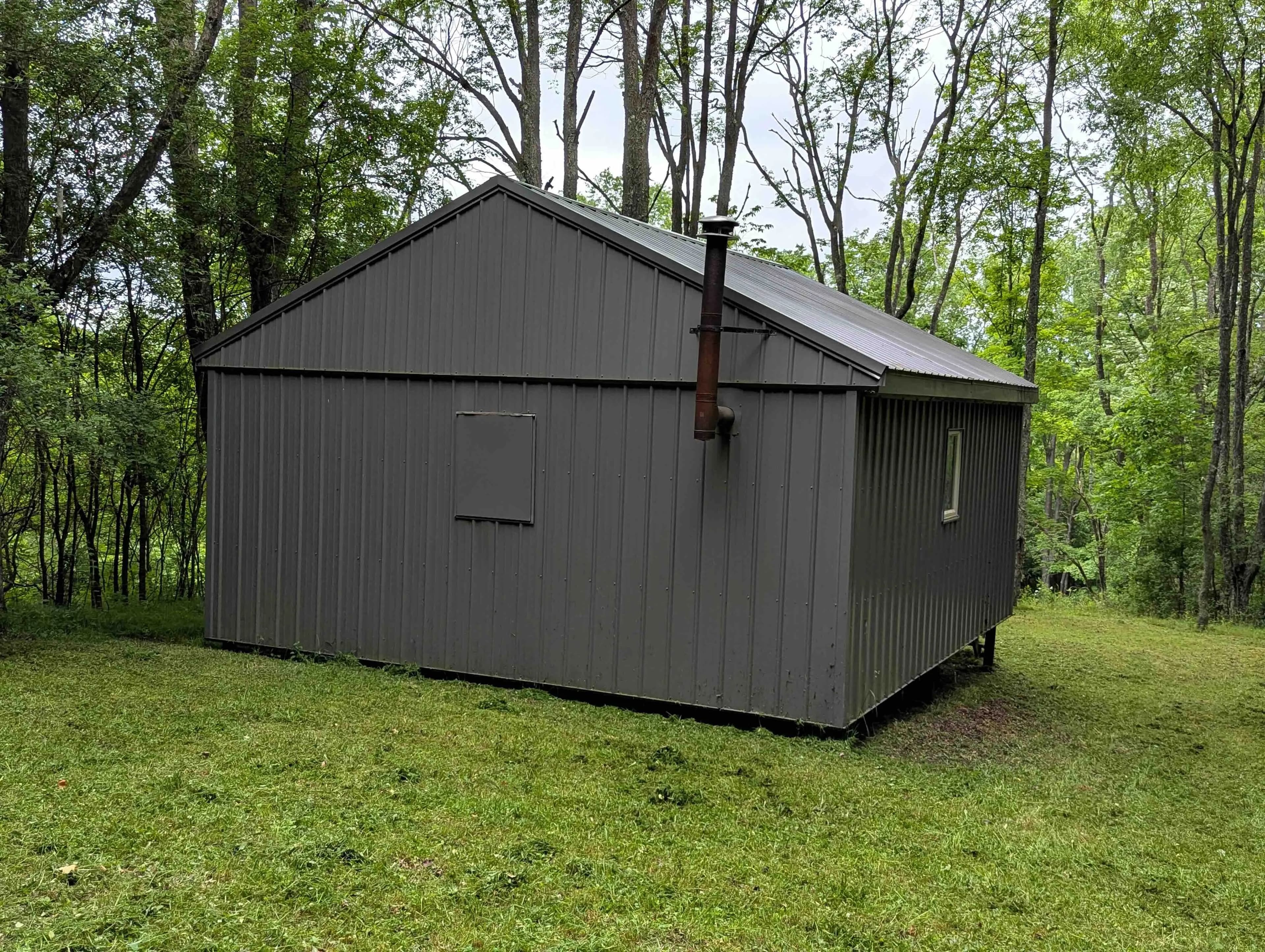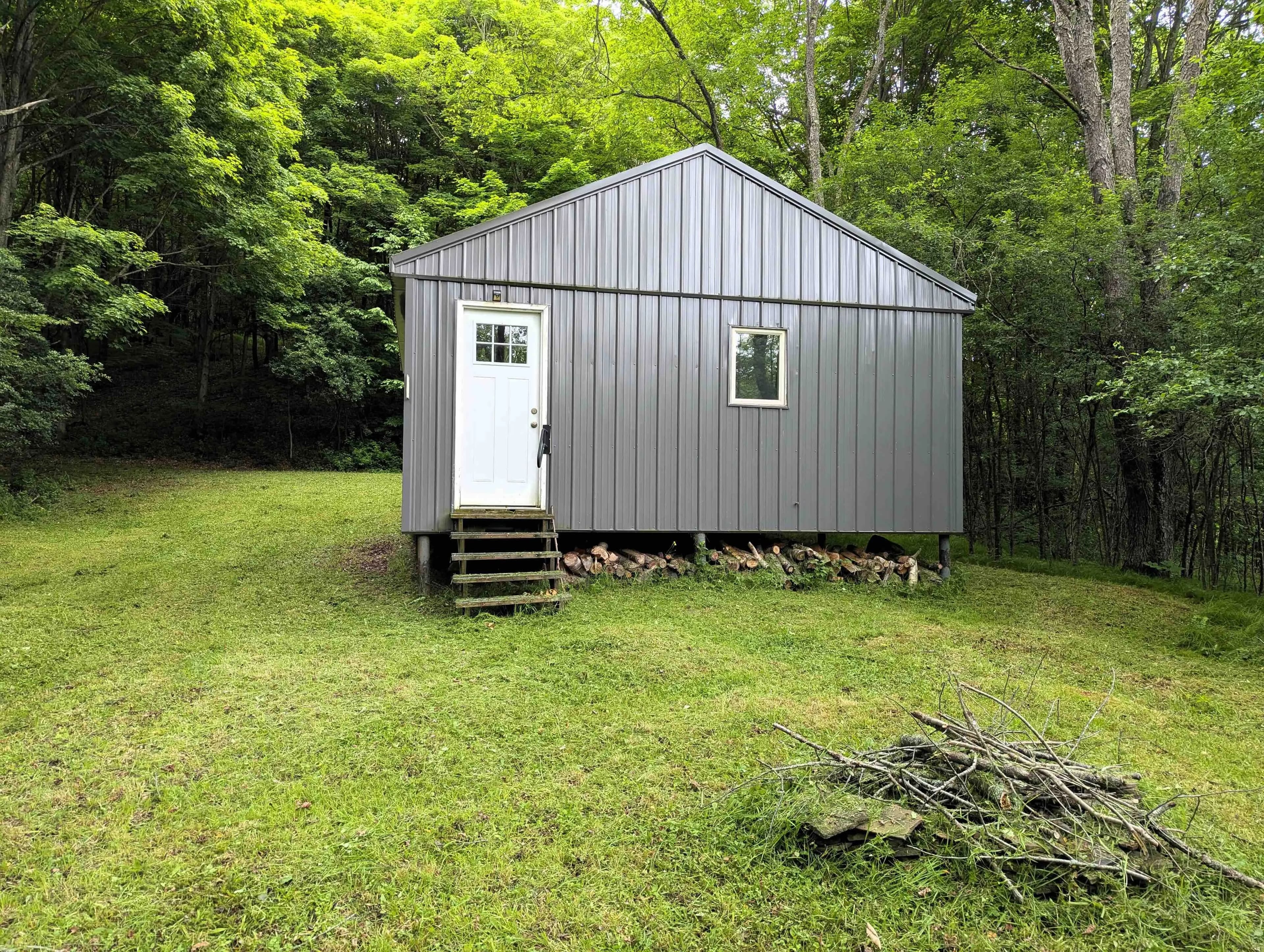 This off-grid cabin with a trout stream is located on 48 acres in Whitesville NY, Allegany County.