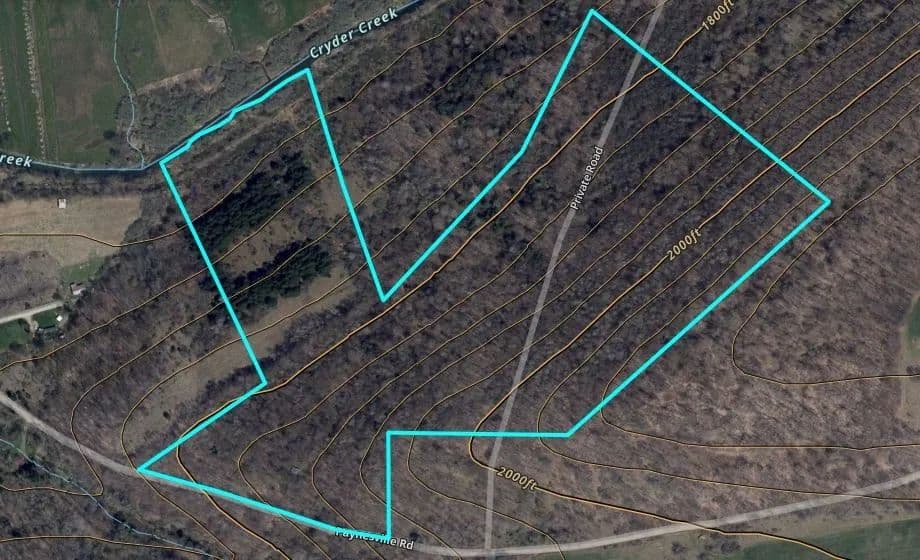 Search Land - 48 acre Recreational Retreat with Off Grid Cabin and Trout Stream in Whitesville NY Paynesville Hill Rd