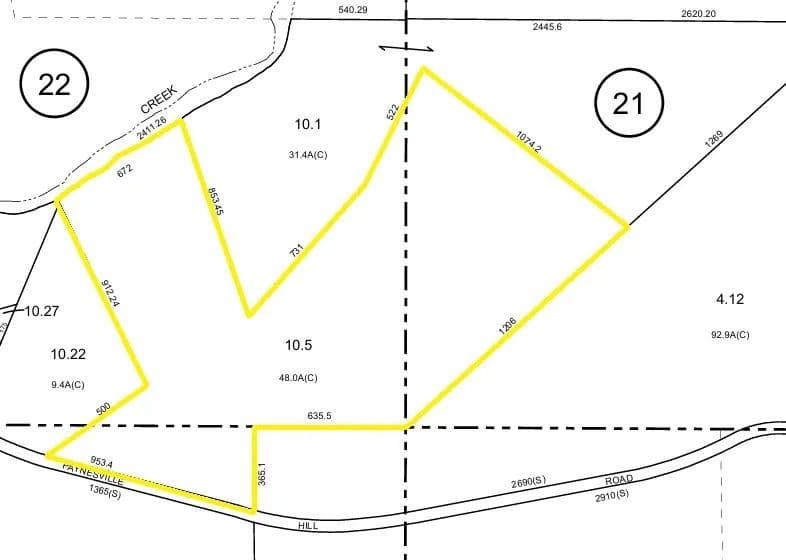The land features a mix of hardwoods and scattered planted pines with diverse topography including gentle slopes and steeper ridges. A recent selective timber harvest has enhanced the trail system and opened the canopy, encouraging new growth and creating exceptional wildlife habitat. Two small meadows consisting of goldenrod provide open spaces ideal for food plots.