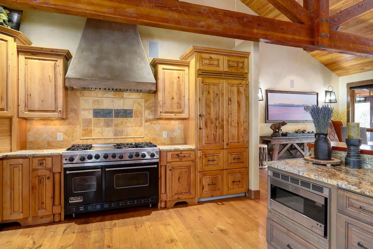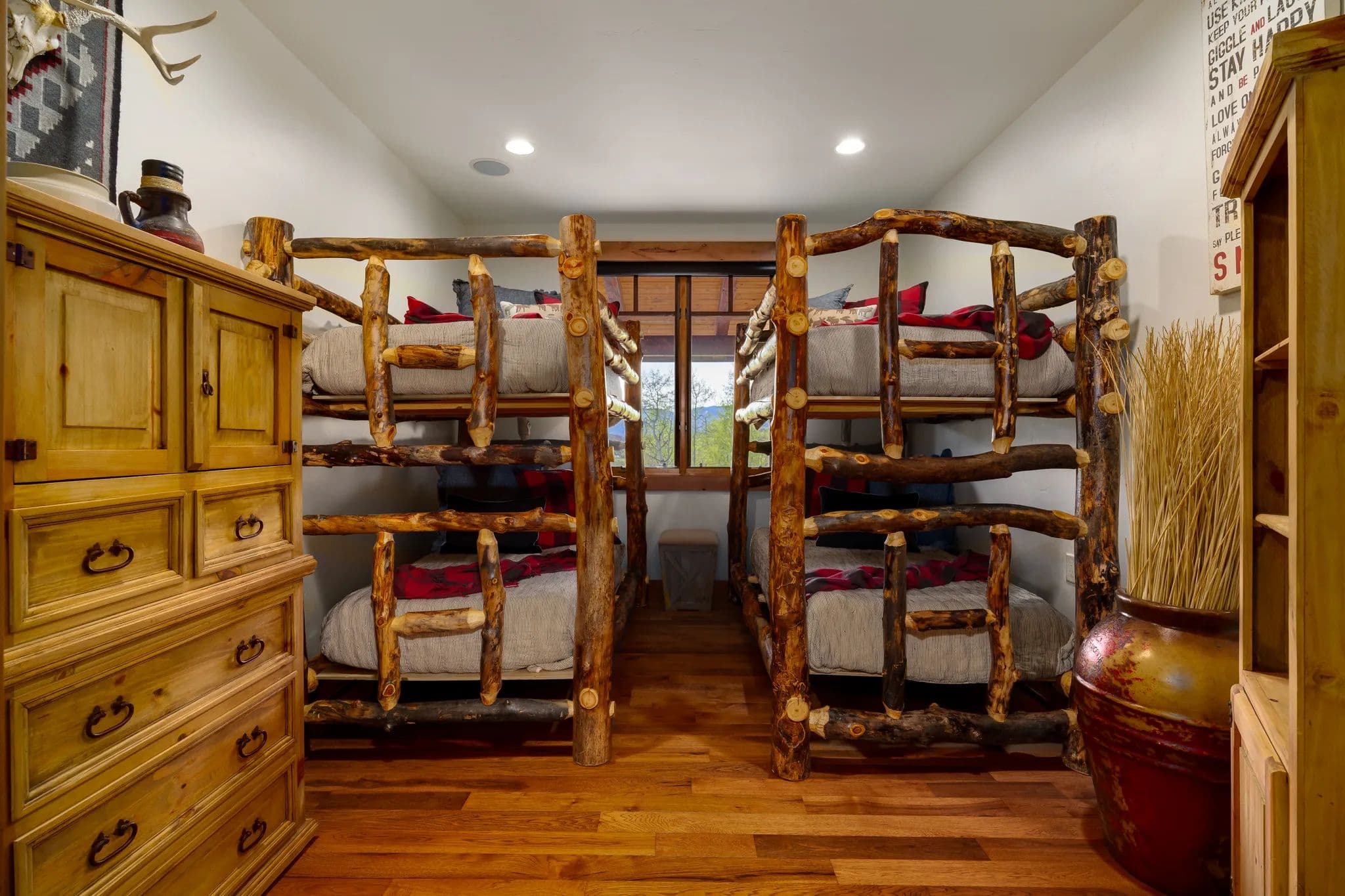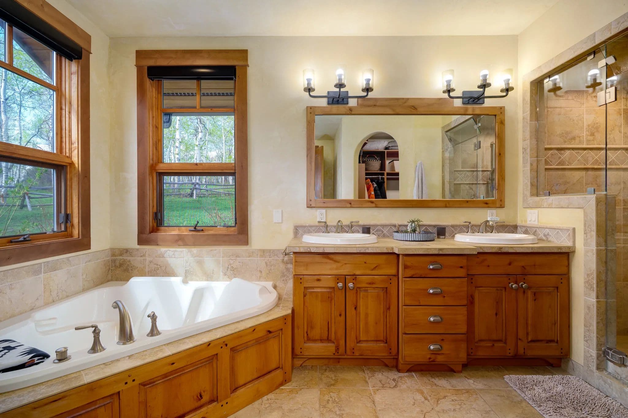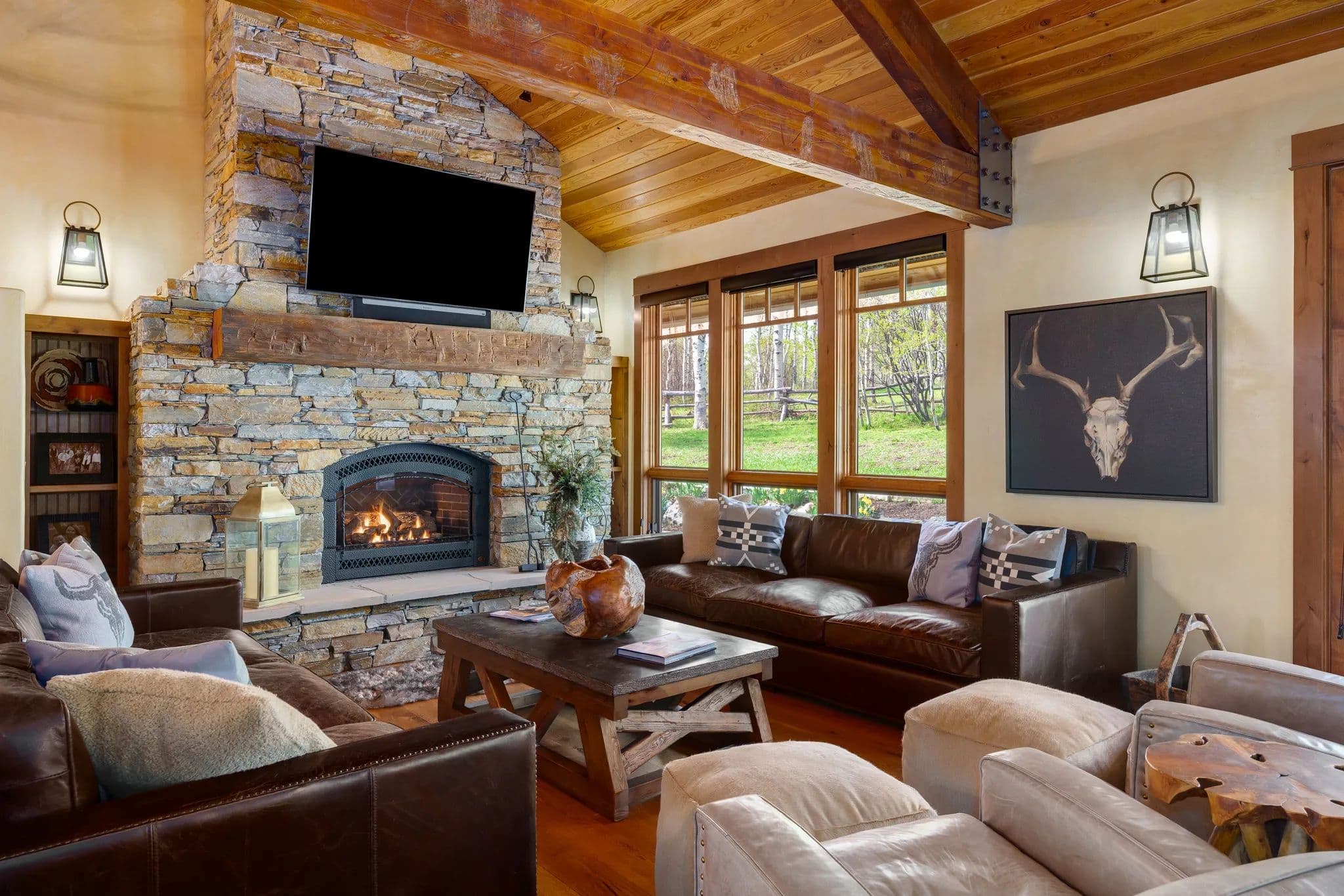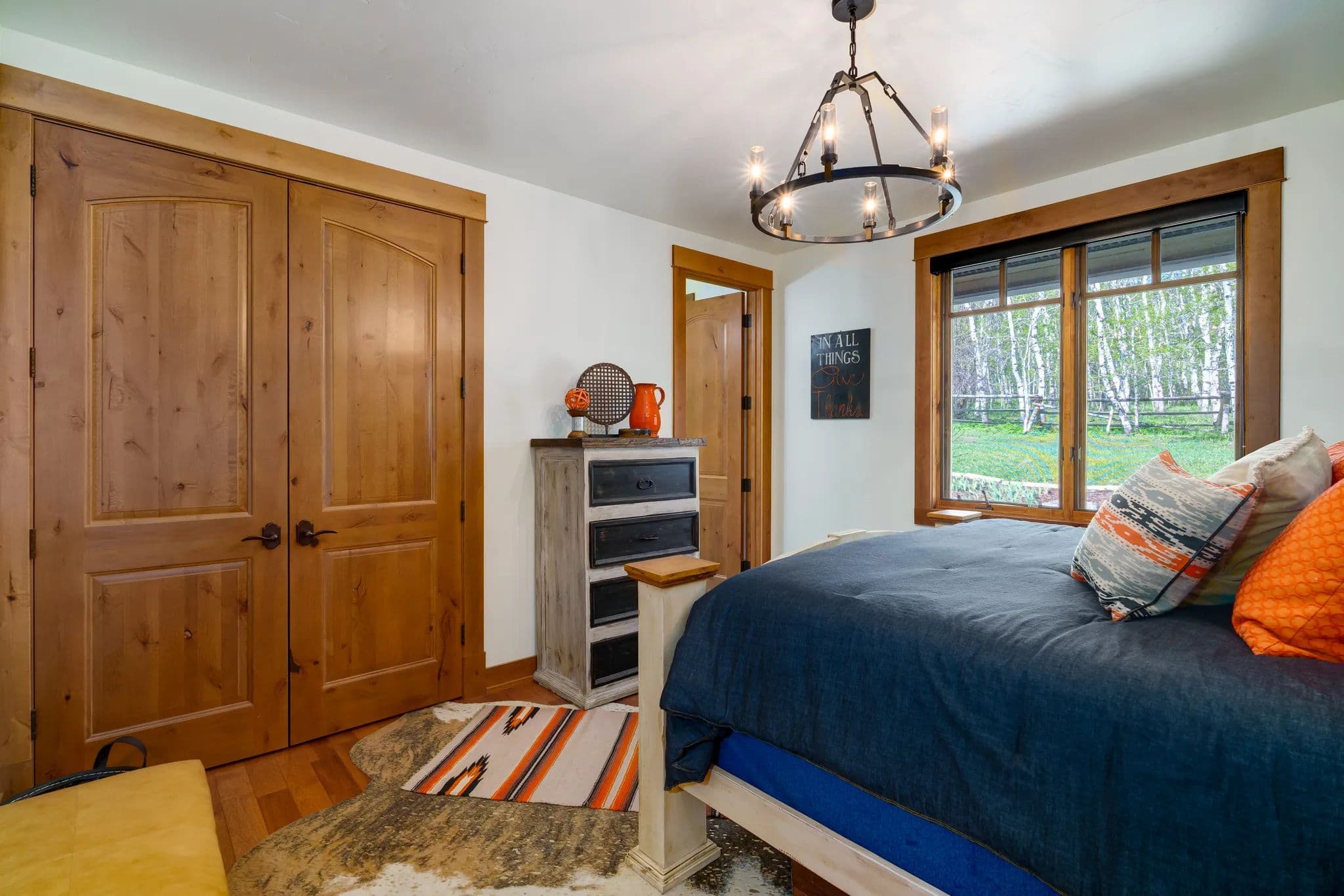 This custom-built home is located on 38 acres in the south valley of Steamboat Springs and is surrounded by a beautiful aspen grove. The floorplan is intelligently designed, featuring a master wing and a guest wing separated by the great room. The kitchen, open to the living and dining areas, showcases impressive hand-hewn beams that elevate the architectural elegance of the vaulted ceilings. Outfitted with granite counters and bar seating for chef-worthy cooking and entertaining, the kitchen also features premium appliances, custom cabinetry, and a large pantry. The dining room accommodates a large table and buffet, while the living room centers around a stone fireplace topped with a striking antique mantel. The master wing includes convenient access to an office and the laundry room. The master suite offers views of the landscaped yard and surrounding aspens, which are teeming with birds and wildlife throughout the seasons. The 5-piece bathroom includes a steam shower, jetted tub, double sink, and separate water closet, and is adjacent to a carpeted walk-in closet with personalized shelving and ample hanging space. The guest wing has a large den (presently used as a bunk room), a hall powder room, and two stylish guest suites, each with its own en-suite bathroom. A mudroom with built-in storage leads to an oversized three-car garage with fresh epoxy flooring. Outdoor living is just as refined, with a wide deck that spans the length of the home, a beautiful back deck, and a professionally landscaped yard supported by an irrigation system. Outbuildings include a dual-purpose barn with finished space for recreational vehicles and ample room to customize for horses, as well as an additional 5-bay garage. The water is supplied by a neighboring central water system, and a pond is fed by a decreed spring. Situated at the end of the road in a private valley setting with no covenants, the property lies just 12 miles from Steamboat Springs.