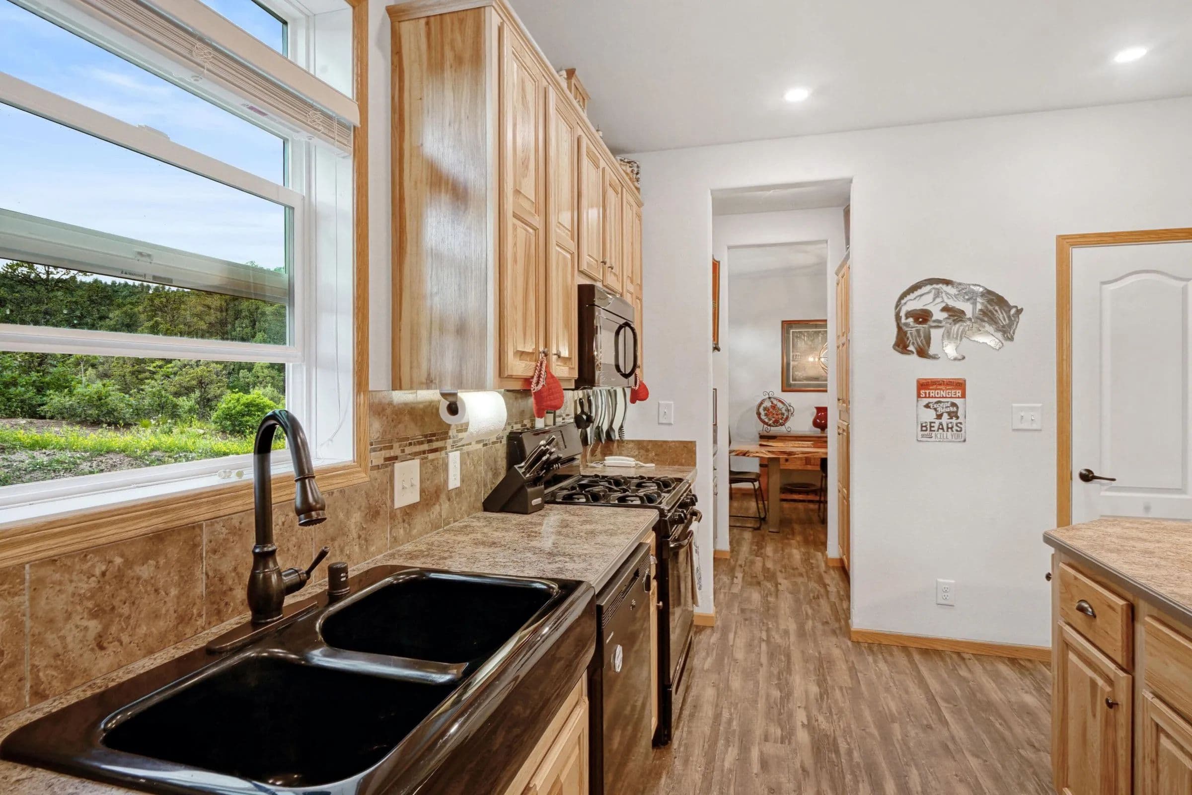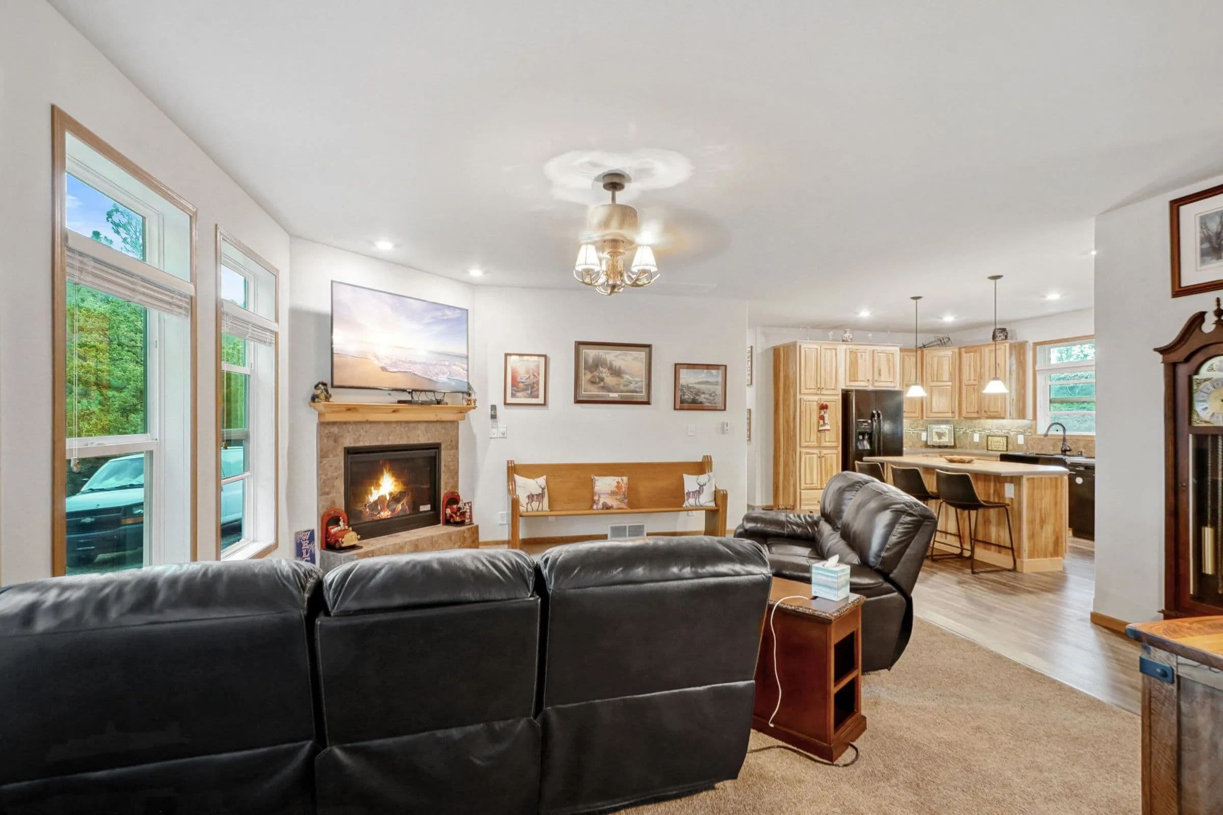 High-End 2017 BonnaVilla Modular Home with Premium Upgrades & Oversized Shop. Where thoughtful design, energy efficiency, and luxury finishes come together in perfect harmony. Built with superior construction and loaded with high-end features, this 3-bedroom, 2-bath residence is the ultimate blend of modern living and practical functionality. Immediately feel the difference: 9-foot ceilings with transom windows create an expansive, sun-filled living space. The open-concept layout is anchored by a custom kitchen, complete with soft-close cabinetry, a large center island, wet bar, and an oversized walk-in pantry—ideal for both entertaining and everyday living. The living area features a gas fireplace with blower, and the spacious primary suite includes a luxurious walk-in shower and generous storage. This home boasts 2x6 walls with R-30 insulation, a ceiling rated at R-52, and central heating throughout. Enclosed Crawlspace/Basement The entire home sits above a fully enclosed