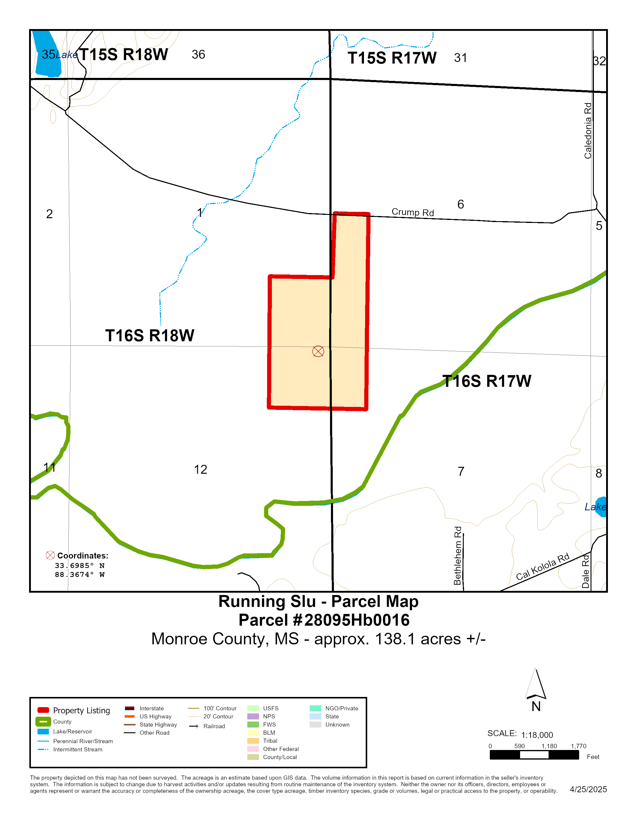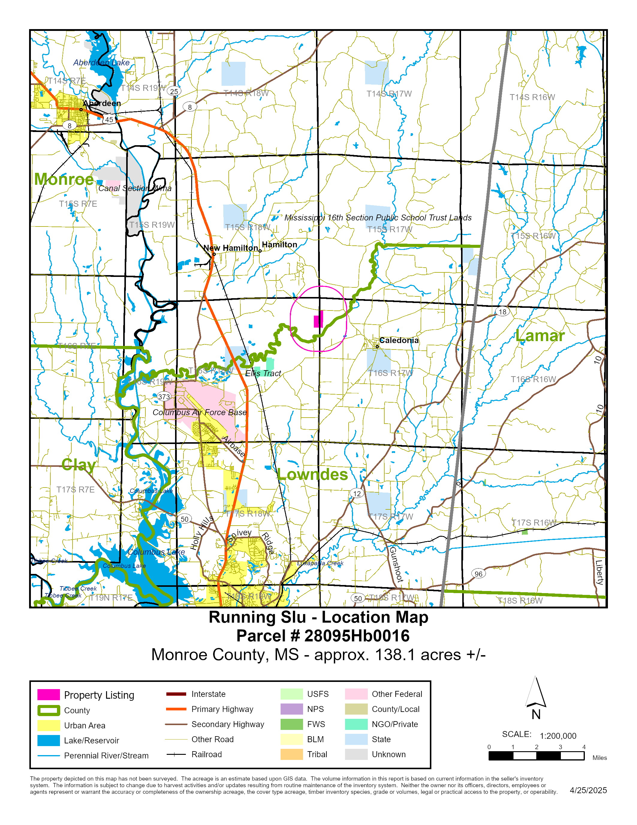 138 ± acres in Monroe County, MS, offering a unique blend of natural beauty and plenty of options. Running Slu Creek winds through the property, lined with hardwoods that attract wildlife and add scenic value. The remainder of the land has been recently harvested, providing a perfect blank canvas for your vision—whether that’s reforesting, creating open fields, or developing your dream getaway. With road frontage and power along Crump Road, access and utilities are already in place. Located just 3 miles from Caledonia, 4.3 miles from Hamilton, and 20 miles from Columbus, this property combines rural seclusion with convenience. It’s an excellent area for hunting or outdoor recreation. The possibilities are endless—invest, build, or enjoy nature on your terms.
