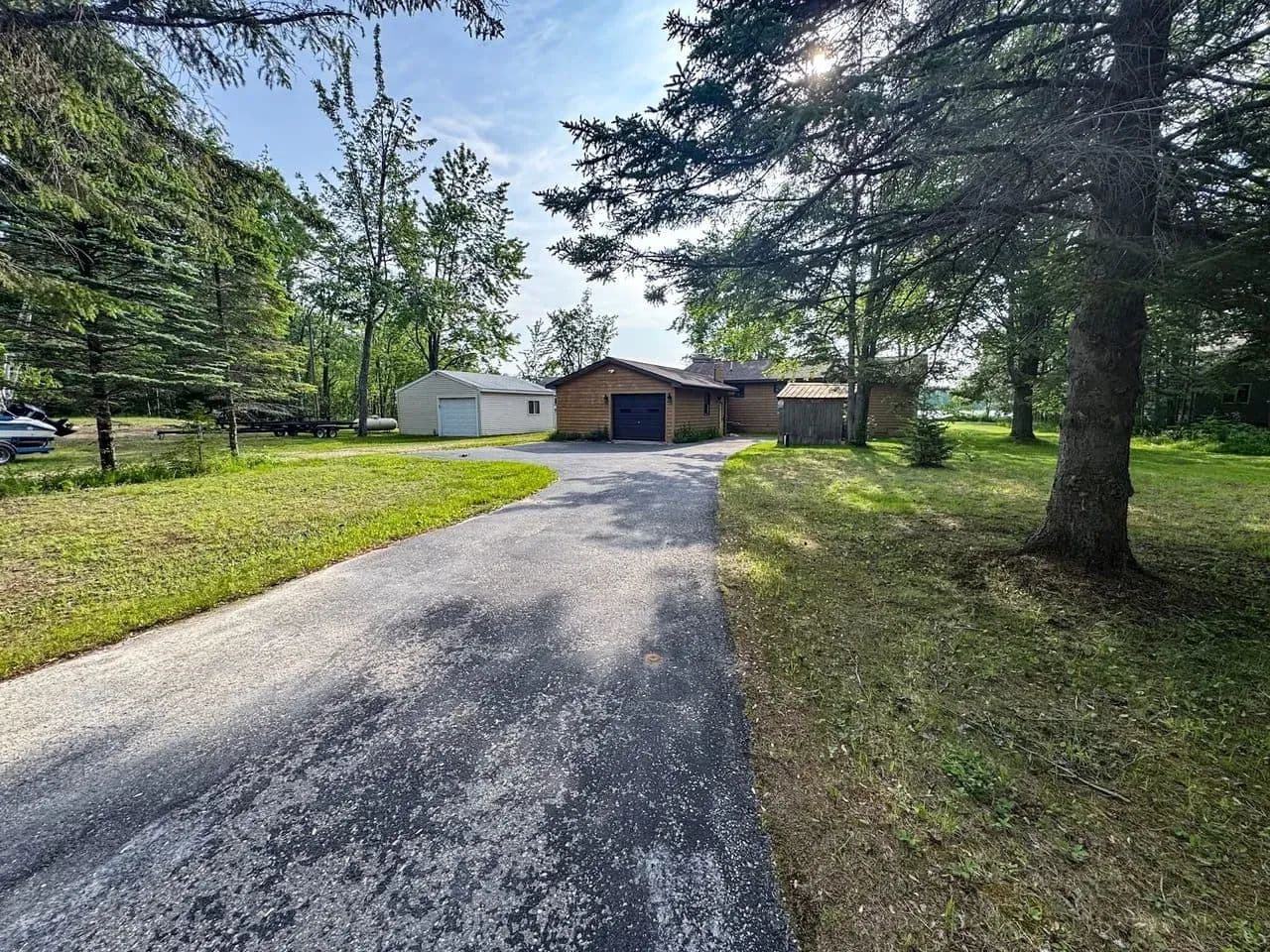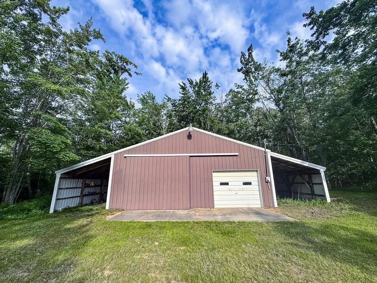 Pole barn on property which is located directly across Silver Strand Road from the house is 40' x 52'. Concrete floor, electric and lighting installed to pole barn. One man door, one garage door and one large sliding door. Enclosed room in the back of the pole barn for office or small work shop that can be heated. Lean to on both sides of pole barn for additional storage. Plenty of space to store your toys and equipment!