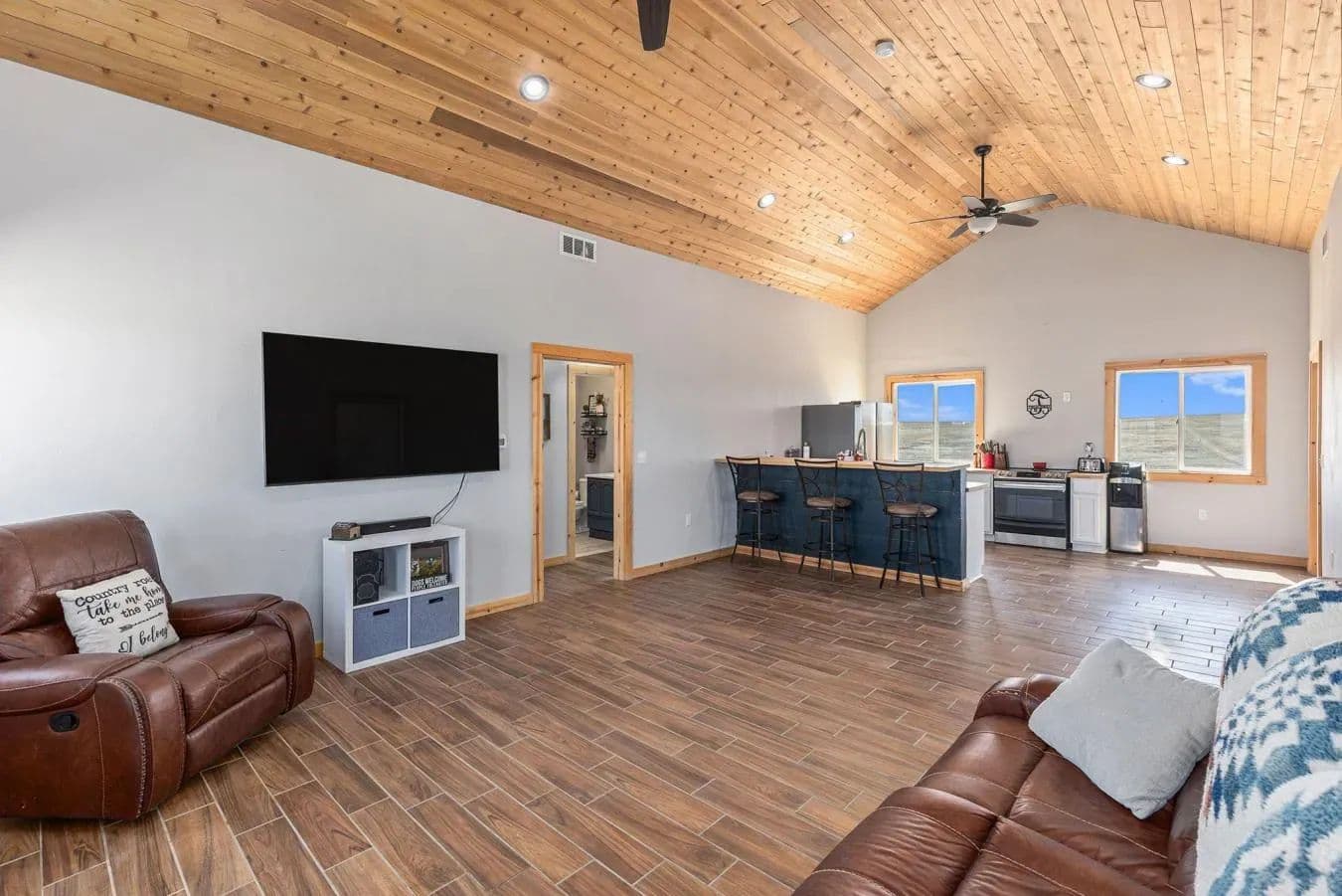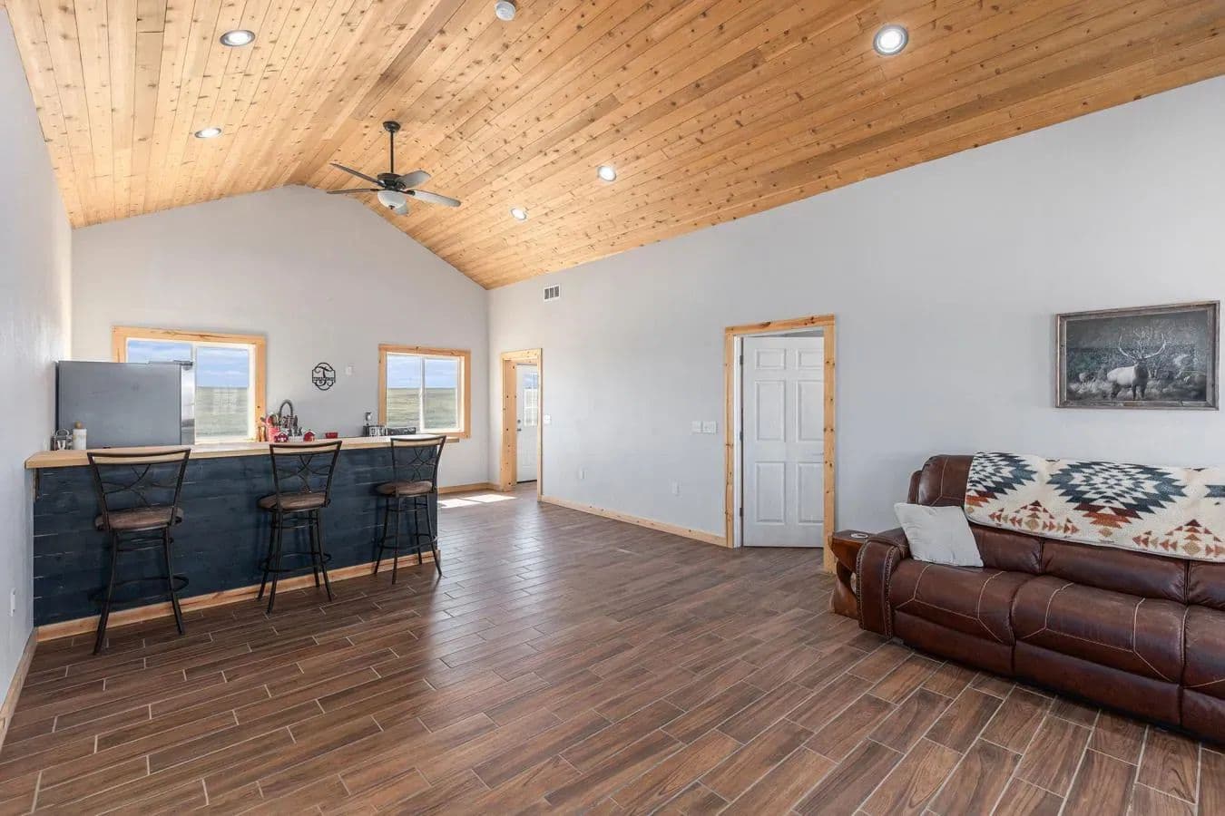 Check this out! An affordable horse property on 24 acres, complete with a custom-built home from 2019. This 3 bedroom 2 bathroom split bedroom layout features tile flooring through-out (no carpet), stunning cedarwood vaulted ceilings in the main living area and pinewood trim on windows and doors. The spacious owner's suite includes a private bath with beautifully tiled walk-in shower. Outdoors, this property sits on a peaceful setting with wide open spaces to roam and explore. It's an ideal setup for outdoor enthusiasts and livestock owners alike. Located in-between 1-25 and HWY 85, it's the perfect blend of country living and modern convenience, with the freedom lifestyle you're looking for. May be sold with the property next door at 52924 County Road 21 with 2 bedroom 2 bath, shop and shed on 11 acres for an additional 525,000 if you are looking for a FAMILY COMPOUND!