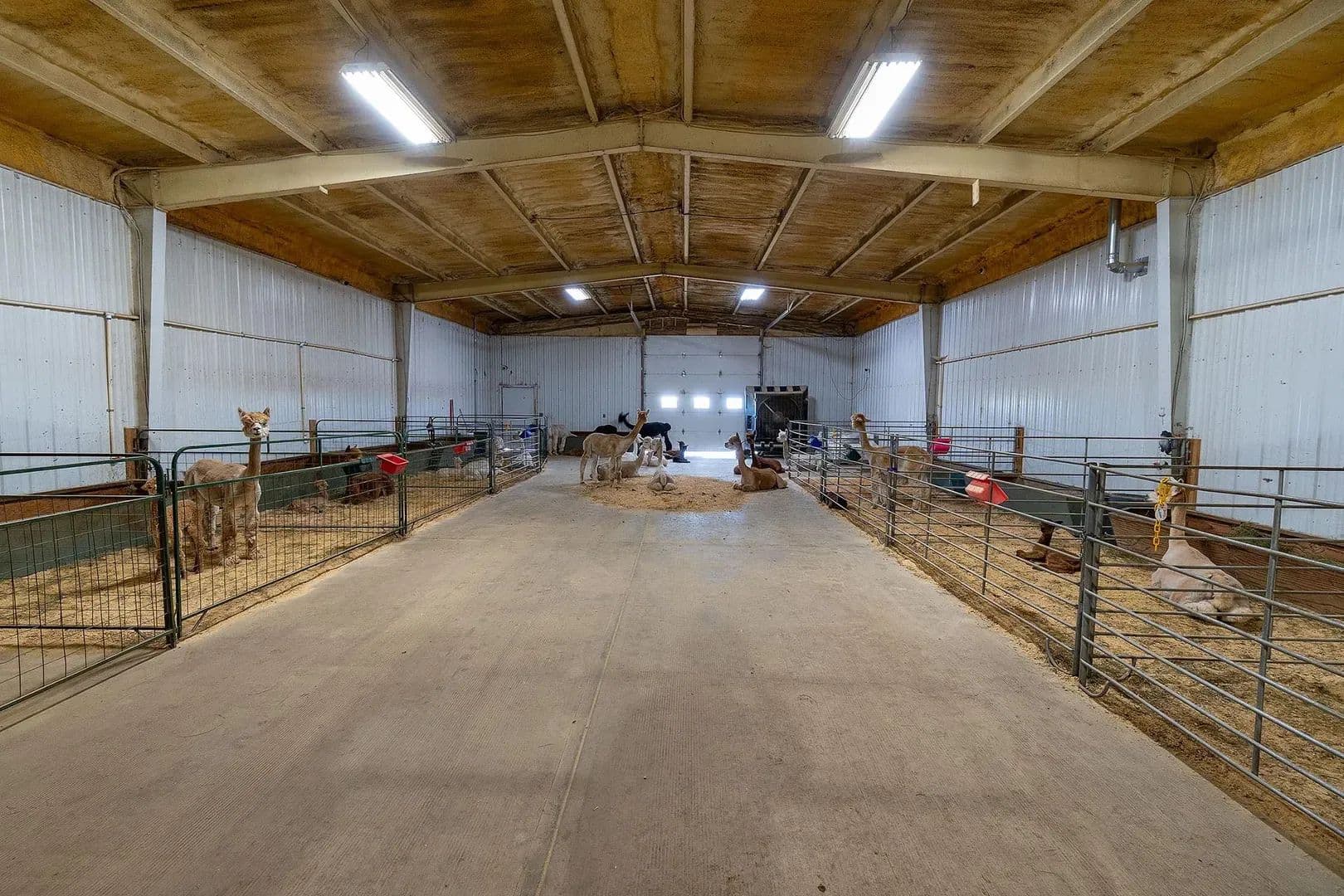 The farm is currently used to raise and market high-quality alpacas but was designed with the flexibility to accommodate a wide variety of livestock, including horses, sheep, goats, and cattle. Improvements include a 3,400± square foot metal-framed home, a large multi-use barn with feed storage, indoor corrals, a dedicated vet room, and an apartment with an upstairs office offering expansive mountain views. A second barn features eight stalls with runs, while a smaller five-stall horse barn provides additional shelter. The property also includes 13 livestock shade shelters and over 30 automatic, heated waterers.