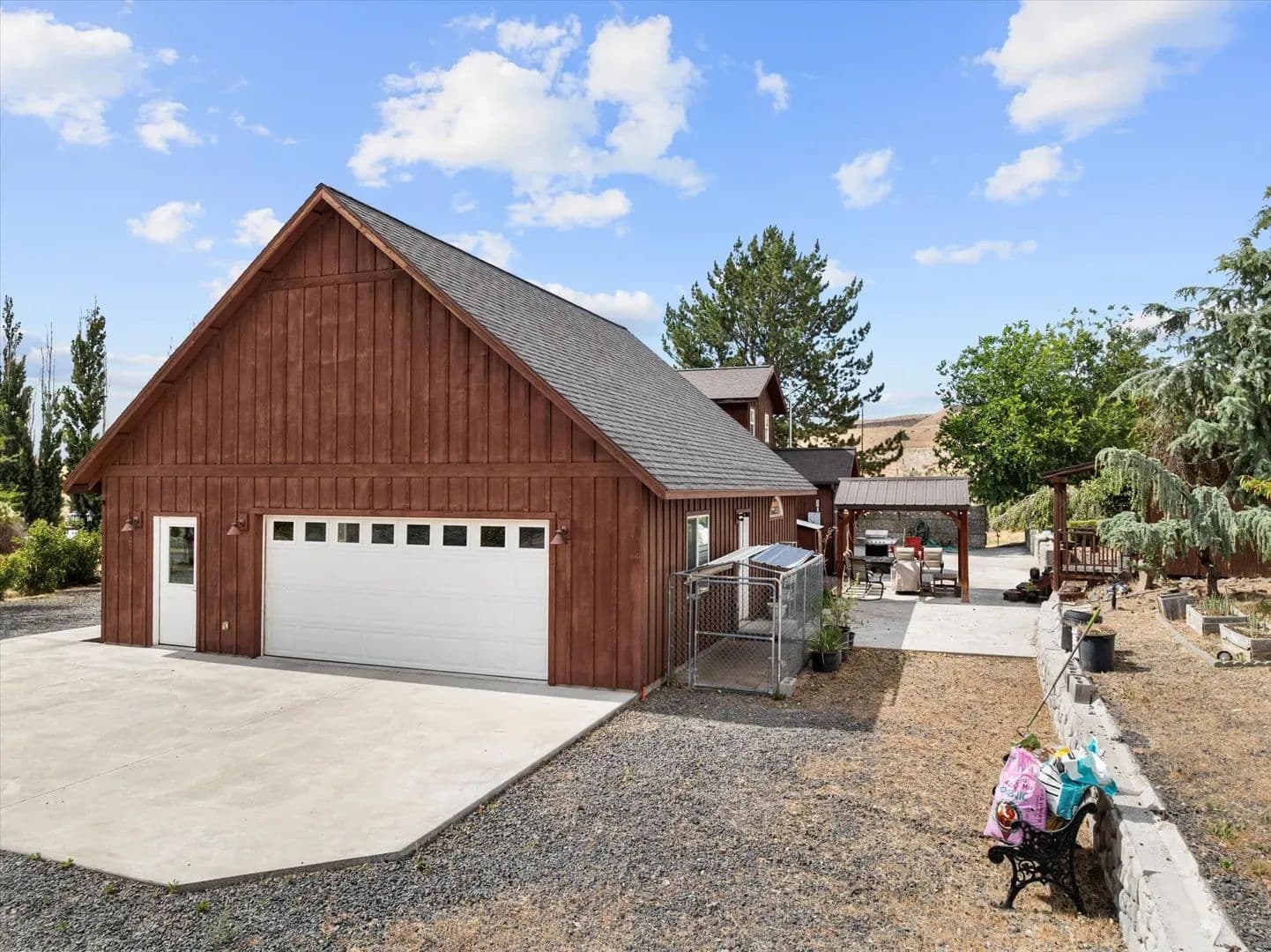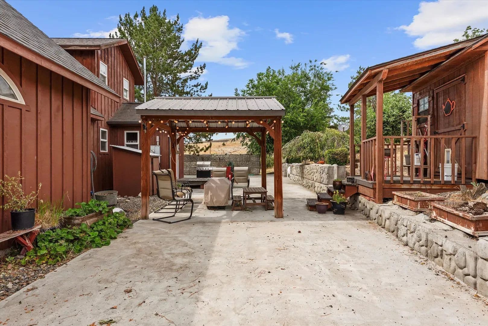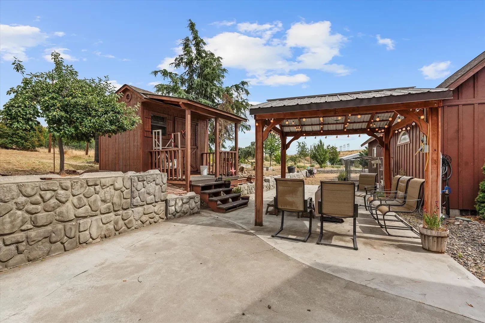 Enjoy outdoor living on a large, private patio—perfect for entertaining—and benefit from a fully irrigated yard that enhances the lush landscape. The property includes several producing fruit trees, a well-maintained chicken coop, and plenty of open space ideal for animals, making it perfect for those seeking peaceful county living.