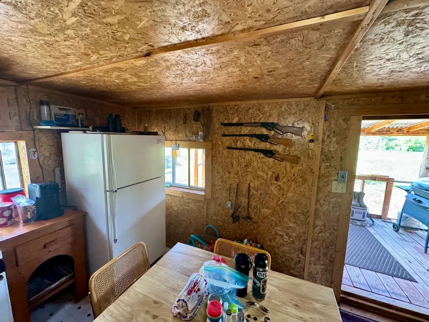 Improvements Ocate Mesa Hunting Camp features a functional and comfortable 1-bedroom, 1-bath hunting cabin with approximately 850 square feet of enclosed, finished living space. The interior includes a full kitchen, living area, bathroom, and sleeping quarters—ideal for hunters, weekenders, or seasonal use. Heating is provided by a wood-burning stove and space heaters, making it a cozy and efficient retreat year-round.