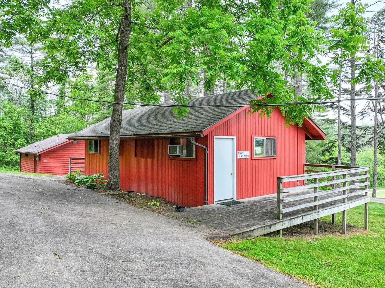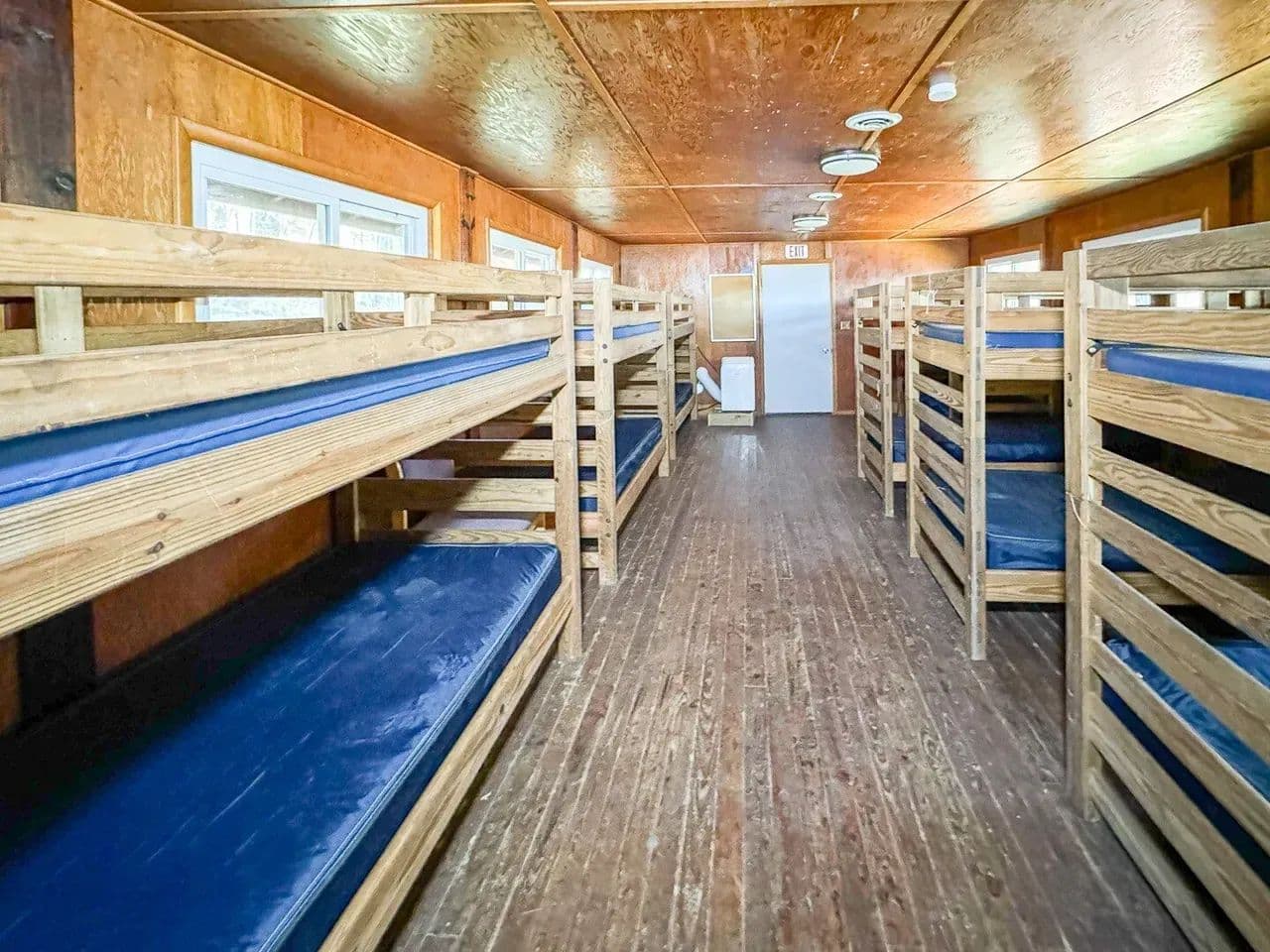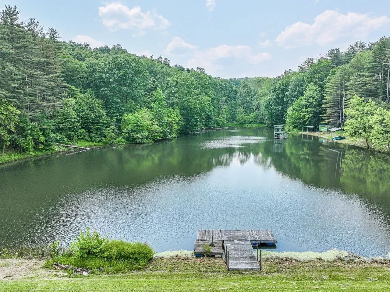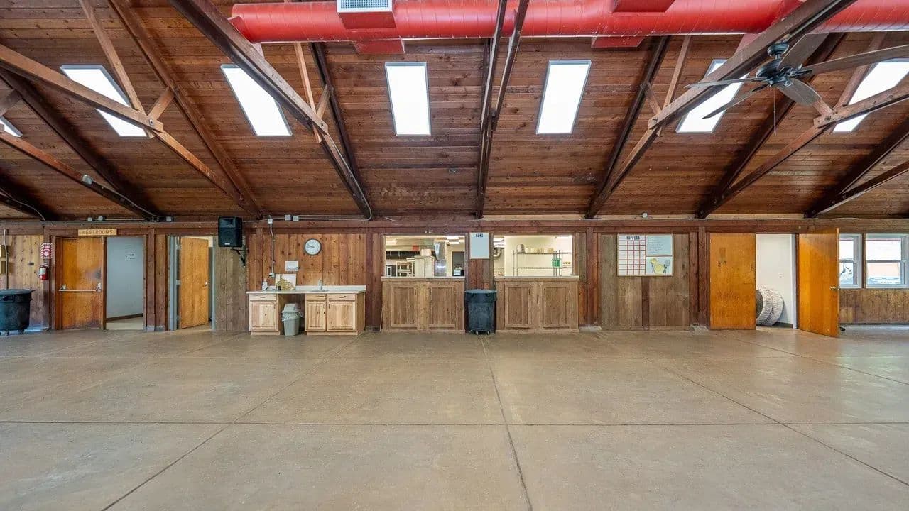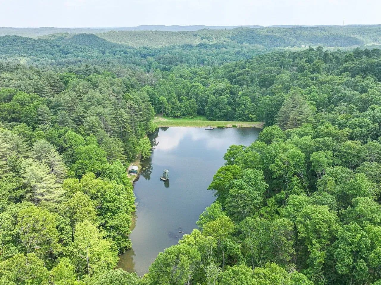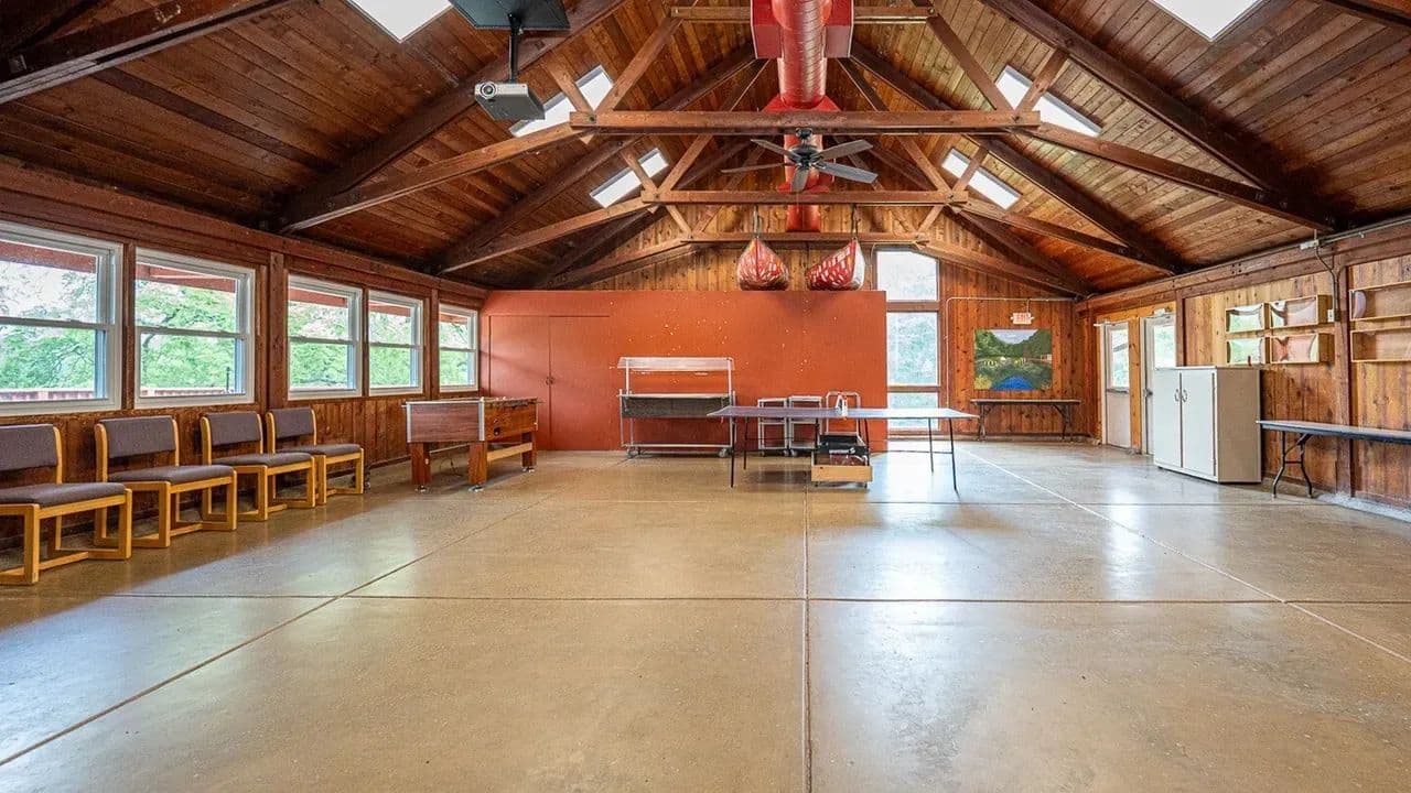 Parcel 3 is approximately 50 acres and is the crown jewel of the property. This parcel boasts a 3-acre lake that offers fishing, swimming, and boating, complemented by a large diving platform with an attached rock climbing wall. The main lodge is over 6,600 sq ft, and features a fully working large commercial kitchen, open floor plan, stone fireplace, and restroom facilities, making it well-suited for large gatherings. Additionally, the property includes 8 cabins, 2 shower houses, a 5-bedroom 2-full bath ranch home along with outdoor basketball/volleyball courts. County water service