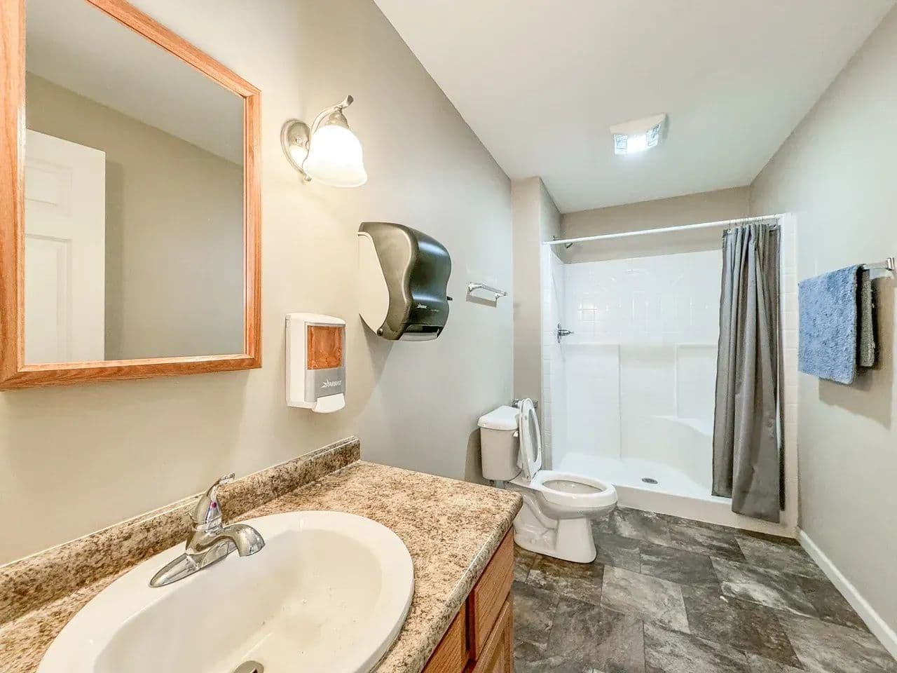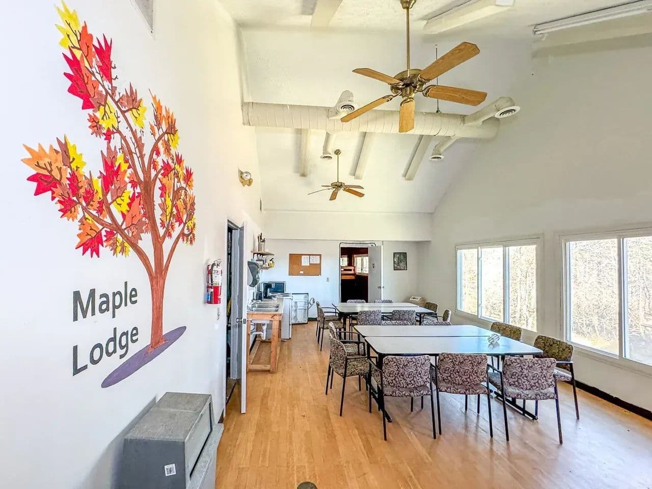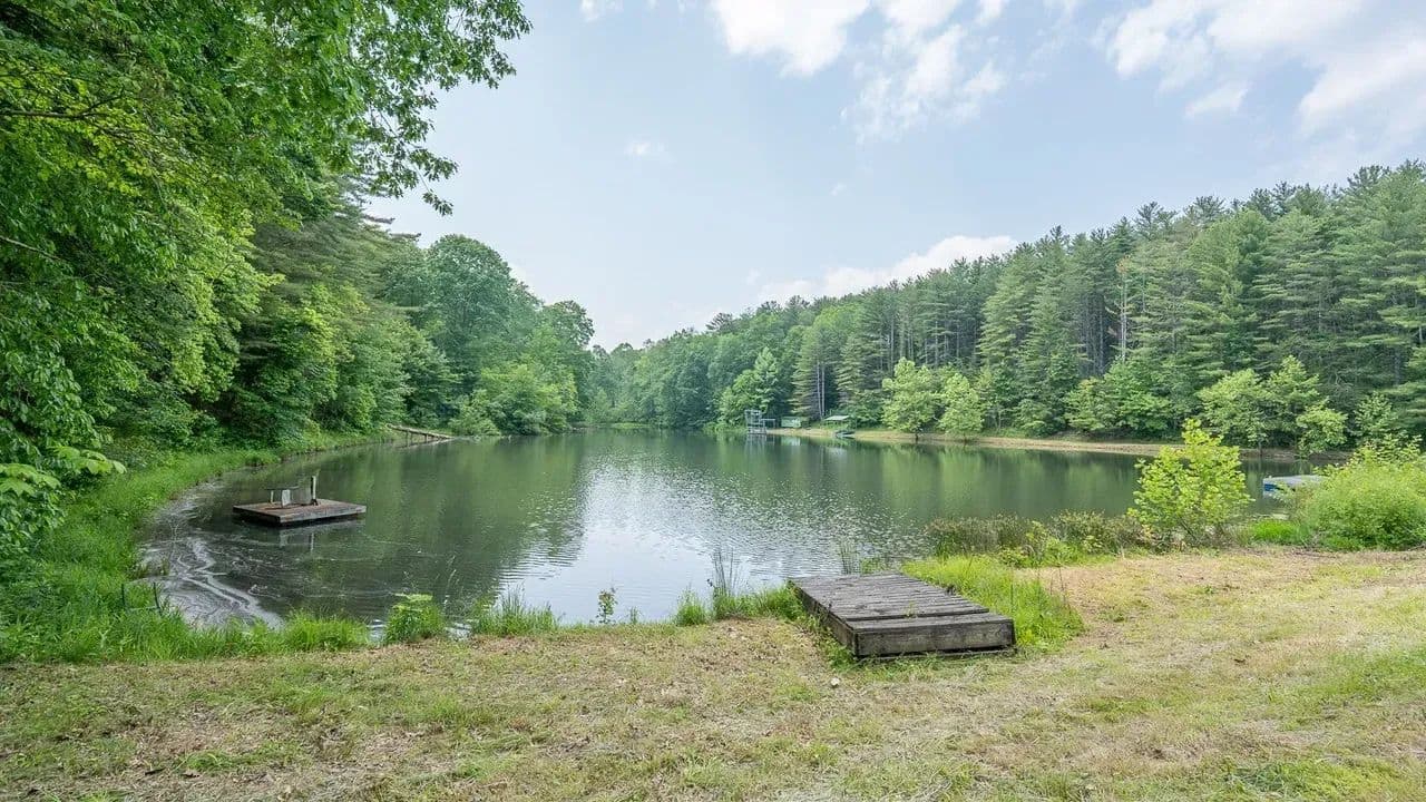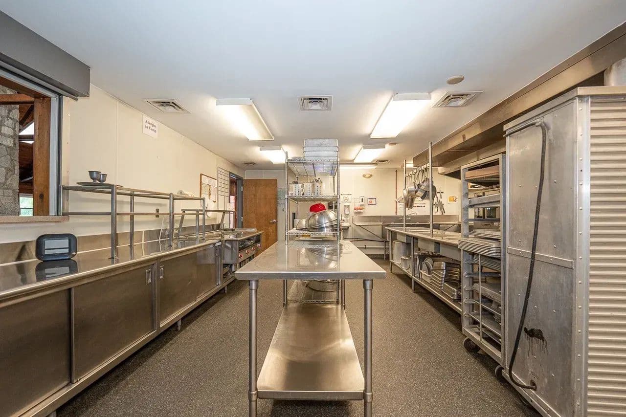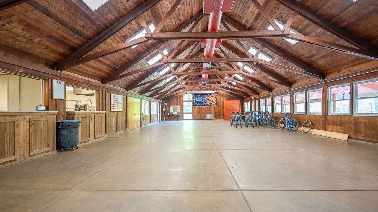 Parcel 3 is approximately 50 acres and is the crown jewel of the property. This parcel boasts a 3-acre lake that offers fishing, swimming, and boating, complemented by a large diving platform with an attached rock climbing wall. The main lodge is over 6,600 sq ft, and features a fully working large commercial kitchen, open floor plan, stone fireplace, and restroom facilities, making it well-suited for large gatherings. Additionally, the property includes 8 cabins, 2 shower houses, a 5-bedroom 2-full bath ranch home along with outdoor basketball/volleyball courts. County water service