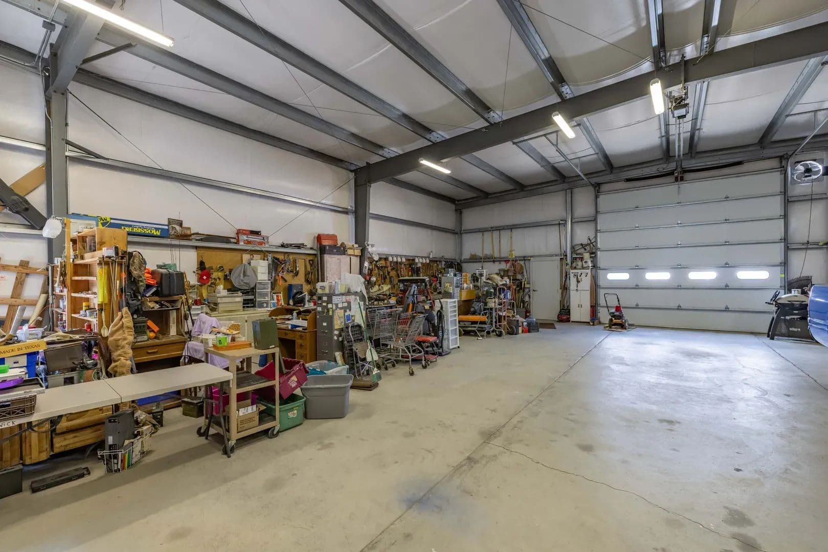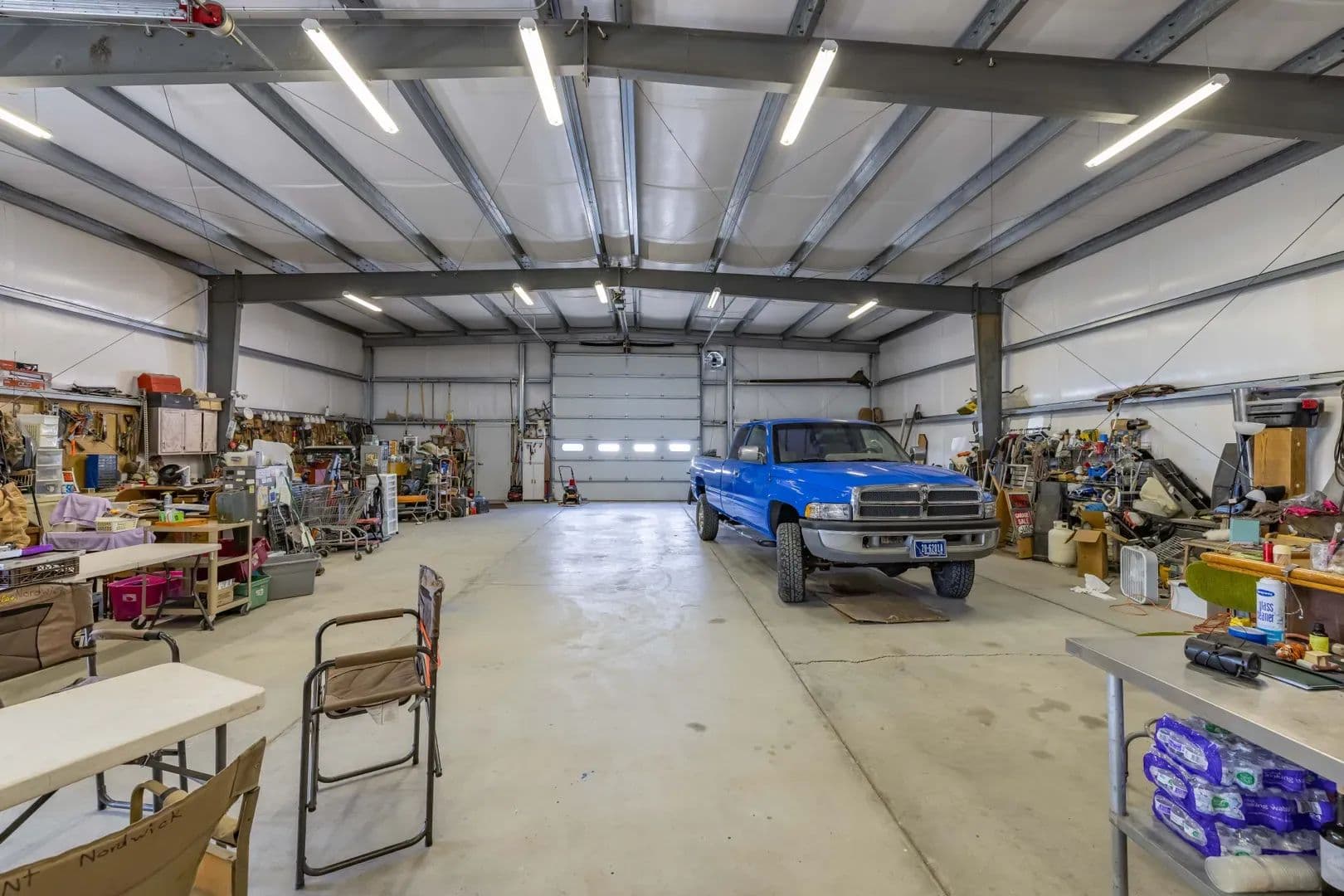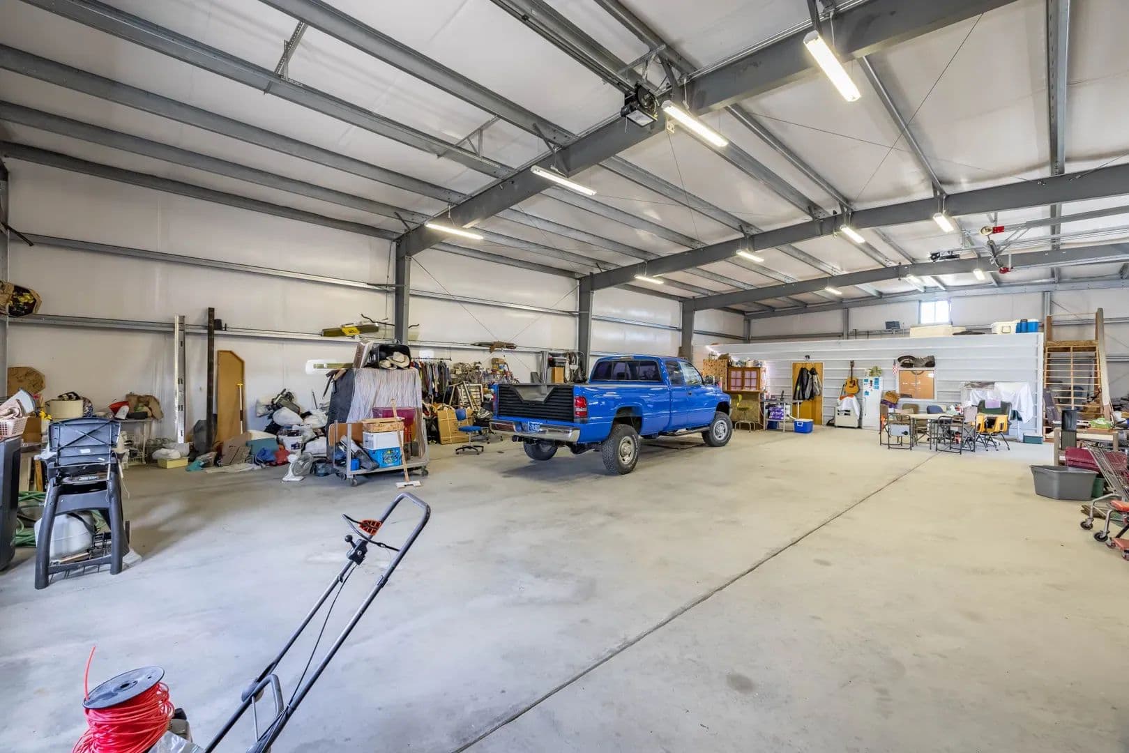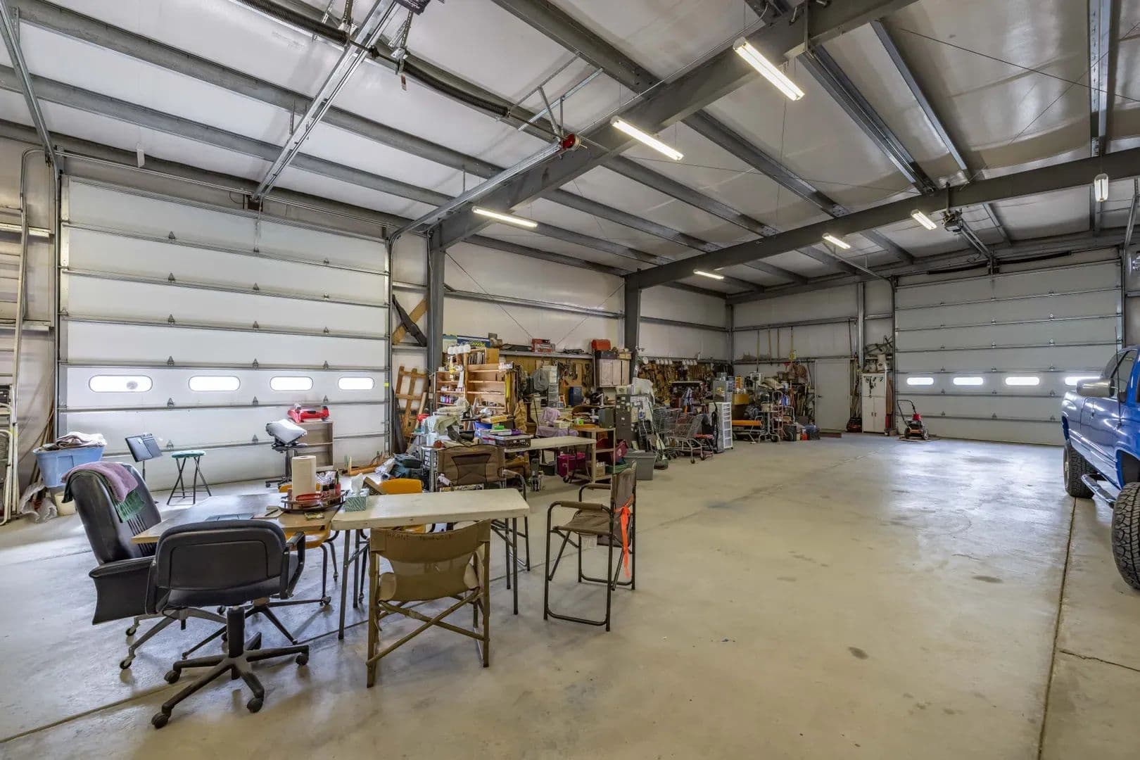 Improvements The centerpiece of the property is a well built 50′ x 80′ (4,000 sq ft) metal shop designed for versatility and durability. This insulated structure features high ceilings and two 14 foot overhead doors, making it ideal for large equipment, implement storage, or tractor trailer access. The shop is fully wired for welders and heavy duty tools, making it ready for a wide range of commercial or industrial uses.