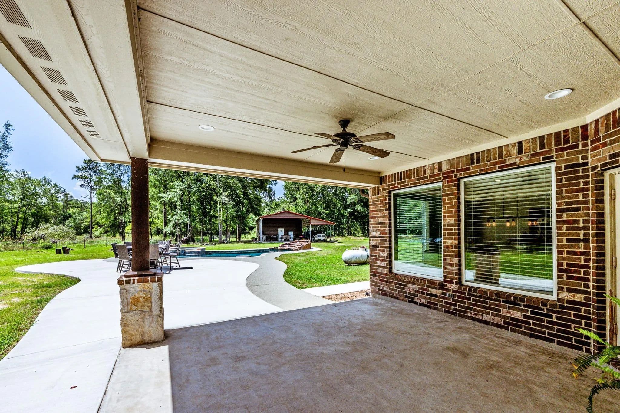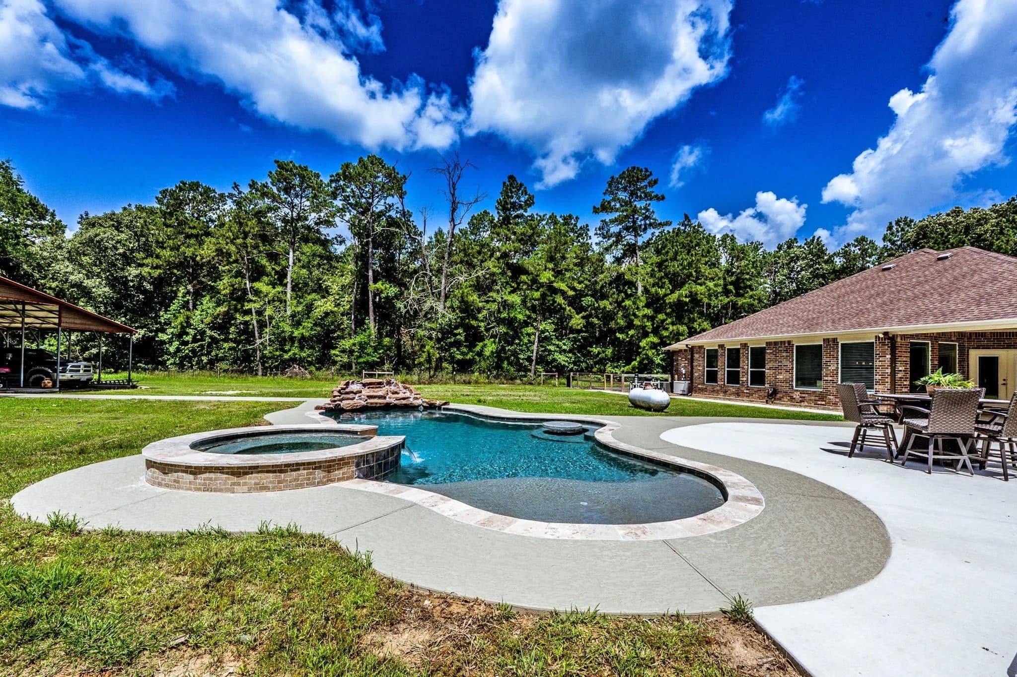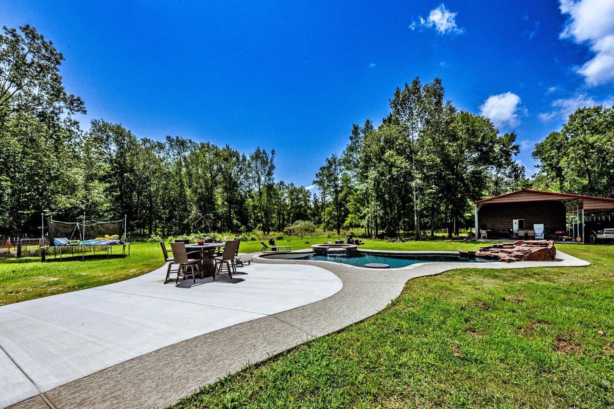 INCREDIBLE PROPERTY! This 10 acre OASIS HAS IT ALL !!! Coveted 10 acre size, Beautiful Home with keenly thoughtful floorplan, (Primary bedroom closet adjoins the Laundry Room for ease and convenience) gorgeous mix of trees and open property, Expansive, Phenomenal Metal Shop on Slab with Electricity, Roll-up Doors, Walk thru Doors, built in work area, Covered Porch, and Full Length Lean-to Storage for your tractor, boat or extra vehicles, Greenhouse, POOL with HOT TUB along with an In-Pool table, AND Waterfall. (Oh the summer fun to be had here!!!!) There is even your own private pond. This property just keeps on giving ... with a Whole house Generac Generator and location that just cant be beaten. Your home is located at the end of a dead end street for privacy and 5 minutes to a wealth of watersports at the 93,000 acre boating, fishing paradise , Lake Livingston. Truly, This property is lacking NOTHING except YOU!!!! Come see it for yourself.