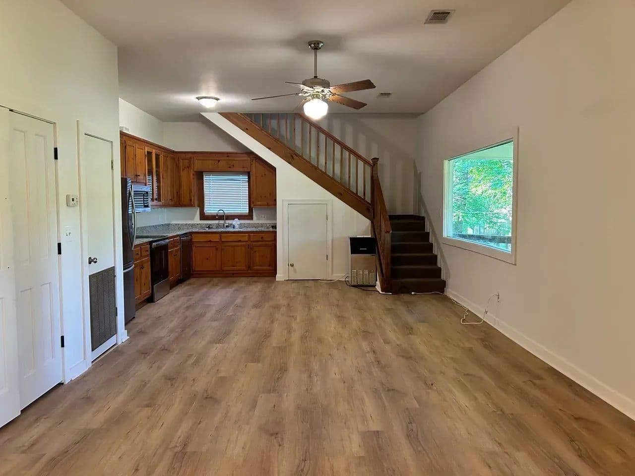 The home is in process of a being renovated with new floors, baseboards and trim with new paint through out. All brand new stainless steel appliances.