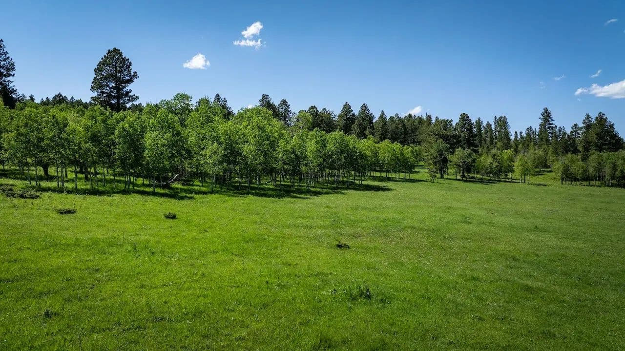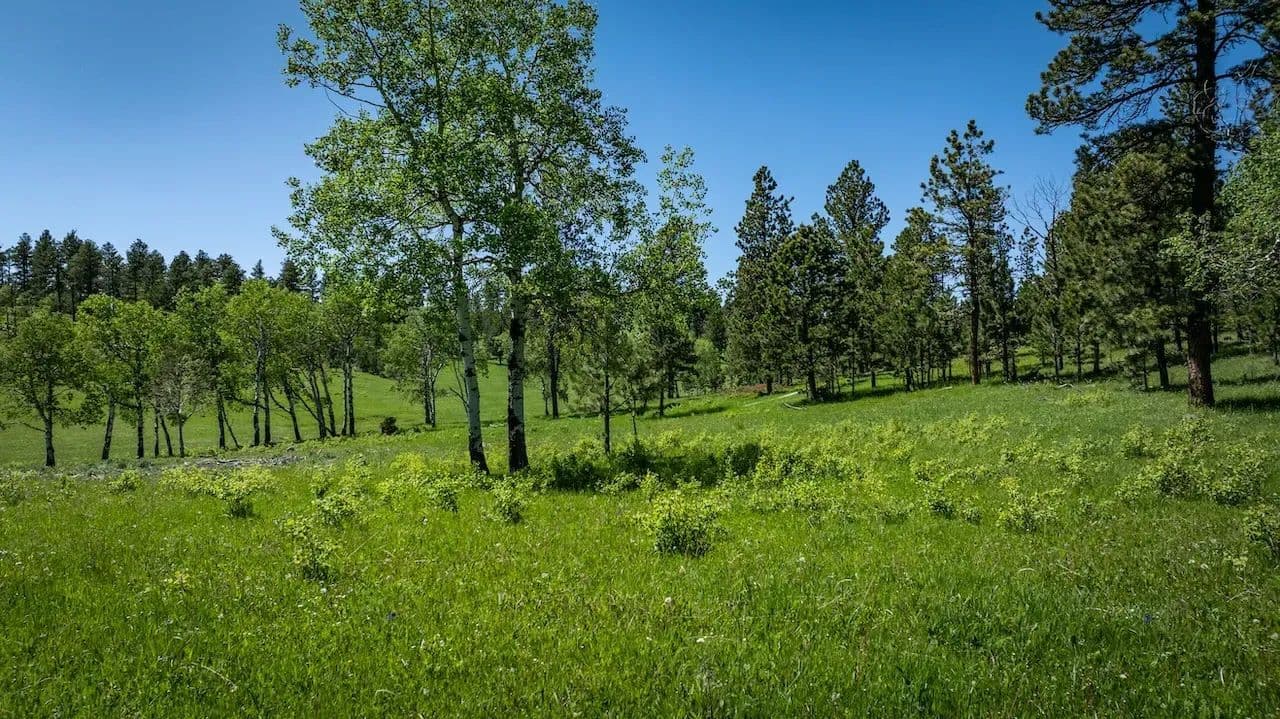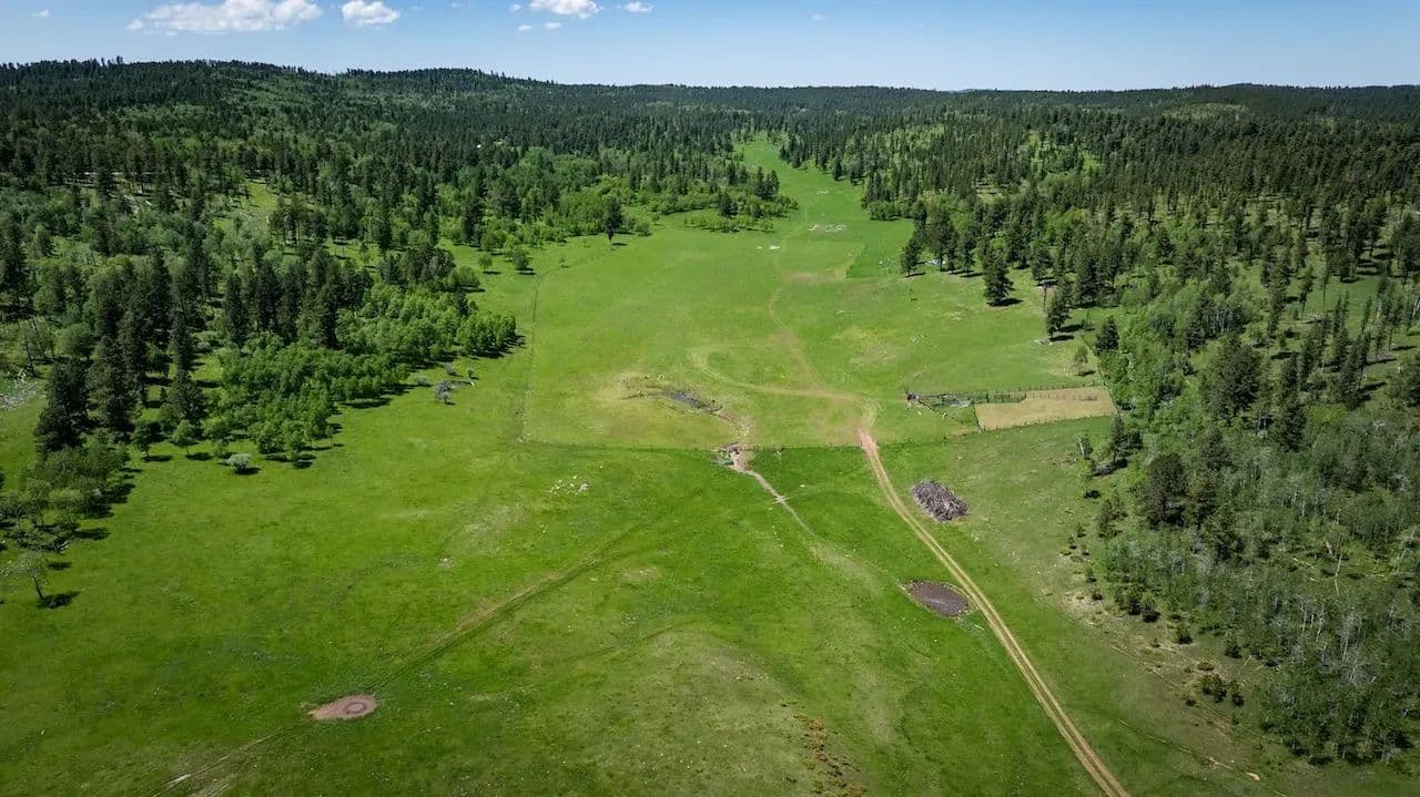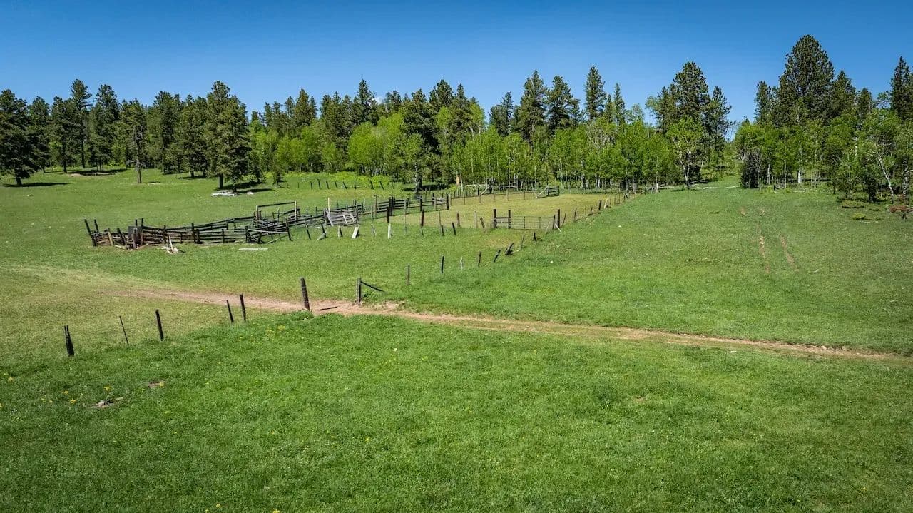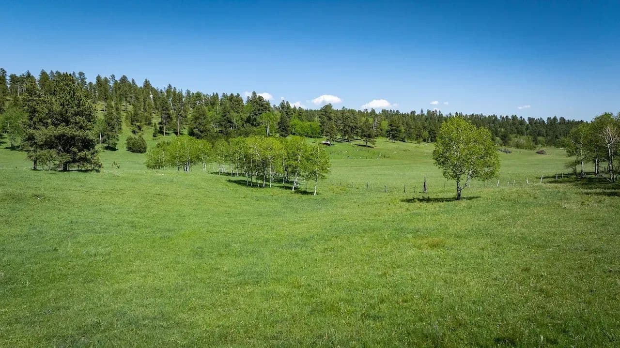 This secluded legacy ranch encompasses 454.56 ± acres of aspen lined meadows and pine-forested terrain. It is uniquely situated with direct access from Highway 85, yet 95% of the border adjoins the Black Hills National Forest. It is located just 20 miles west of historic Deadwood, 9 miles from the mouth of Spearfish Canyon and just 4 miles from Trails Head Lodge. A new solar powered well was drilled 7 years ago providing water for livestock and wildlife with adequate flow to also supply a new home. For those wanting to continue the current ag operations, the herd of approximately 82 cow/calf pairs could be purchased separately along with a “Term Grazing Land Permit” with the forest service. It is highly regarded for its privacy, extensive grazing resources, and diverse wildlife populations, which include elk, deer, and turkey. The property ranges in elevation from 6,300 feet at the lower end to 6,500 feet.