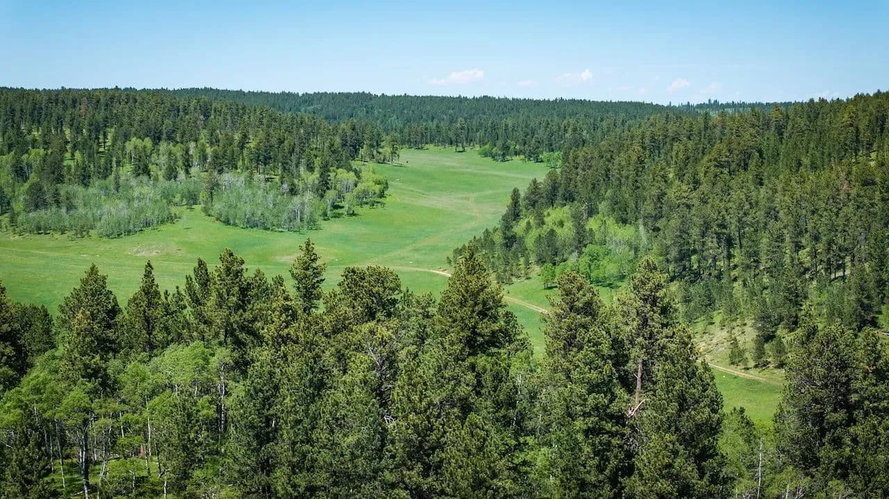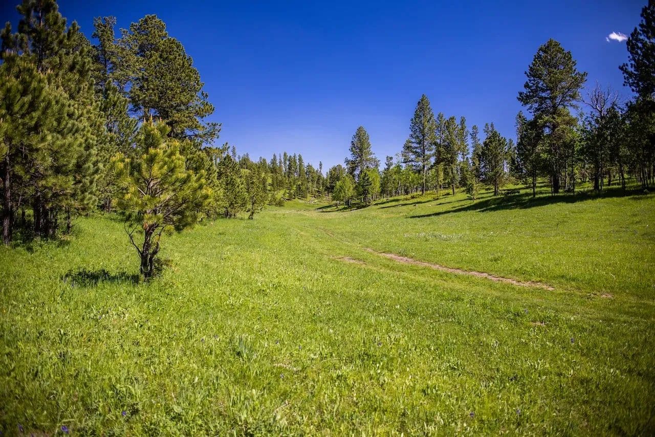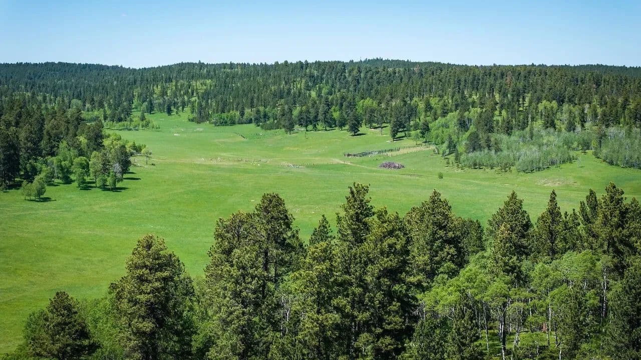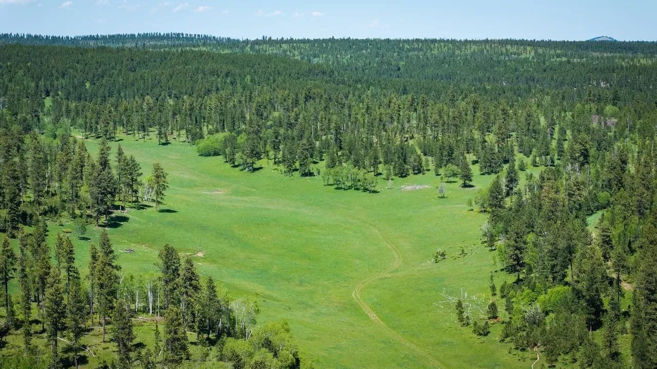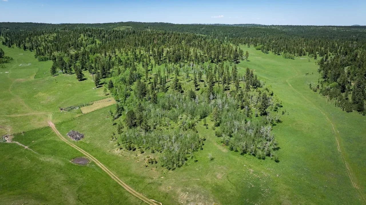 This secluded legacy ranch encompasses 454.56 ± acres of aspen lined meadows and pine-forested terrain. It is uniquely situated with direct access from Highway 85, yet 95% of the border adjoins the Black Hills National Forest. It is located just 20 miles west of historic Deadwood, 9 miles from the mouth of Spearfish Canyon and just 4 miles from Trails Head Lodge. A new solar powered well was drilled 7 years ago providing water for livestock and wildlife with adequate flow to also supply a new home. For those wanting to continue the current ag operations, the herd of approximately 82 cow/calf pairs could be purchased separately along with a “Term Grazing Land Permit” with the forest service. It is highly regarded for its privacy, extensive grazing resources, and diverse wildlife populations, which include elk, deer, and turkey. The property ranges in elevation from 6,300 feet at the lower end to 6,500 feet.