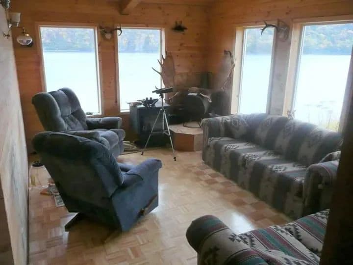 Land This 20 +/- acre property is covered in beautiful, mature timber that not only provides excellent privacy but also makes great habitat for local wildlife. With over a quarter mile of water frontage, there’s plenty of space to enjoy the sights and sounds of nature. The land slopes down toward Amook Bay, and the cabin was thoughtfully placed to take full advantage of the panoramic views—offering a front-row seat to some of the most stunning scenery around.