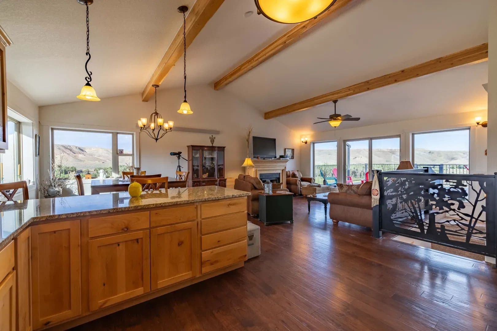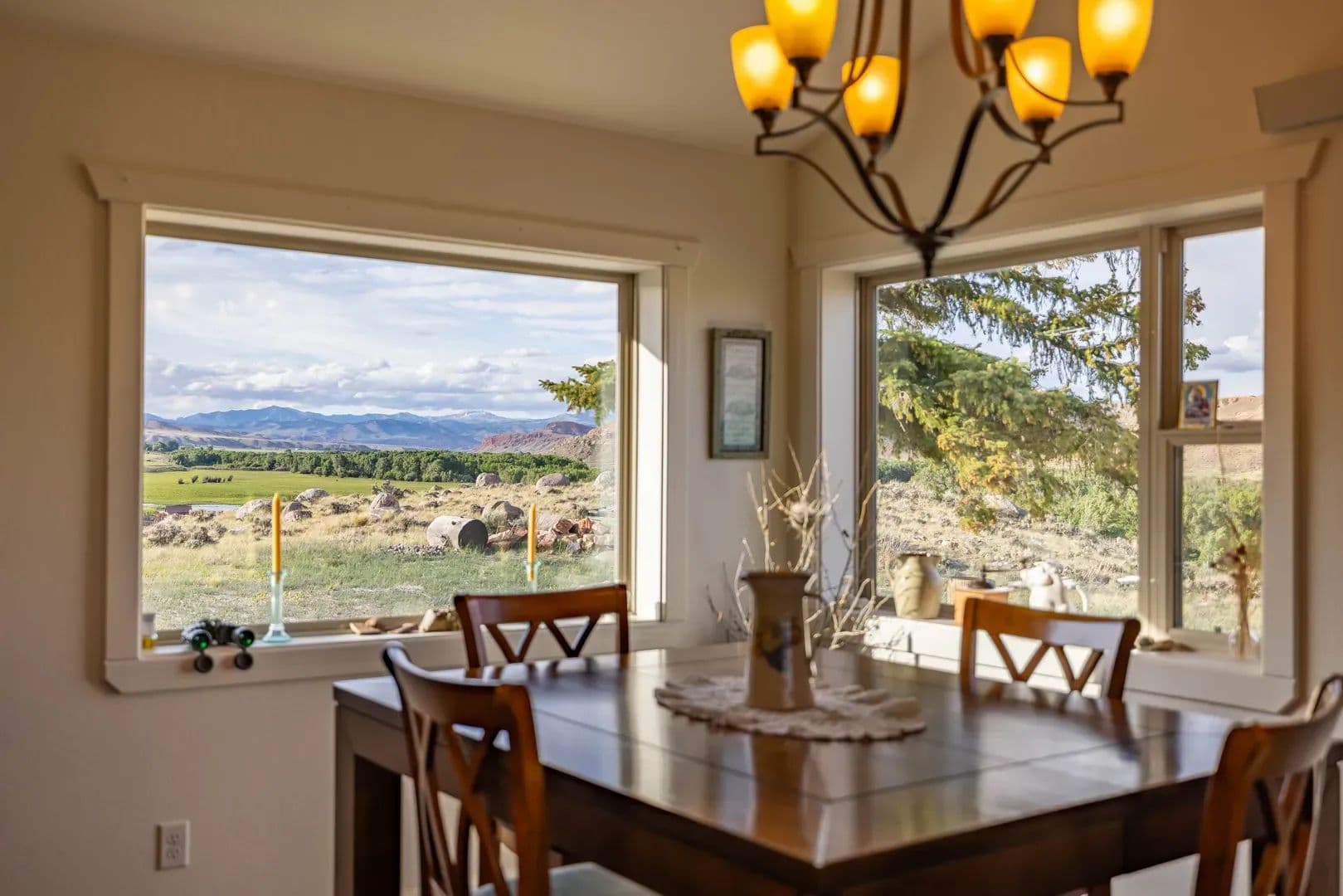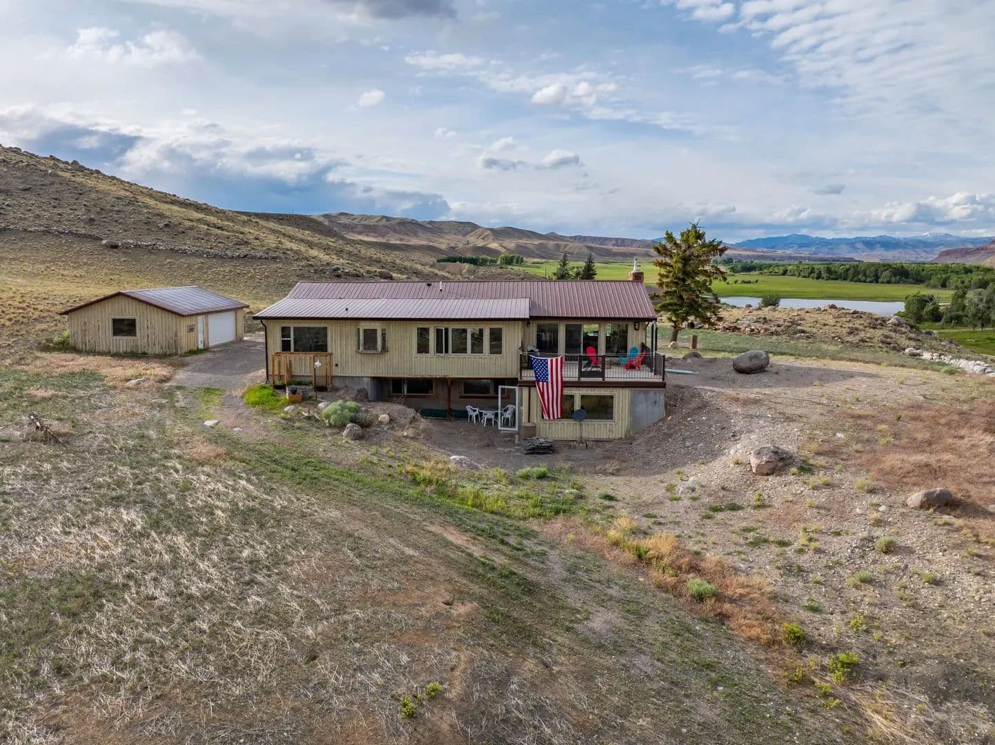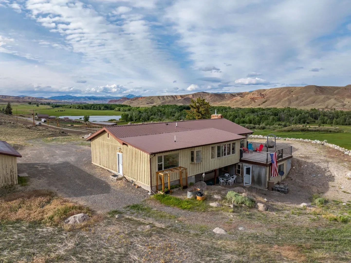Improvements Inside the home features a spacious master ensuite with a walk-in closet, a dedicated workout area, and custom knotty pine kitchen cabinets. The open-concept layout is perfect for entertaining or relaxing while soaking in the incredible surroundings. Boasting 3,664 sq. ft. of well-designed living space, this home offers panoramic views of the East Fork River and the majestic Absaroka Mountains through expansive windows that fill the home with natural light.