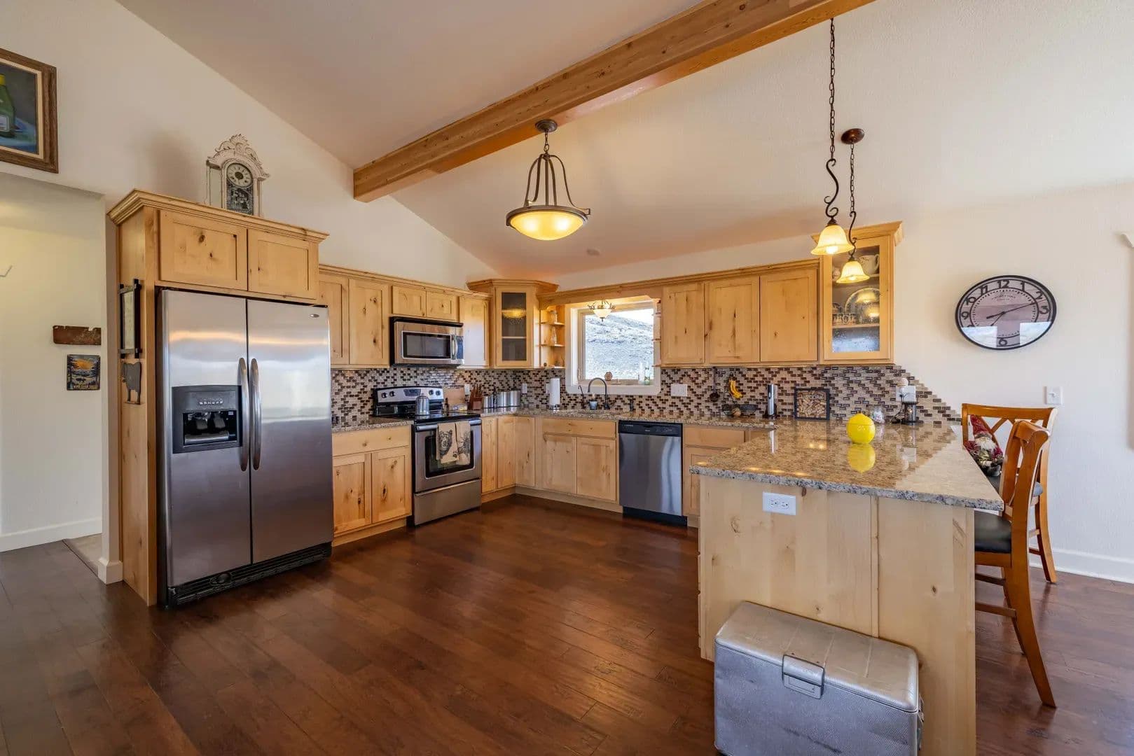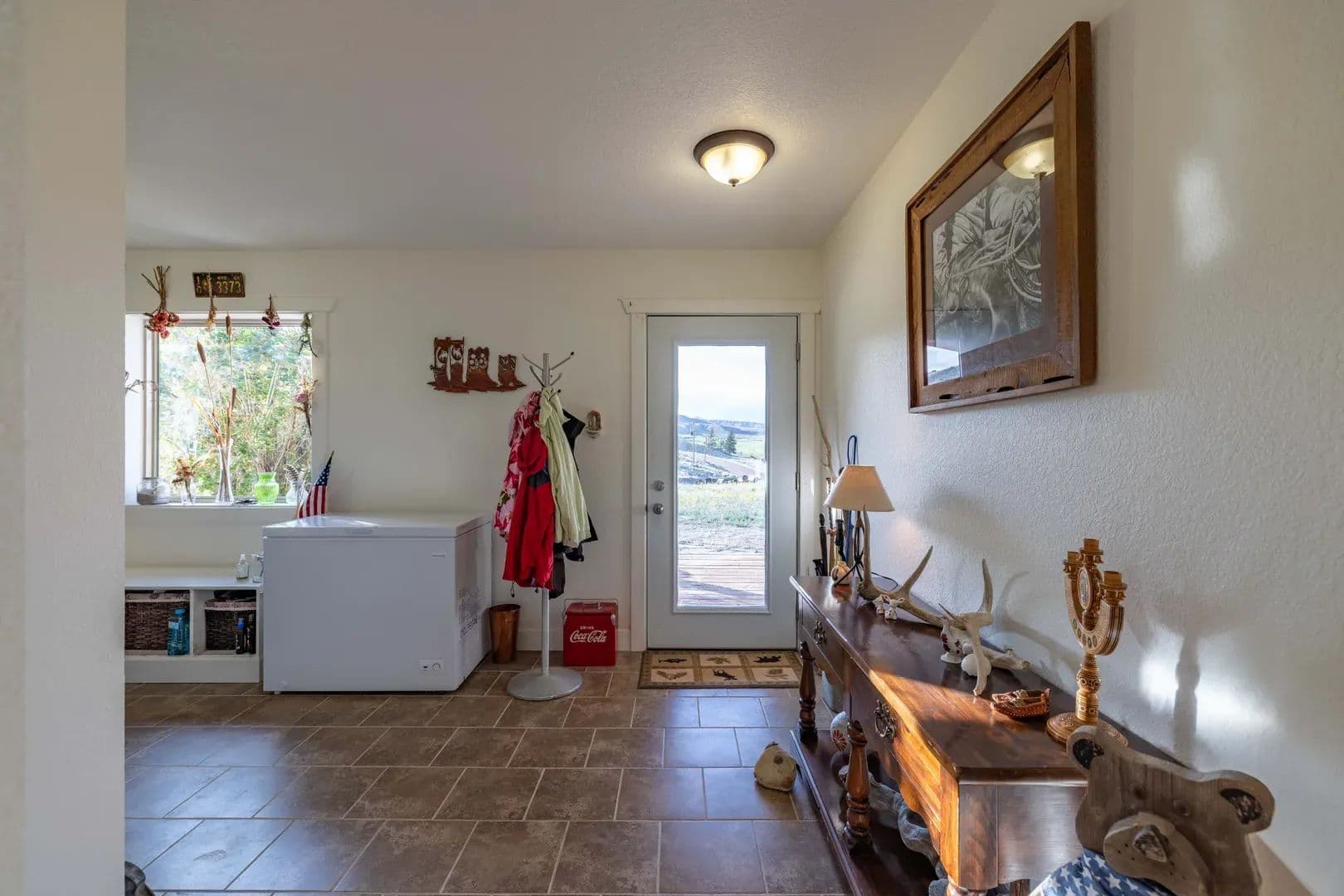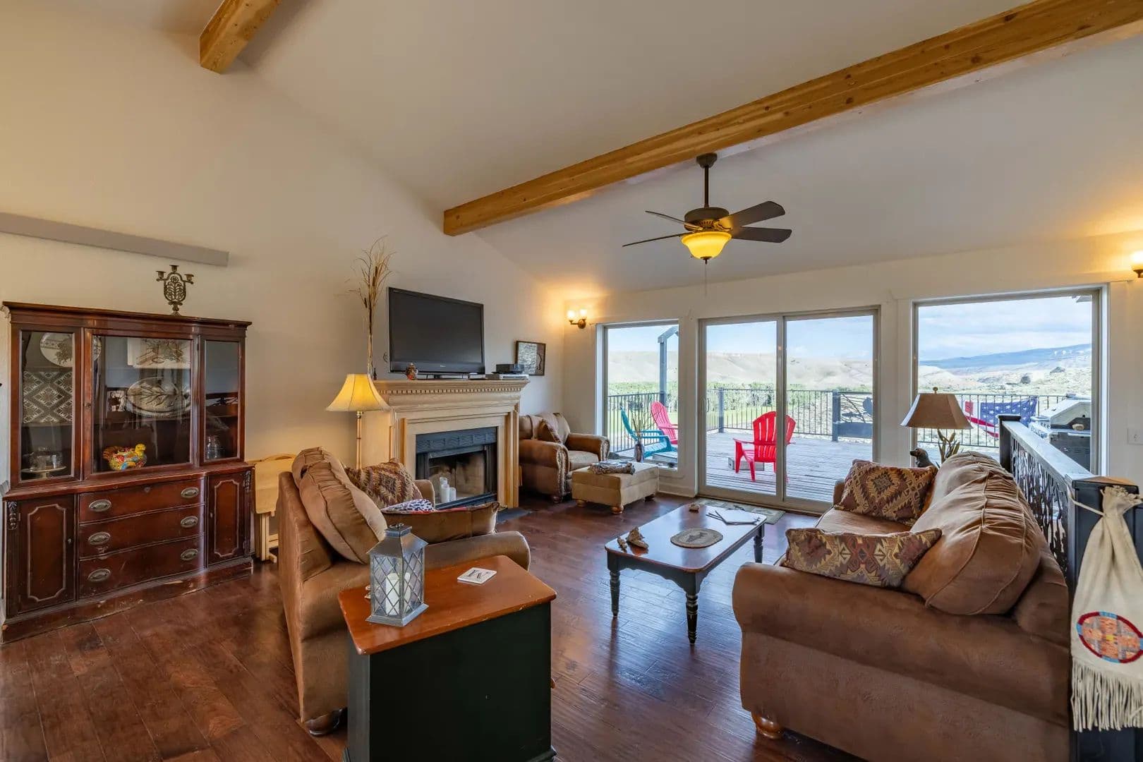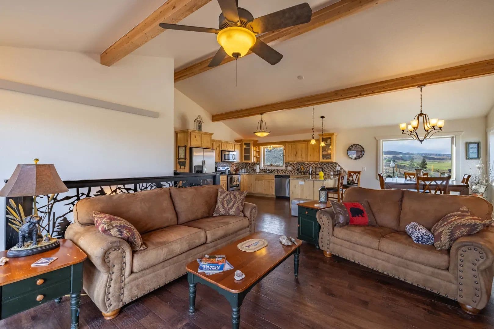 Improvements Inside the home features a spacious master ensuite with a walk-in closet, a dedicated workout area, and custom knotty pine kitchen cabinets. The open-concept layout is perfect for entertaining or relaxing while soaking in the incredible surroundings. Boasting 3,664 sq. ft. of well-designed living space, this home offers panoramic views of the East Fork River and the majestic Absaroka Mountains through expansive windows that fill the home with natural light.
