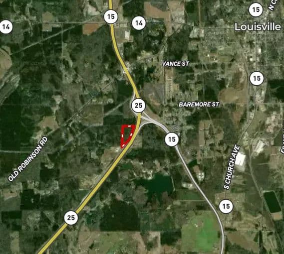 LOCATED IN WINSTON COUNTY, MISSISSIPPI, THIS EXCEPTIONAL 15.92± SURVEYED-ACRE PROPERTY OFFERS ACCESSIBILITY, VISIBILITY, AND VERSATILITY. Positioned just 2.8± miles southwest of downtown Louisville with an impressive 1,613’± of road frontage on Highway 25 South, this rare tract boasts a paved turnout, and utilities are available at the road—making it a prime candidate for residential, commercial, or recreational use.