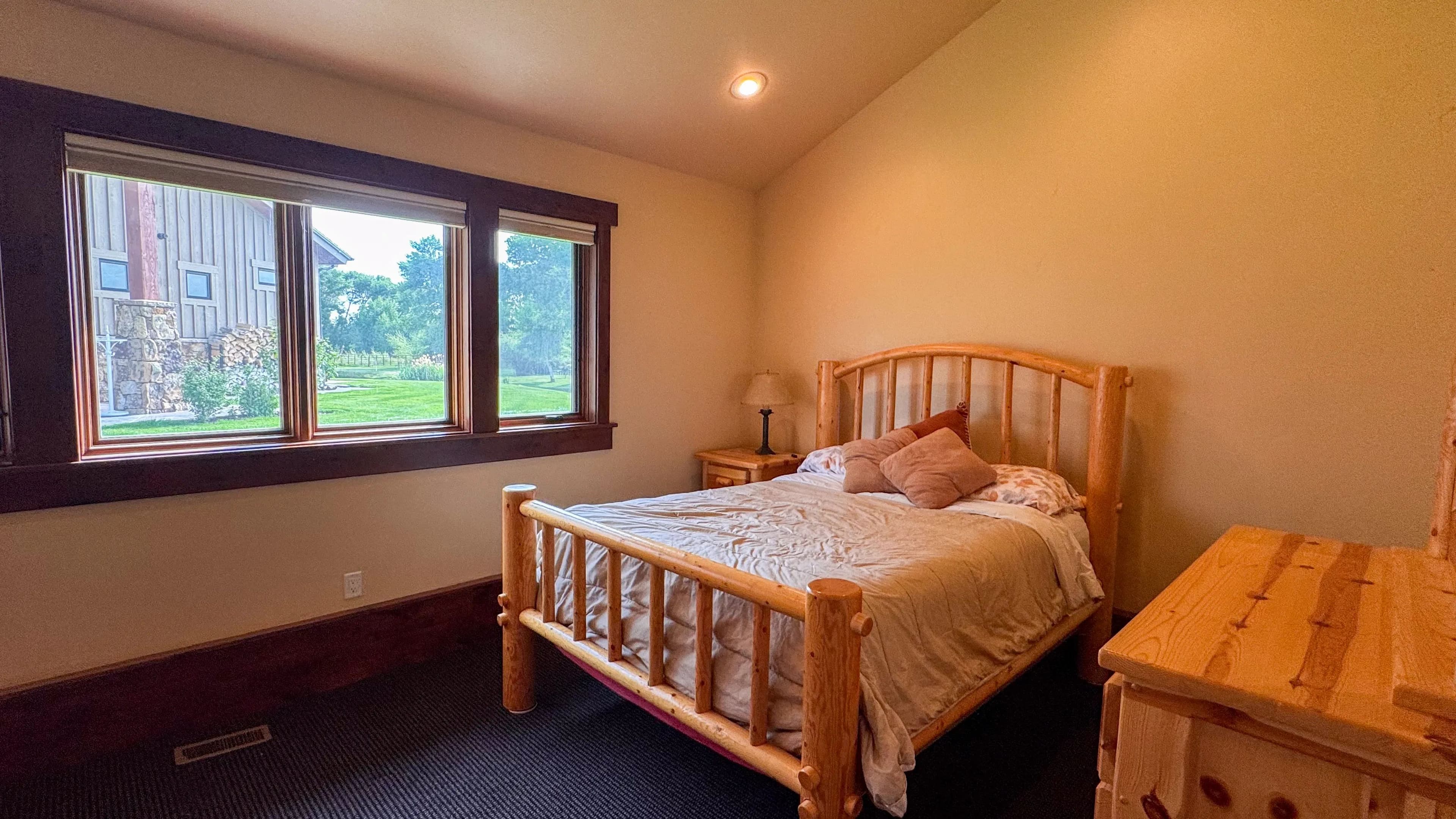 The centerpiece of the Blacks Fork River Ranch is a spectacular 6,260 square foot custom designed home overlooking an idyllic river-fed pond with depths reaching twenty feet at its deepest point. This impressive 4 bed, 4.5 bath masterpiece features 16-foot vaulted ceilings with open timbered beams, an open floor plan that effortlessly blends the great room, formal dining area, well-appointed kitchen and breakfast area. The masterful craftsmanship in this home is on display throughout with double thick granite counter tops, beautiful hardwood cabinets, oversized hardwood doors, travertine tile and skip-sawn hickory hardwood flooring. A full wet bar with wine fridge is directly across from the massive masonry fireplace for convenience when entertaining guests as they sit around enjoying a fire or if they move out to the covered hot tub or patio to take in a breathtaking sunset or look at the star covered skies.