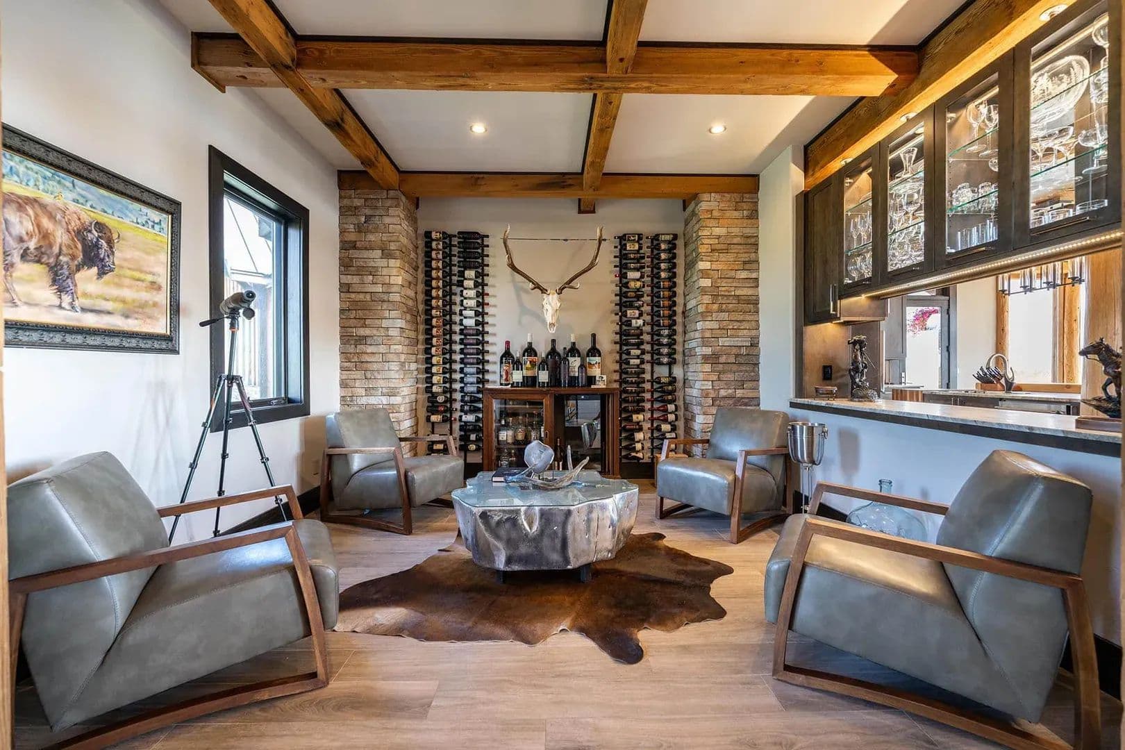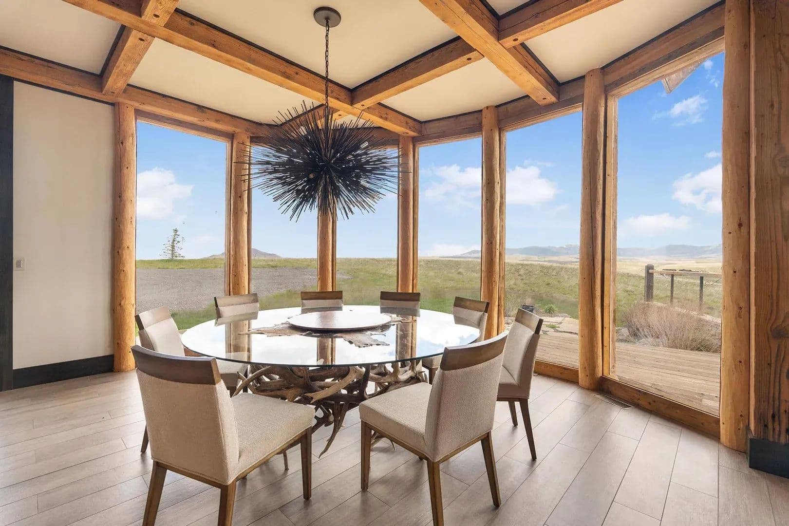 Set within the scenic Ranches at Belt Creek, this custom-built home embodies luxury living in the heart of Montana. Blending distinctive architectural style with a stunning natural setting, the property offers more than just a residence—it delivers an exceptional lifestyle defined by exclusive amenities and breathtaking surroundings. Perched on a bluff within a private 800± acre community, homeowners enjoy privileged access to a range of high-end features, including a private clubhouse with dining, guest cabins, concierge services, equestrian facilities, and a secluded stretch of Belt Creek. The home is a beautiful fusion of rustic Montana charm and modern design. With five bedrooms and a spacious upper-level bonus area, it provides ample space for family and guests. Outdoor enthusiasts will find endless opportunities for adventure, from fly fishing and sporting clays to horseback riding, archery, ATV excursions, and snowmobiling—an ideal retreat for lovers of the great outdoors. Owners and guests also benefit from exclusive access to the nearby 7,000± acre Bearcat Ranch, which offers guided fly fishing and hunting excursions, plus entry into the adjacent Sluice Box State Park for additional outdoor recreation. Beyond the tranquility of the ranch, the home’s location offers convenience without compromise. Just 40± minutes from Great Falls, residents enjoy access to amenities and an international airport. For winter sports, Showdown Ski Area lies less than an hour away, nestled in the Lewis & Clark National Forest. This exceptional property invites those with a taste for adventure and an appreciation for nature to experience the pinnacle of Montana living in a truly one-of-a-kind setting.