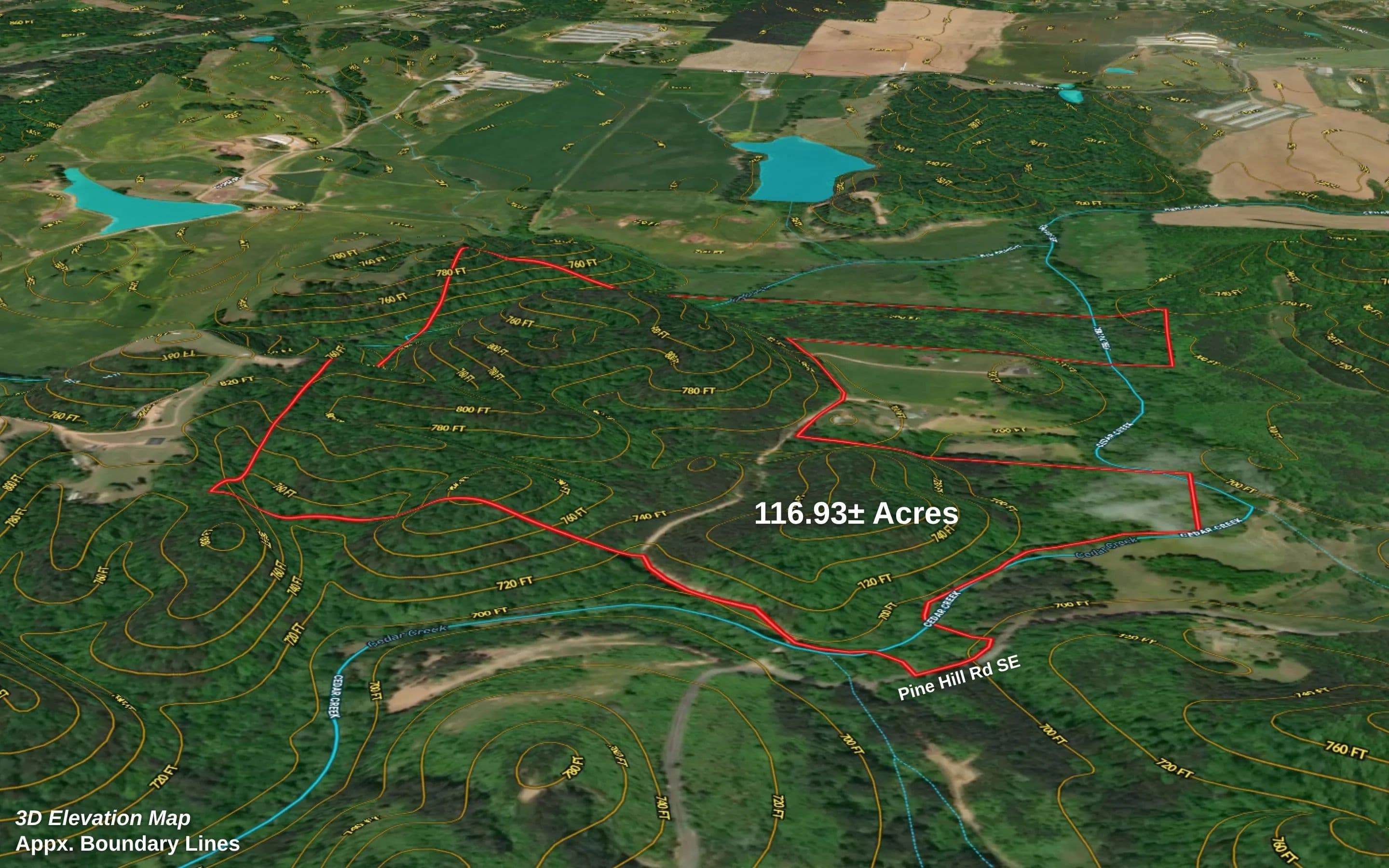 116.93 +/- ACRES of beautiful, wooded land in middle Georgia! Rare opportunity to own a large tract in a charming location, conveniently situated between Atlanta and Chattanooga. Surrounded by attractive farmsteads and countryside cabins, this property features approximately 275 feet of ROAD FRONTAGE on Pine Hill Rd SE. Adorned with mature woodlands, level to rolling topography, and frontage along Cedar CREEK and Big Branch Creek.