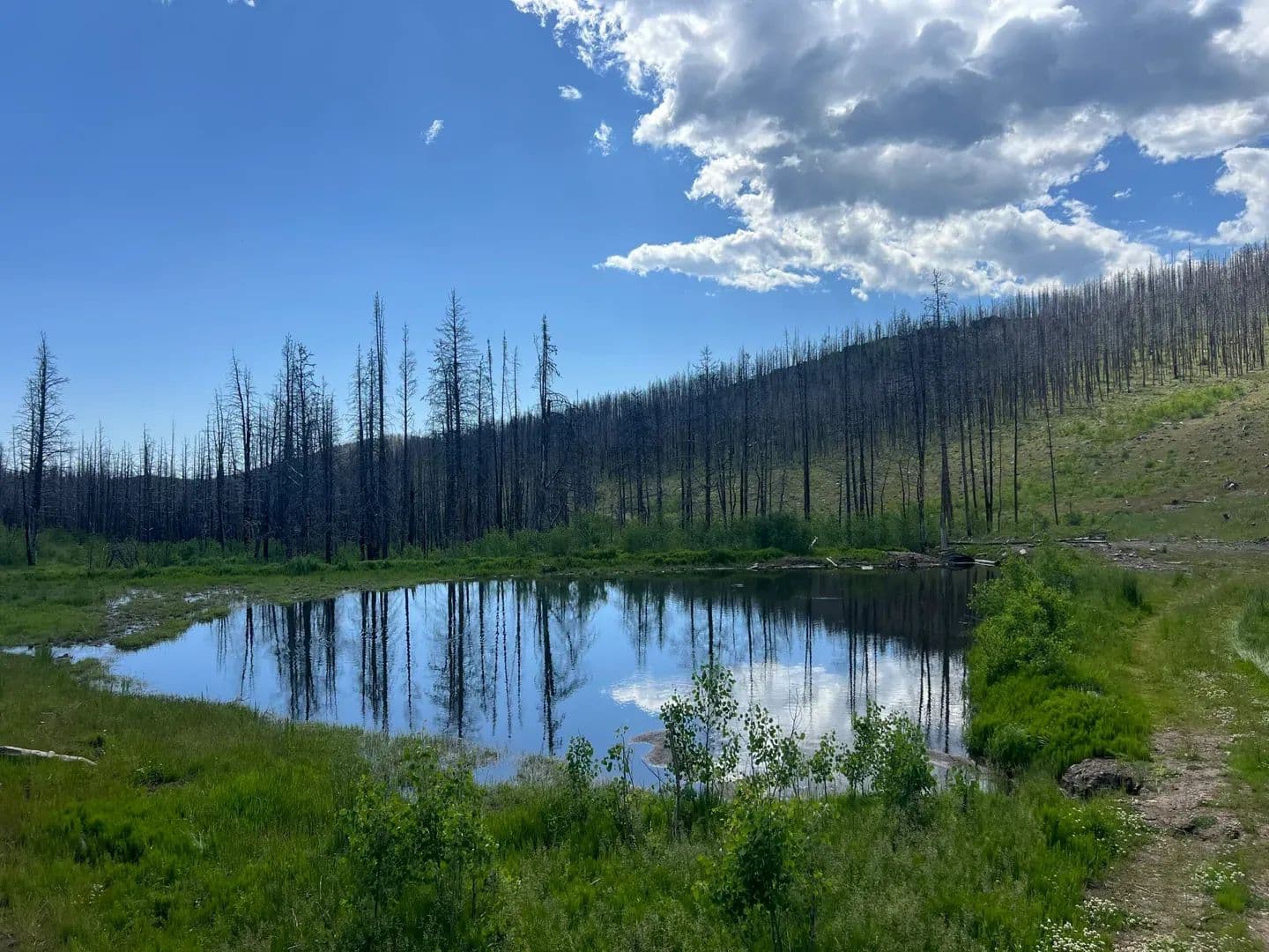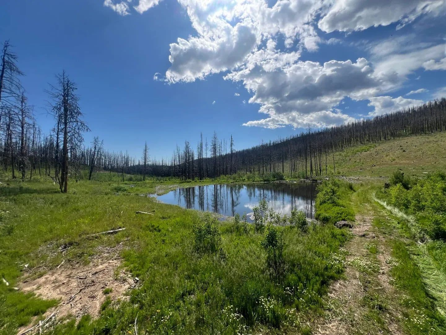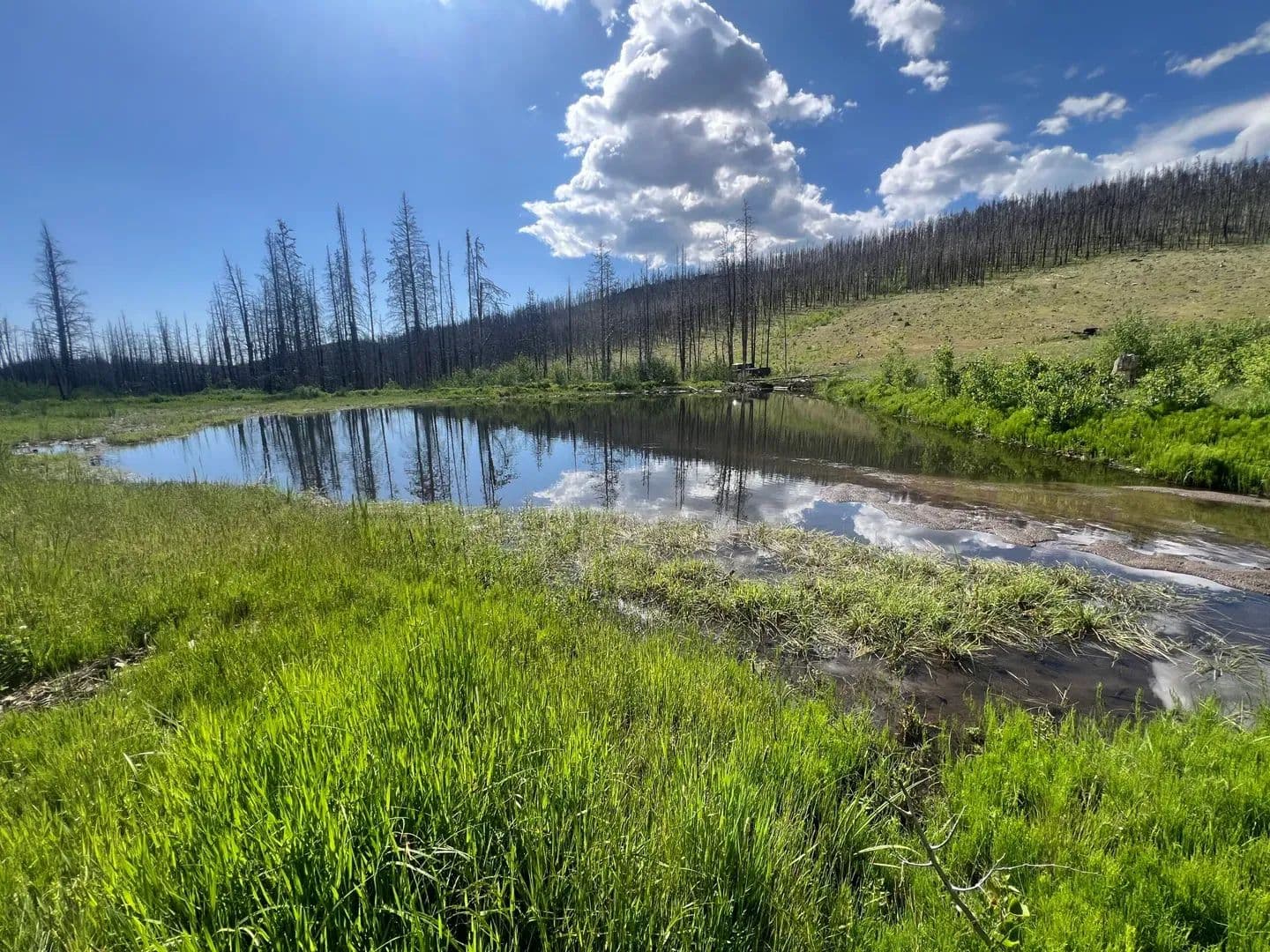 Elk Creek 40 sits in Bellvue, CO, bordering Roosevelt National Forest on three sides. With 40± acres, a creek, and a large pond, it’s a true wildlife haven just 1.5 hours from Fort Collins. Whether you're looking for hunting, hiking, camping, or wanting to create the perfect cabin getaway, this unique spot in GMU 20 is the kind of place you’ll never want to leave. Land This property offers a beautiful mix of varied topography and gently rolling meadows, making it perfect for all kinds of outdoor fun and recreation. It was impacted by the 2020 Cameron Peak Fire, but nature is making a strong comeback—each year brings more native grasses, young saplings, and vibrant signs of regrowth thanks to the added moisture. Efforts like selective logging and mulching have helped the land heal, and with time and continued care, it’s well on its way to becoming the incredible legacy it’s meant to be. As you pass through several locked gates and make your way onto the property, you’re welcomed by the centerpiece main pond, the flowing waters of Elk Creek, and several smaller pothole ponds scattered across the landscape. It’s the kind of place that feels peaceful and full of potential.