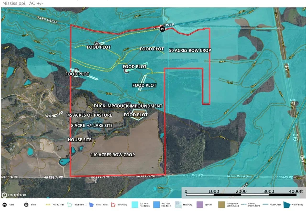 A significant portion of the northern acreage lies within a FEMA-designated flood zone—ideal for duck habitat, conservation projects, and waterfowl management. The upland portions remain well-suited for homesites, lodges, or future development.