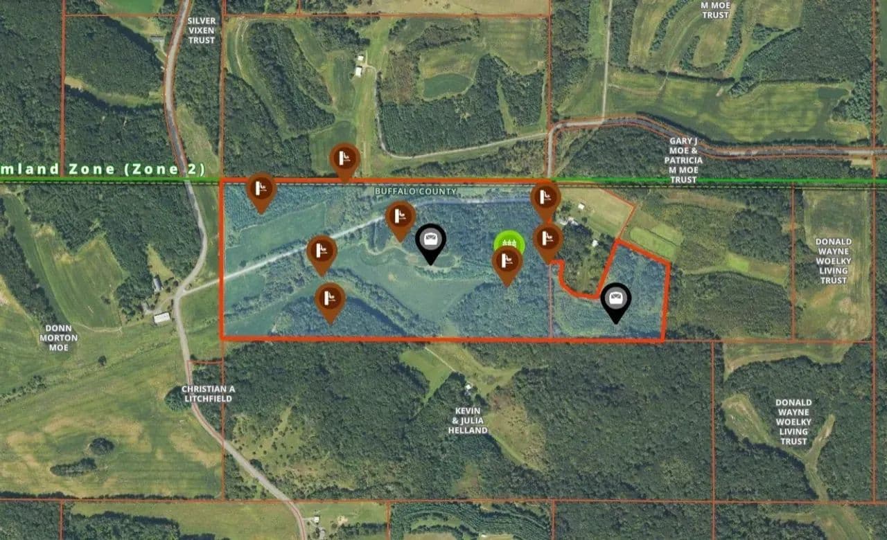 Check out this beautiful 40-acre hunting haven tucked into the heart of Buffalo County, Wisconsin. This exceptional opportunity is ideal for harvesting mature bucks, featuring a dynamic landscape with approximately 20 acres of productive crop fields, 16 acres of established hardwoods, and 4 acres of creek bottom and marsh. Several Millennium Ladder Stands have been strategically placed for optimal access and hunting success.