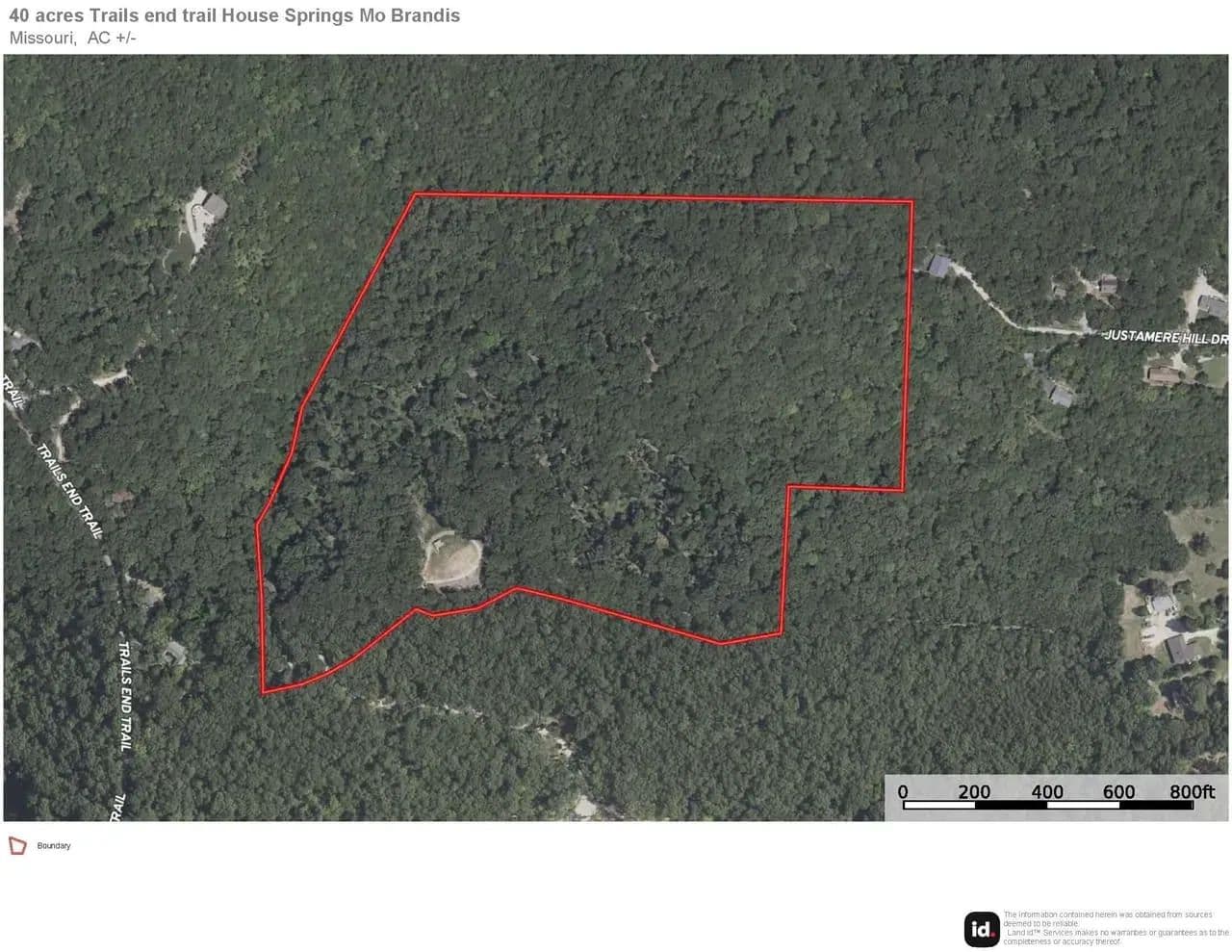 This 40-acre tract in House Springs, MO offers the perfect mix of seclusion and convenience. Nestled at the end of a private trail, the property boasts breathtaking views of the bottomland below and is just minutes from Highway 30—making for a quick and easy commute to St. Louis. A true outdoorsman’s paradise, the land is loaded with whitetail deer and wild turkeys, and is surrounded by larger tracts and landowners, keeping traffic minimal and wildlife plentiful. Whether you're looking to build your dream home, create a private hunting retreat, or simply enjoy a peaceful weekend getaway, this property checks all the boxes. It features mature, marketable timber, a small scenic clearing ideal for a cabin or campsite, and even includes a shipping container with an elevated observation deck—perfect for soaking in those classic Missouri sunsets or scouting your next hunt. Come take a look today! Property can be bought as a 2 tracts 22 or 18 acres. Proof of funds or bank letter to be provided to agent to come take a look today!