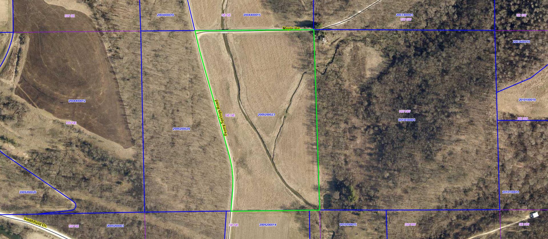 Scenic 21+ acre recreational property featuring the confluence of two streams right on site! This tract currently generates CRP income through 2026, with the option to renew. With pheasant numbers on the rise, this offers excellent habitat potential or perfect for adding food plots. Located less than a mile from the Yellow River, this is a prime spot for outdoor enthusiasts.
