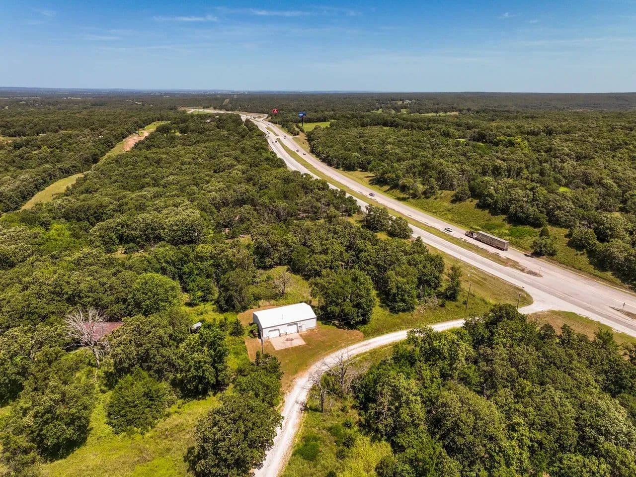 Hunting/Development! You choose the direction of this property. This is a large tract of land with Hwy 75 frontage. The property would easily be an excellent Hunting or wildlife getaway with Deer, Turkey, and most game native to this part of the State. It is only 30 minutes to Tulsa Ok, 15 minutes to Glenpool, and 10 minutes to Okmulgee. Even though it has excellent location many parts of the property provide solitude and feel like you are on a much larger reserve. There has also been much development along this corridor that make the location so versatile. There is a metal shop that also comes with the property.
