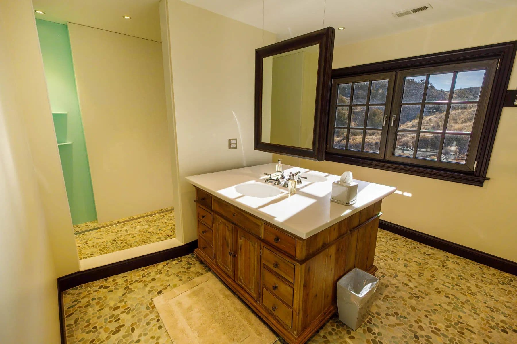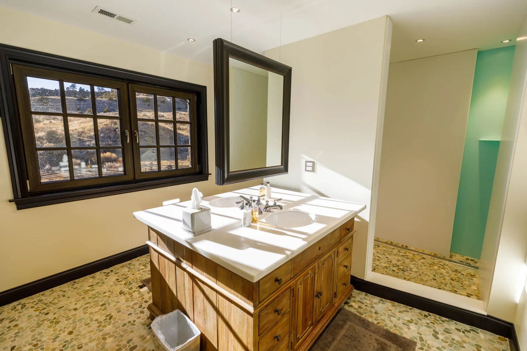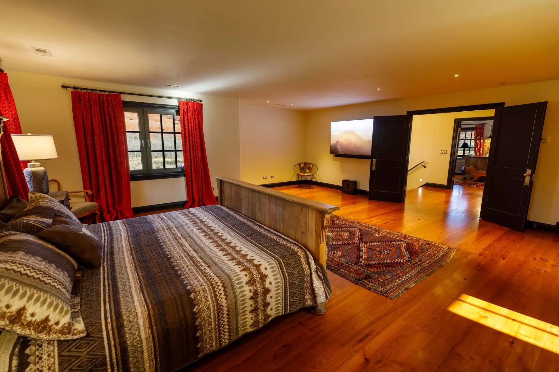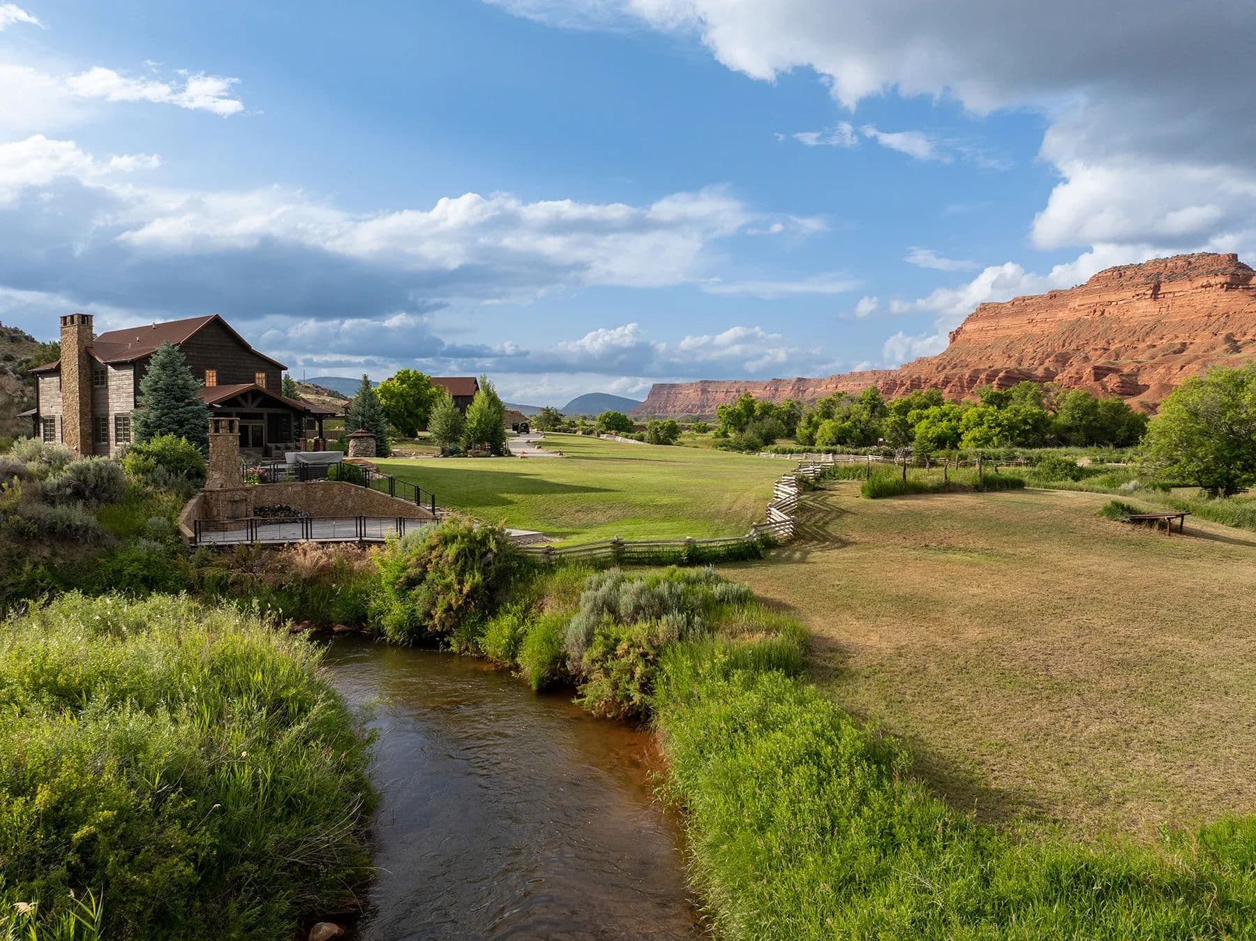 ~ 1,500+/- square foot manager home with a high ceiling, open layout, two bedrooms, two bathrooms, and a beautiful, covered porch overlooking Red Fork