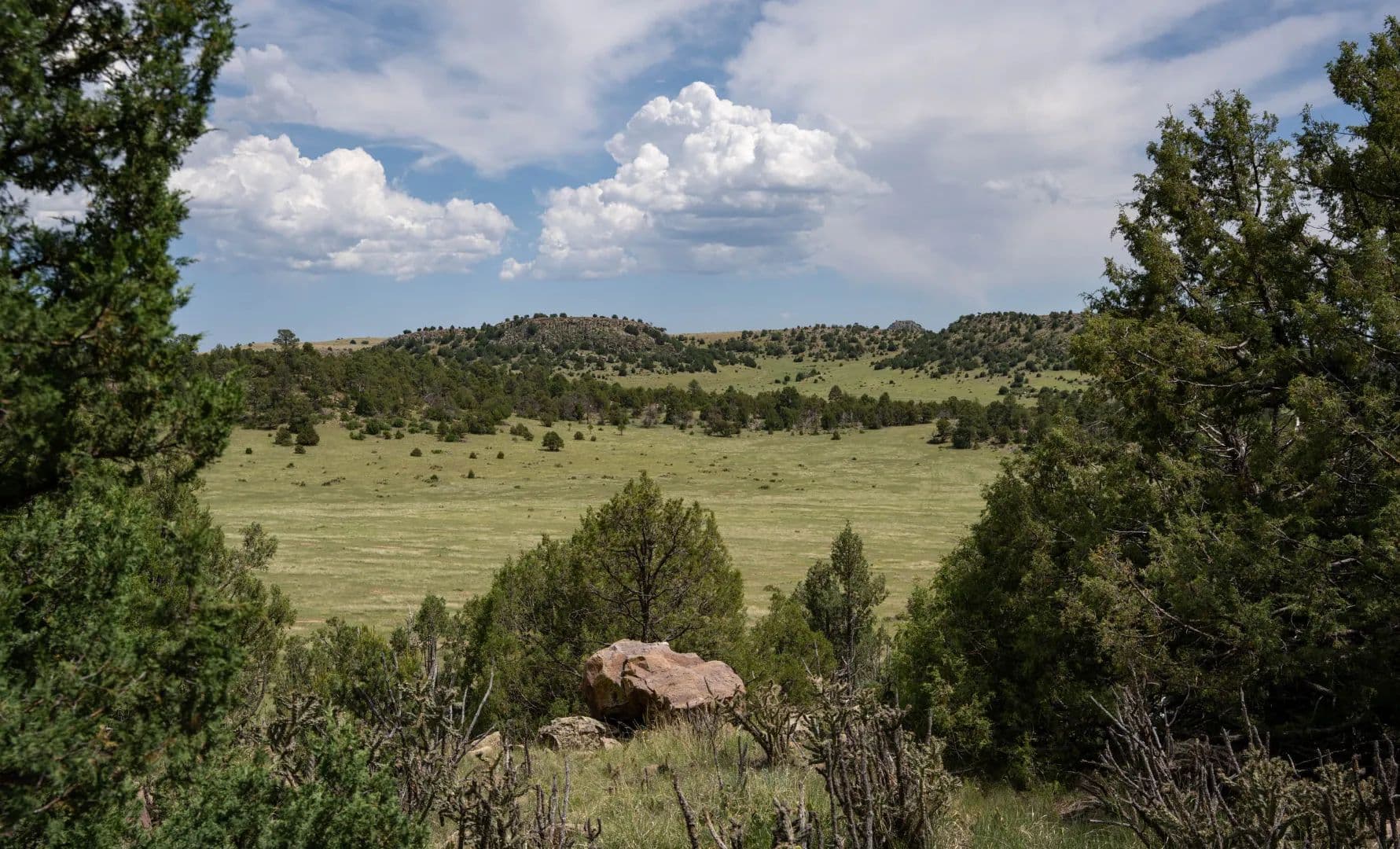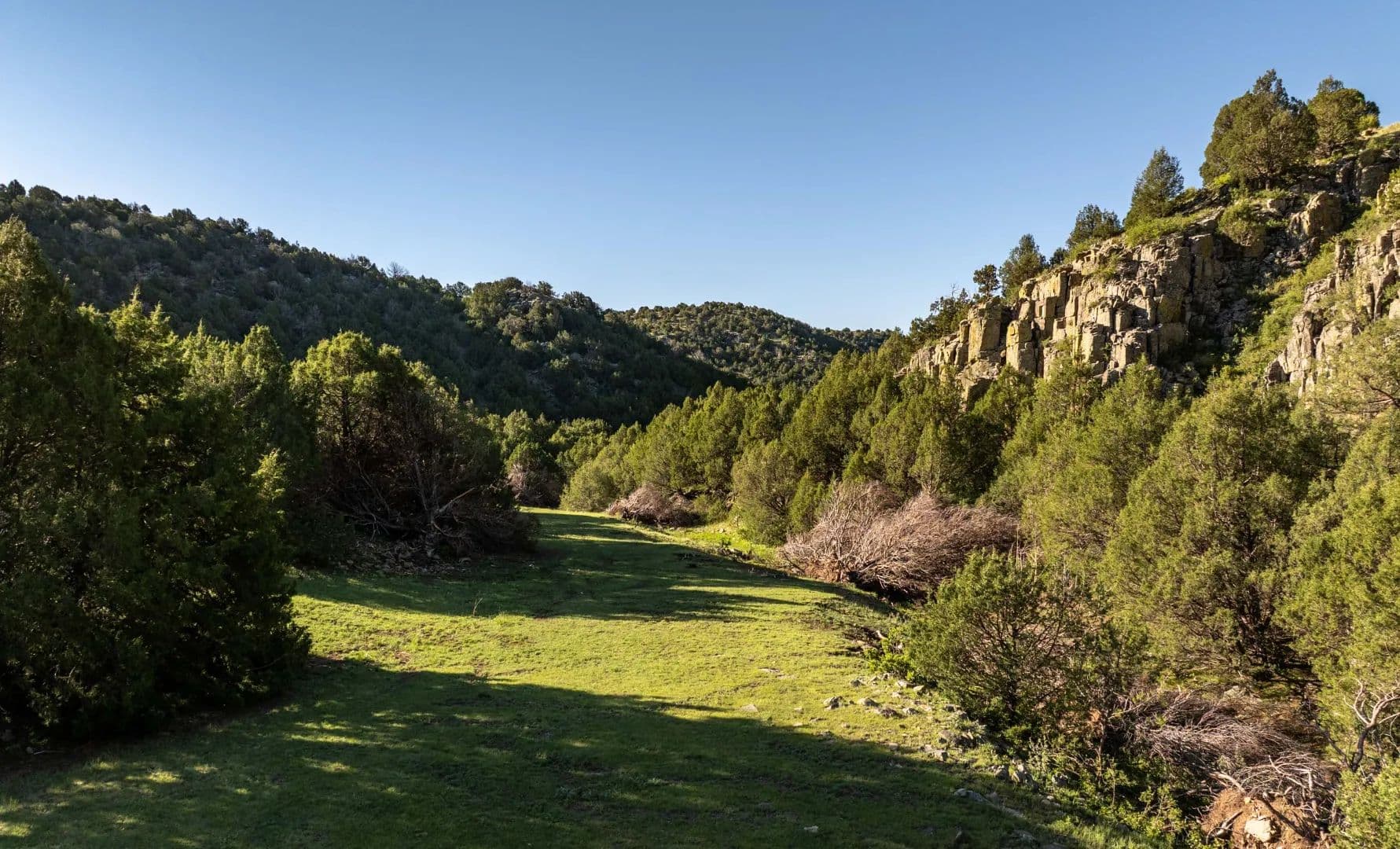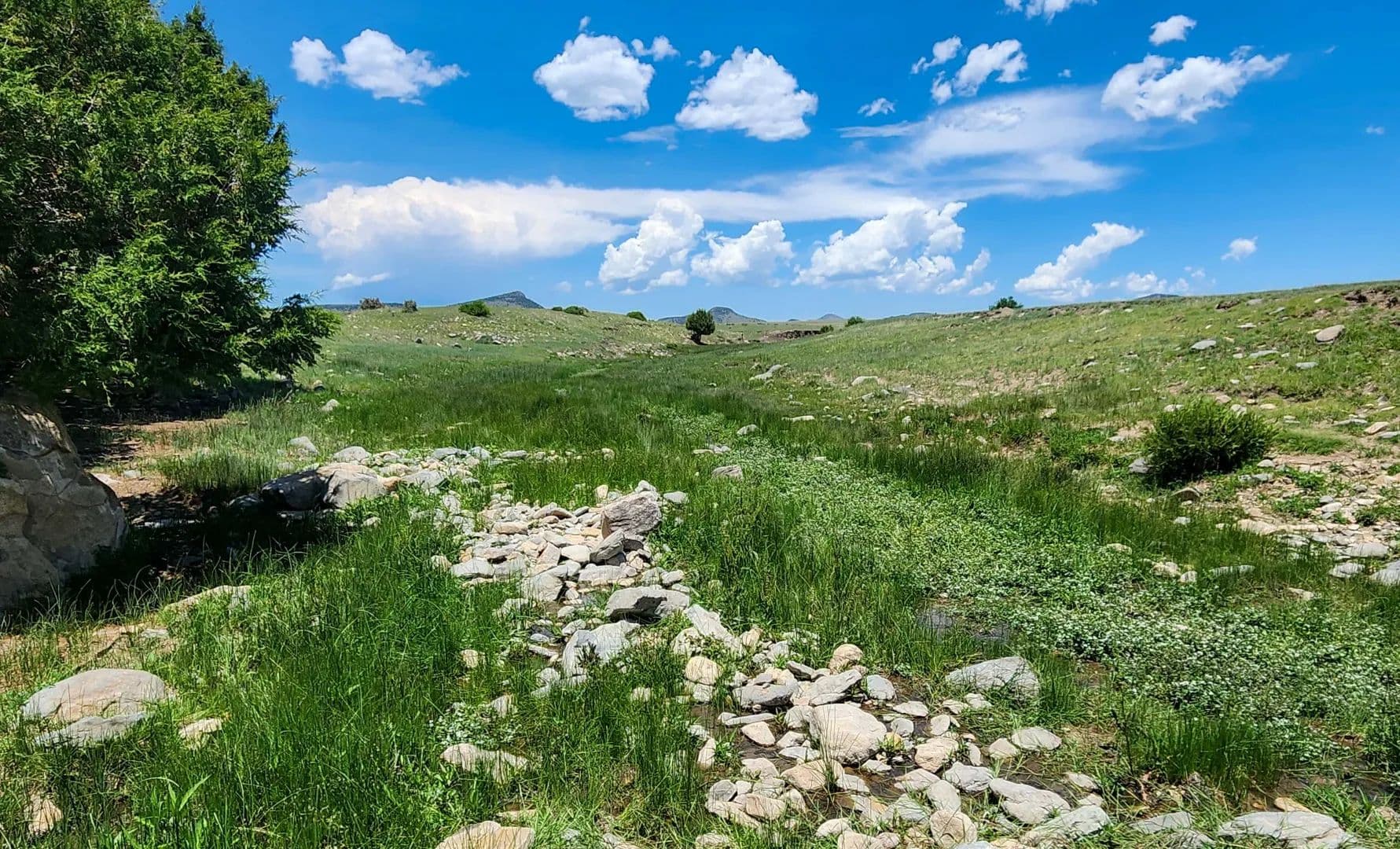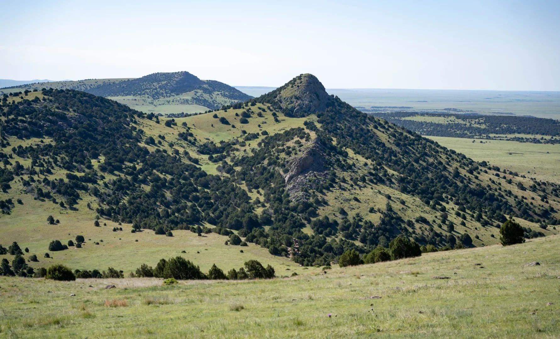 The ranch’s open grazing areas are covered with hardy, palatable native grasses such as grama, western wheatgrass, side oats, and bluestem varieties. In all, approximately 75% of the property is considered prime livestock grazing land, with the remaining 25% comprising scenic highlands, broad valleys, open meadows, and sweeping mesa tops.
