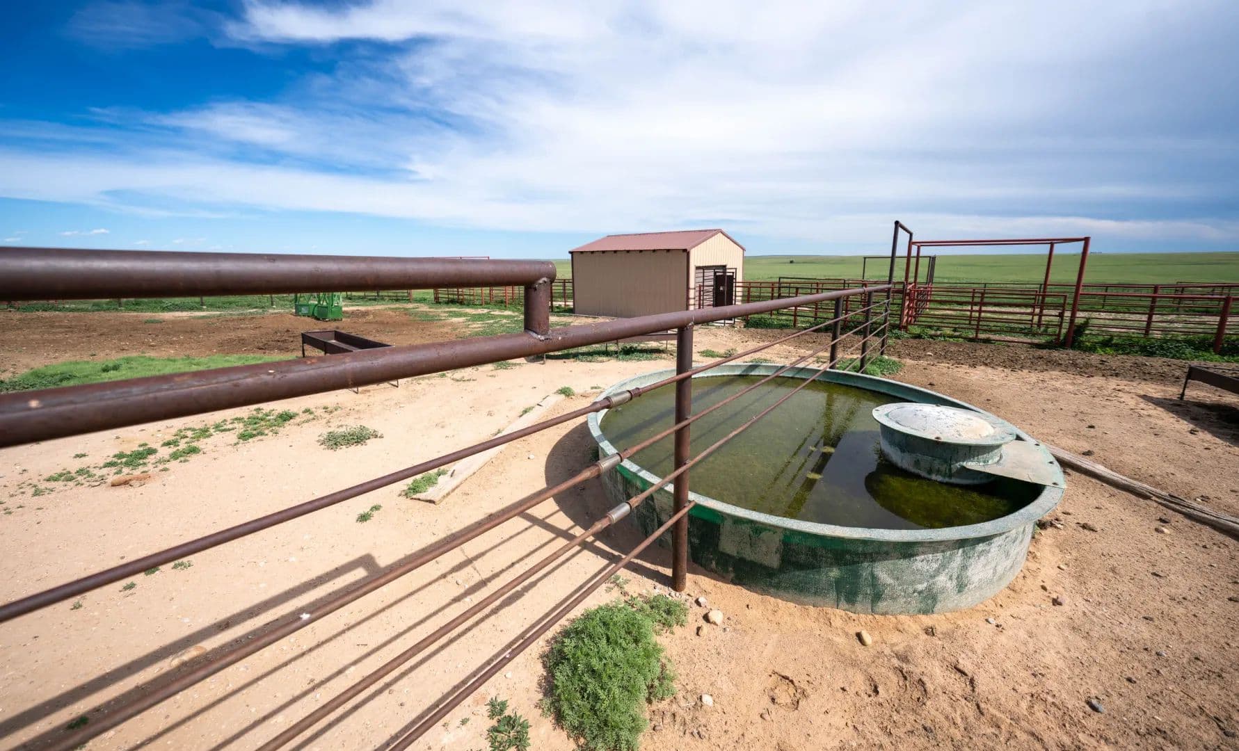 The north portion of the ranch is exceptionally well-watered, featuring seven natural springs and four pastures with live water—a rare and valuable combination. Supplementing the natural sources are six solar-powered wells and two windmills, ensuring reliable water distribution across this section. Working facilities include two sets of pipe pens, a 25,000-pound digital scale, a 36-ton cake bin, two shipping traps, a sturdy cinder block garage, and log barn.
