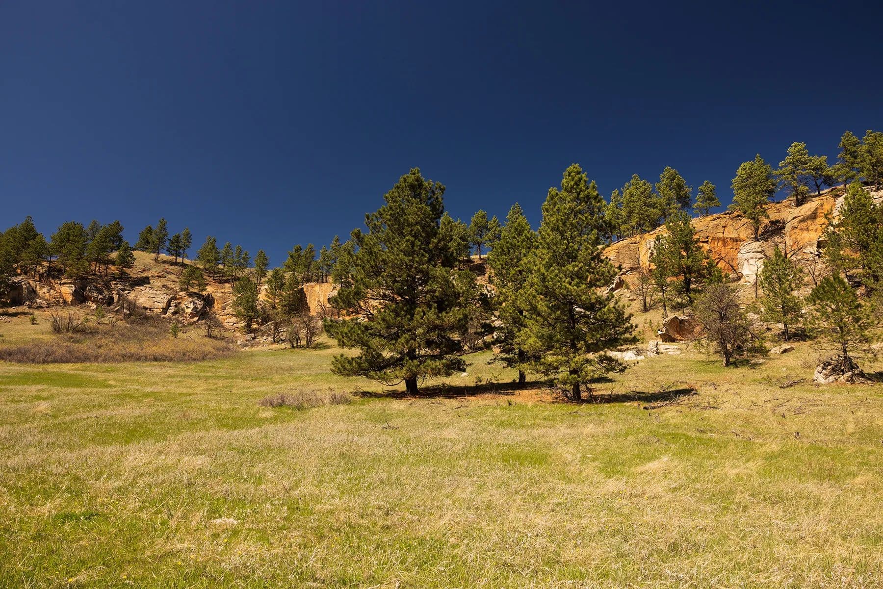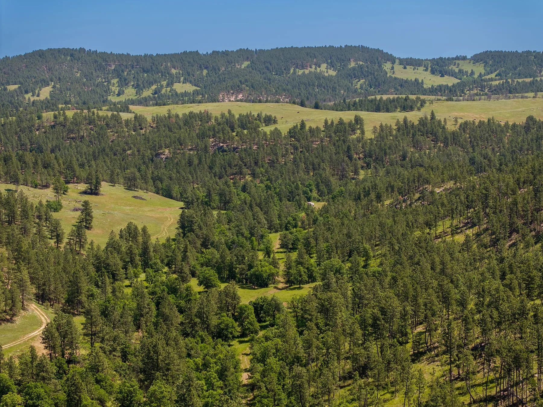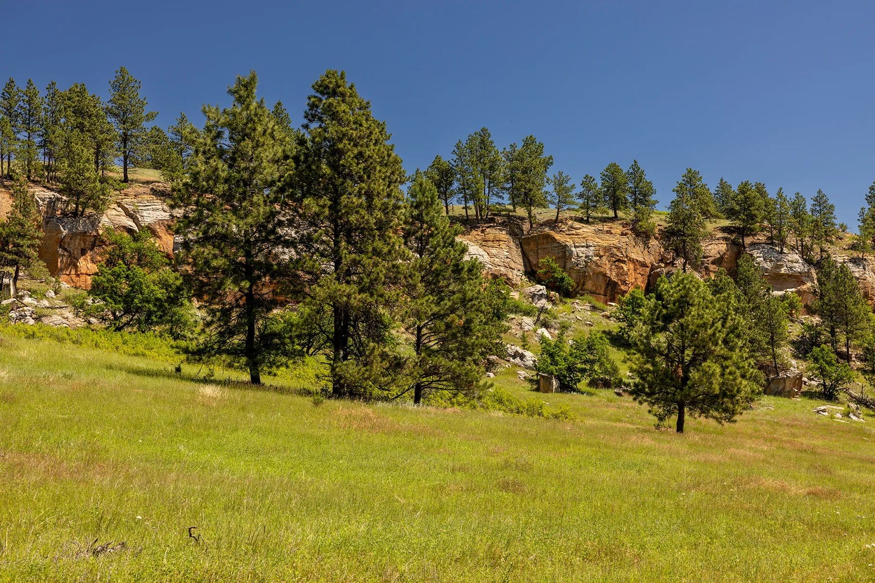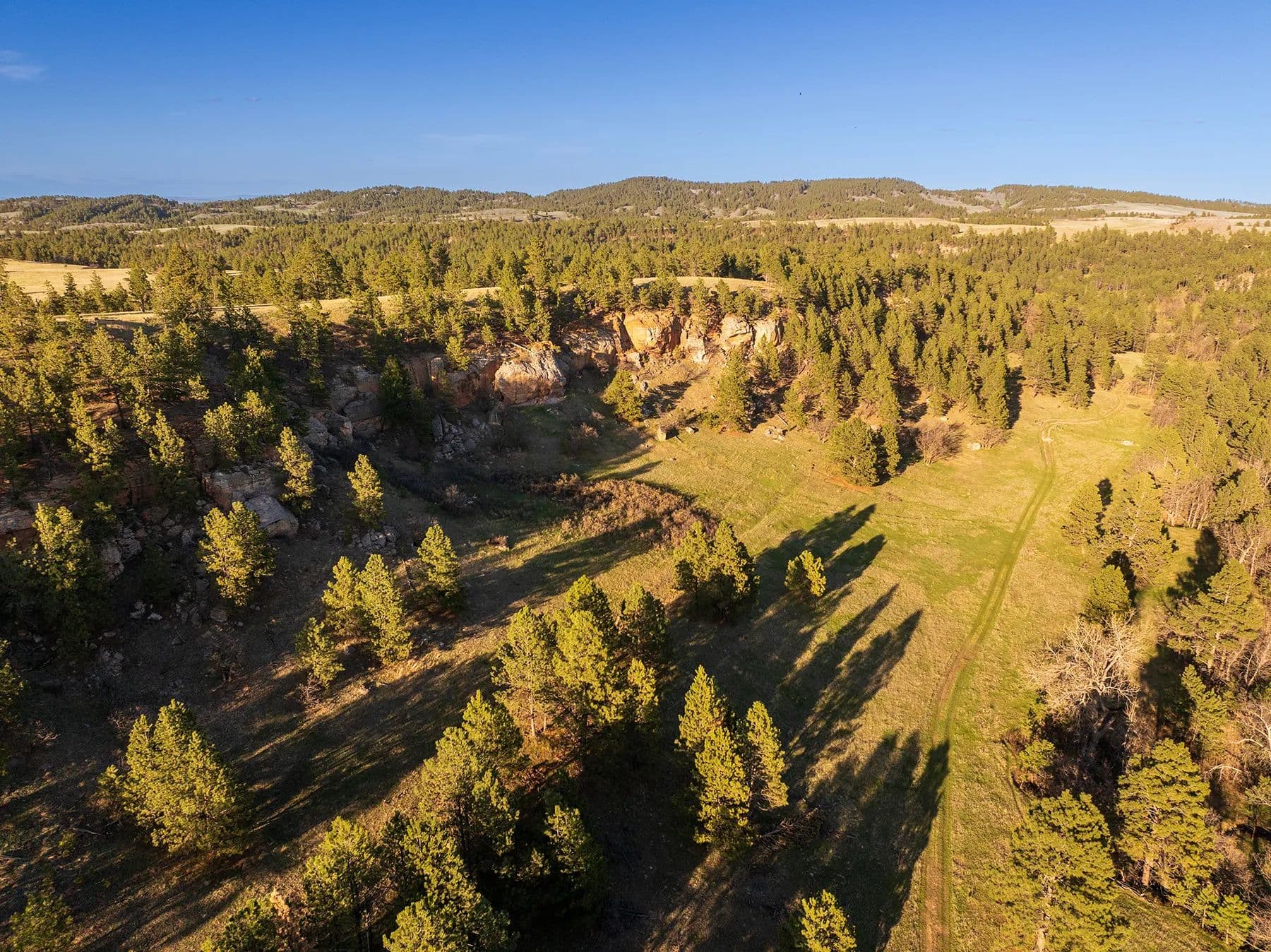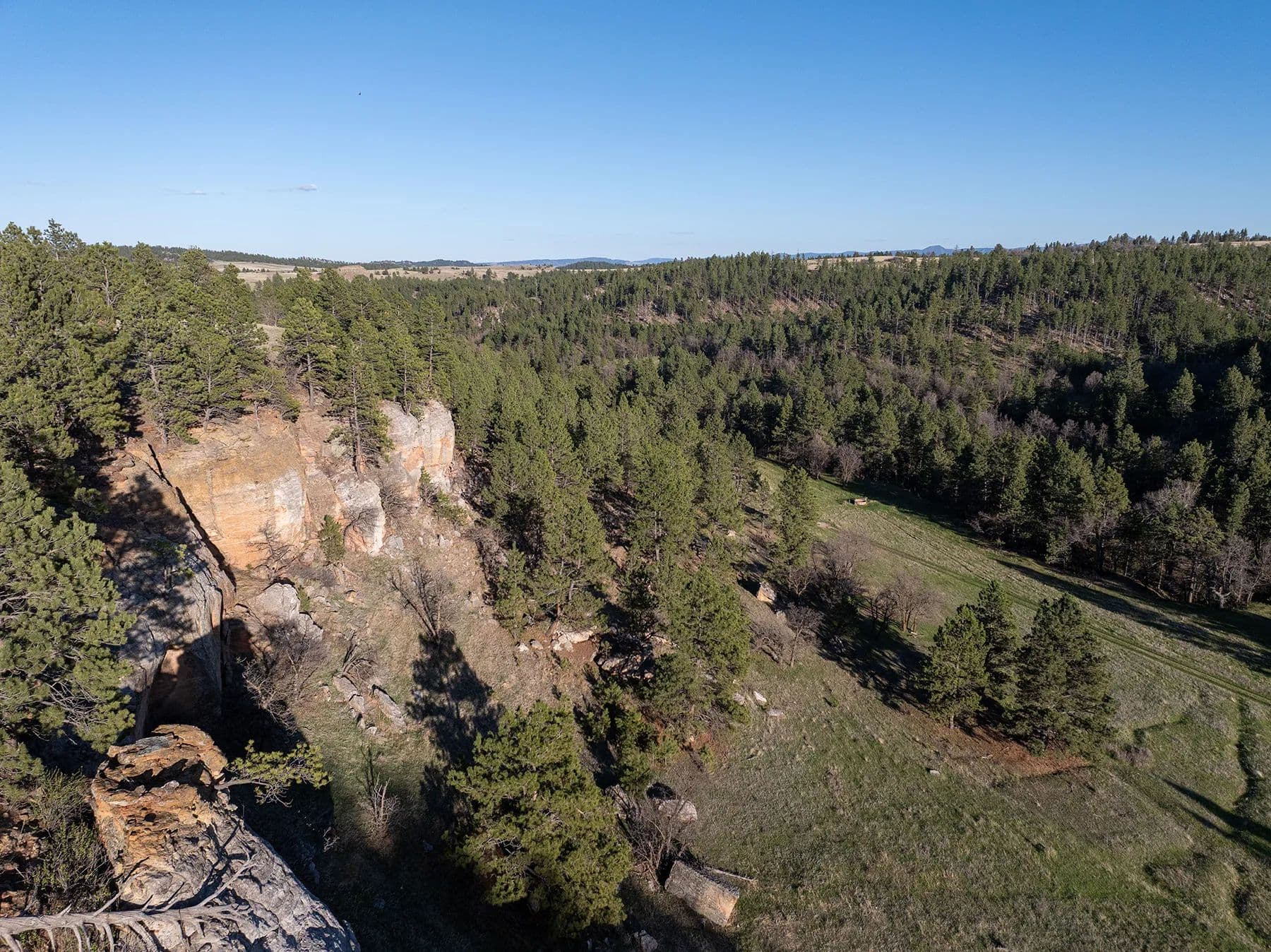 Tucked in the scenic Wyoming Black Hills, just 17 miles northwest of Spearfish and four miles northeast of Beulah, the Mullenger Ranch presents a rare opportunity to own a Black Hills property with significant recreational appeal. Encompassing approximately 960+/- deeded acres and surrounded by expansive neighboring holdings, the ranch offers remarkable privacy and seclusion. Its diverse landscape showcases rolling meadows, wooded draws, striking rimrock outcrops, and elevated plateaus—each contributing to sweeping views and exceptional wildlife habitat. The varied topography provides numerous ideal sites for a custom home or secluded mountain retreat. Deep, timber-lined canyons shaded by Ponderosa pines and oak trees conceal natural springs and ponds, while an artesian-fed pipeline delivers water to improved tanks for livestock and game alike. The ranch supports a rich wildlife population, including elk, mule deer, whitetail deer, turkey, bald and golden eagles, falcons, hawks, owls, bobcats, and mountain lions.